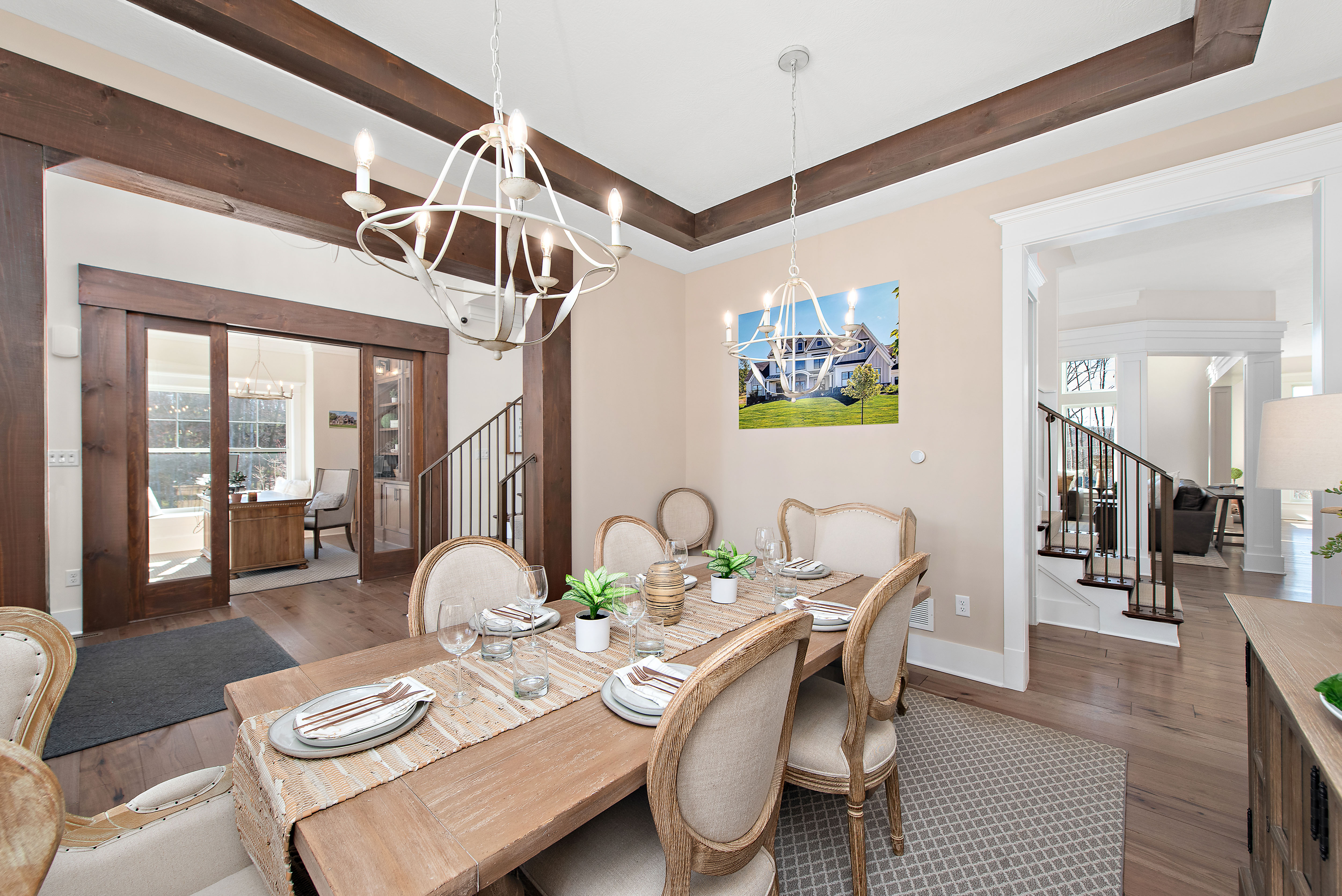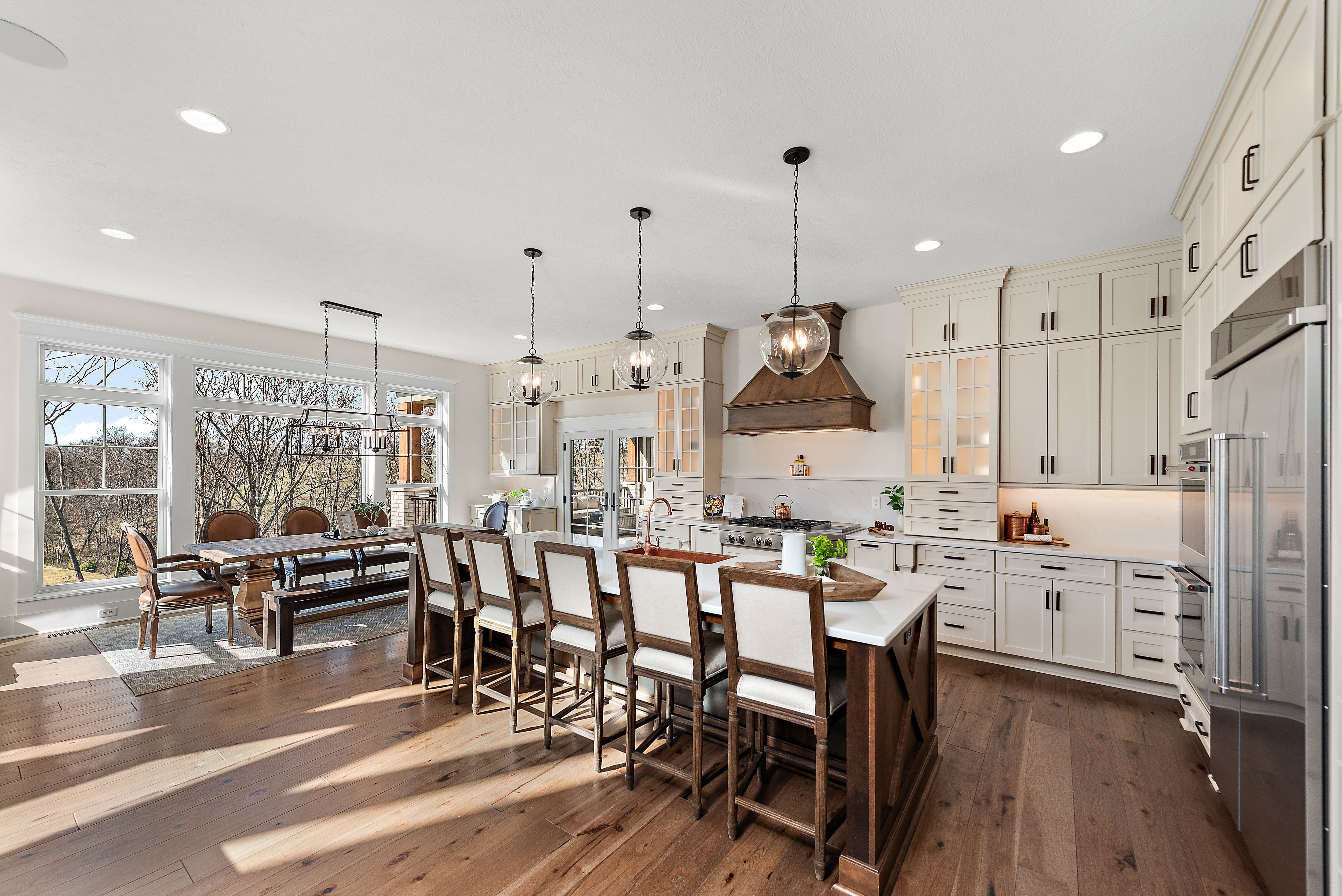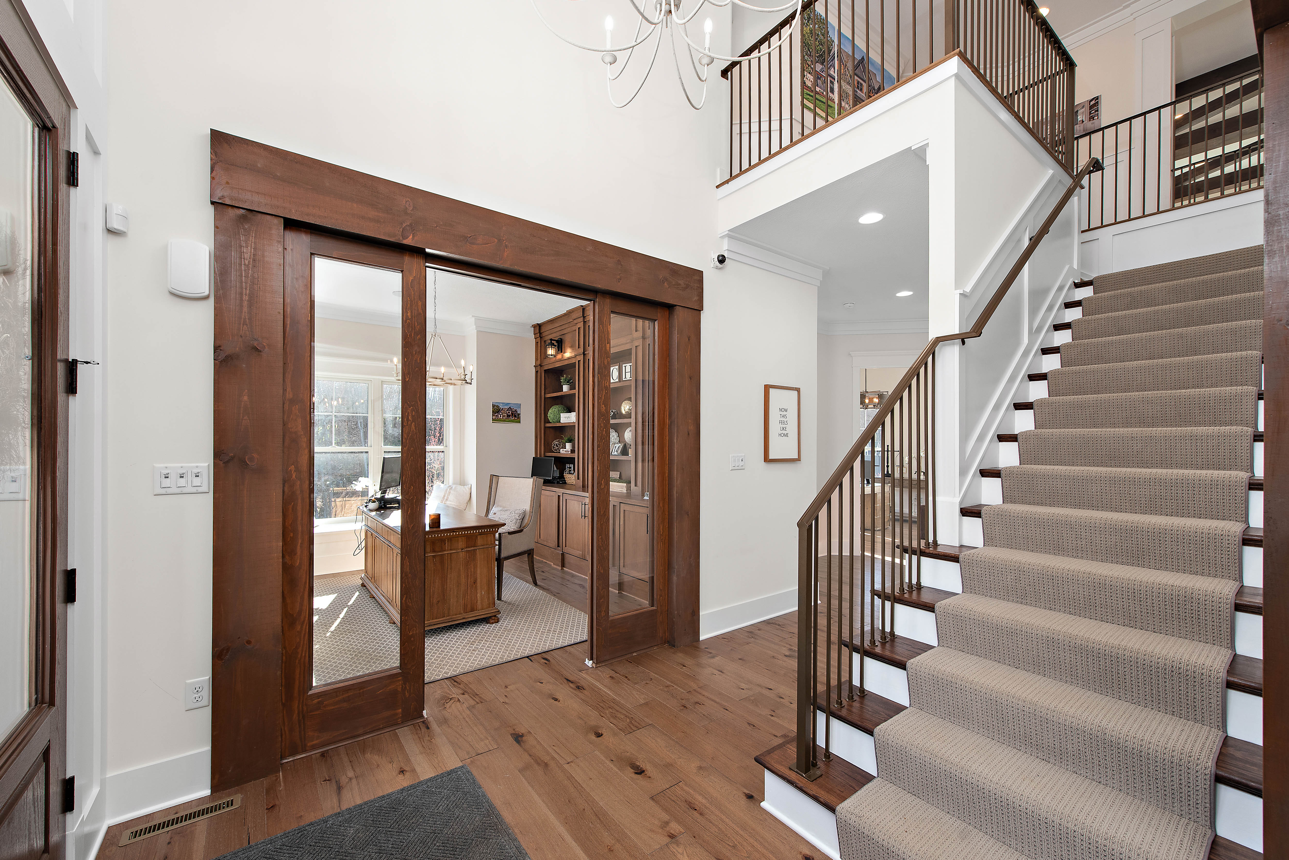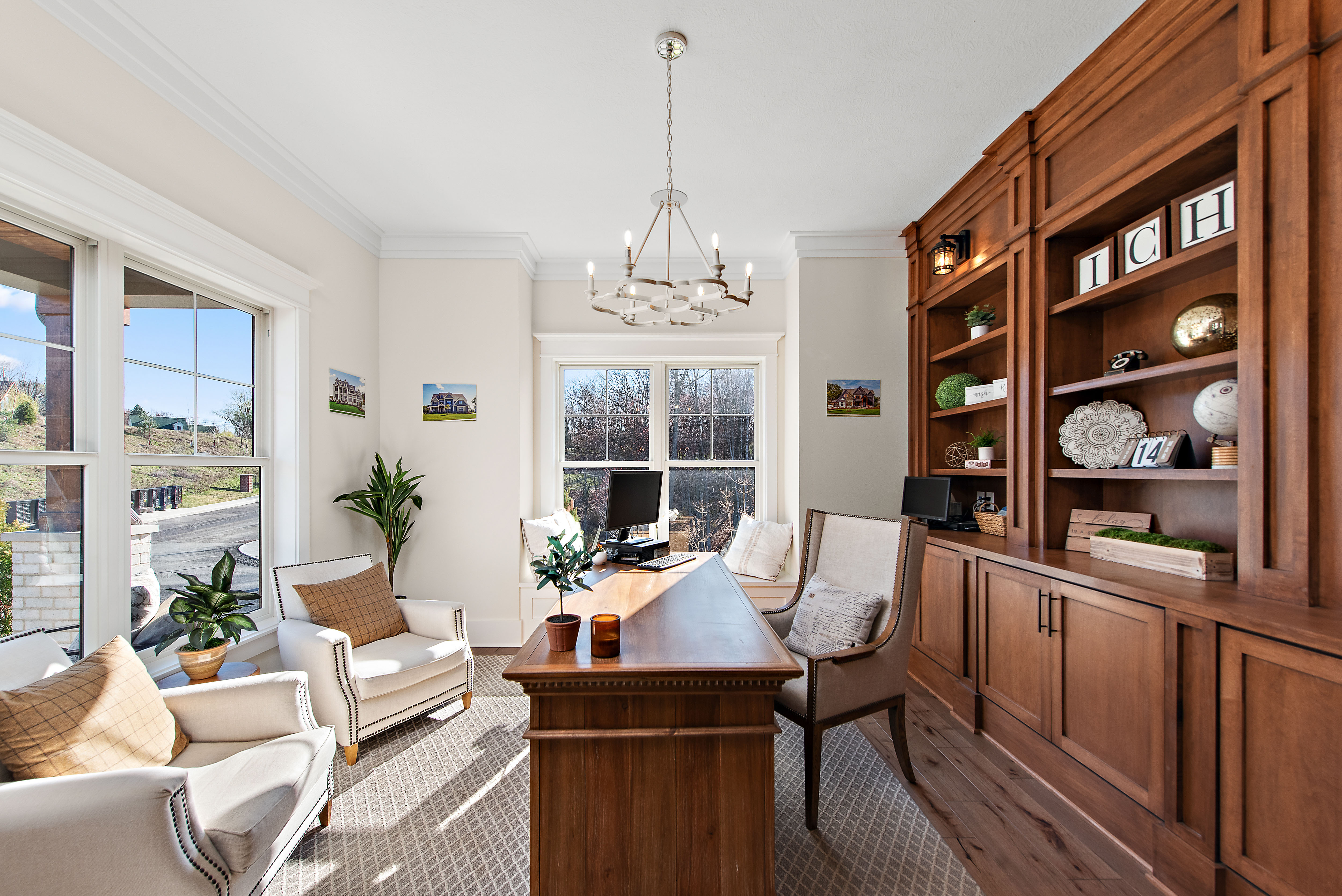 Originally selected as the community’s showcase model, Havenport reflects the highest expression of design and craftsmanship within the neighborhood. Thoughtfully appointed across four finished levels, this residence blends refined architectural detail with welcoming spaces designed for gathering and everyday living.The main level centers around a statement kitchen featuring Calacatta Miraggio Gold countertops and backsplash, a 48” KitchenAid range and refrigerator, custom hood, copper farmhouse sink, expansive island, butler’s pantry, beverage refrigeration, and layered designer lighting. Rich hickory flooring flows throughout, connecting the great room with its fireplace focal point, a private office with custom built-ins, flex space, and a sunroom overlooking the outdoor living area.Upstairs, the owner’s suite offers a private retreat complete with a sitting area, fireplace, wet bar, custom cabinetry, and a spa-inspired bath featuring a freestanding soaking tub, vessel sinks, rainfall shower, and curated tile selections. Additional bedrooms are generously sized and supported by well-appointed en suite and Jack & Jill baths.The third floor expands the living space with a full lounge, bar area, and additional bath; ideal for guests, recreation, or private retreat space.The finished lower level continues the home’s elevated design with a large gathering area, fireplace, custom bar with premium countertops, beverage refrigeration, dishwasher, and ample entertaining space, plus an additional full bath.Outdoor living is equally intentional. A covered porch with a wood-burning fireplace, outdoor kitchen with built-in grill and refrigeration, and thoughtfully selected exterior finishes create a seamless extension of the interior.As the original showcase residence, Havenport was curated with premium upgrades, architectural lighting, layered textures, and custom details throughout, representing a rare opportunity to own one of the most comprehensively appointed homes within the community.Located in Cranberry Township accessible to the local private and public schools, the growing amenities within Cranberry and Wexford, and with convenient access to major roadways, Pittsburgh International Airport, and downtown Pittsburgh.Havenport is where elevated design meets the way you truly live.