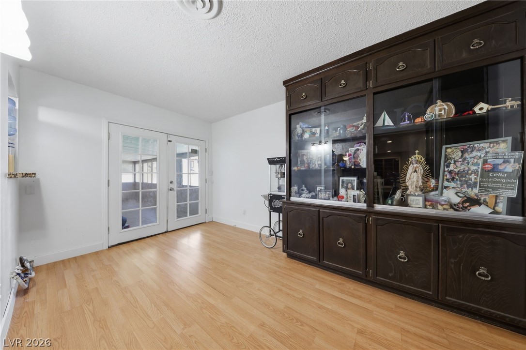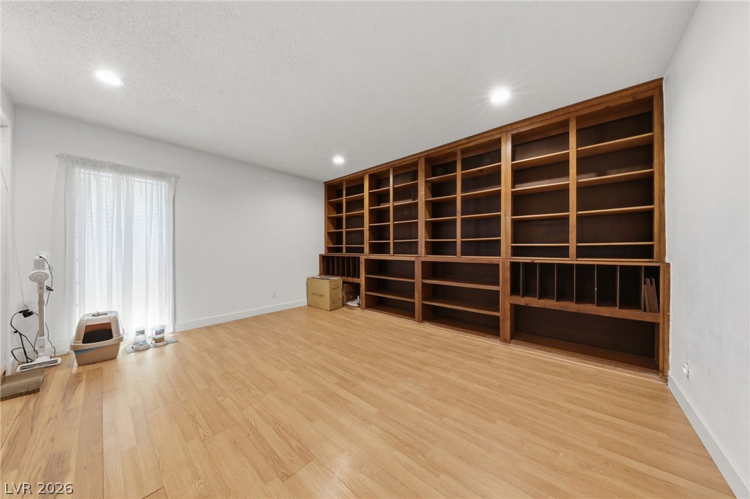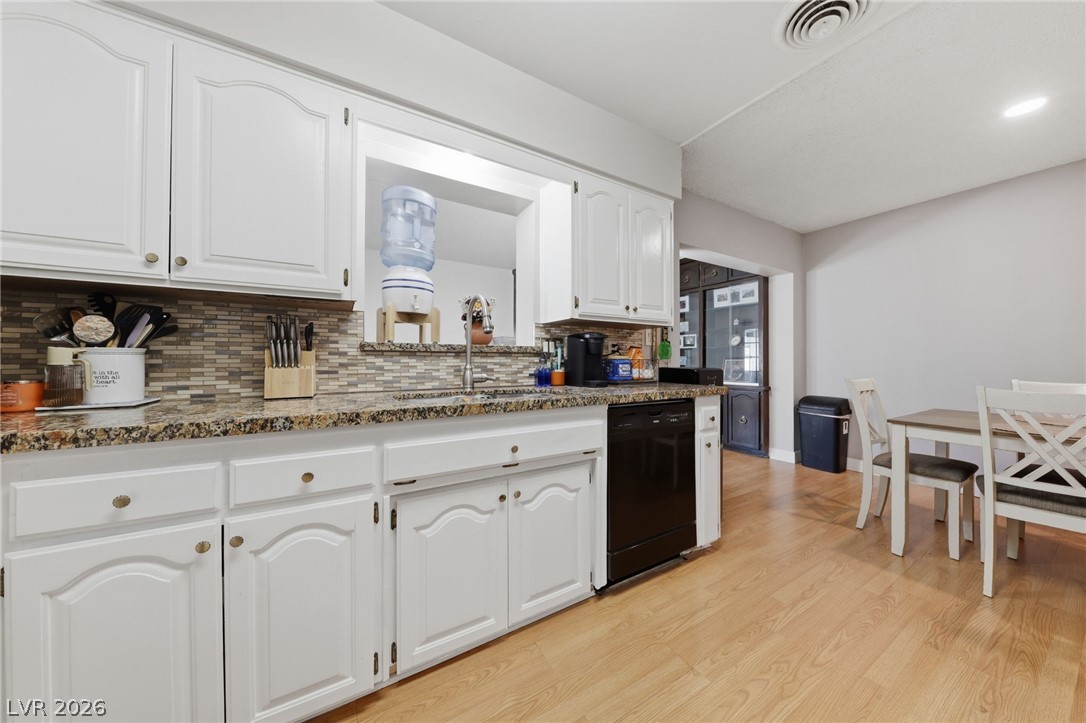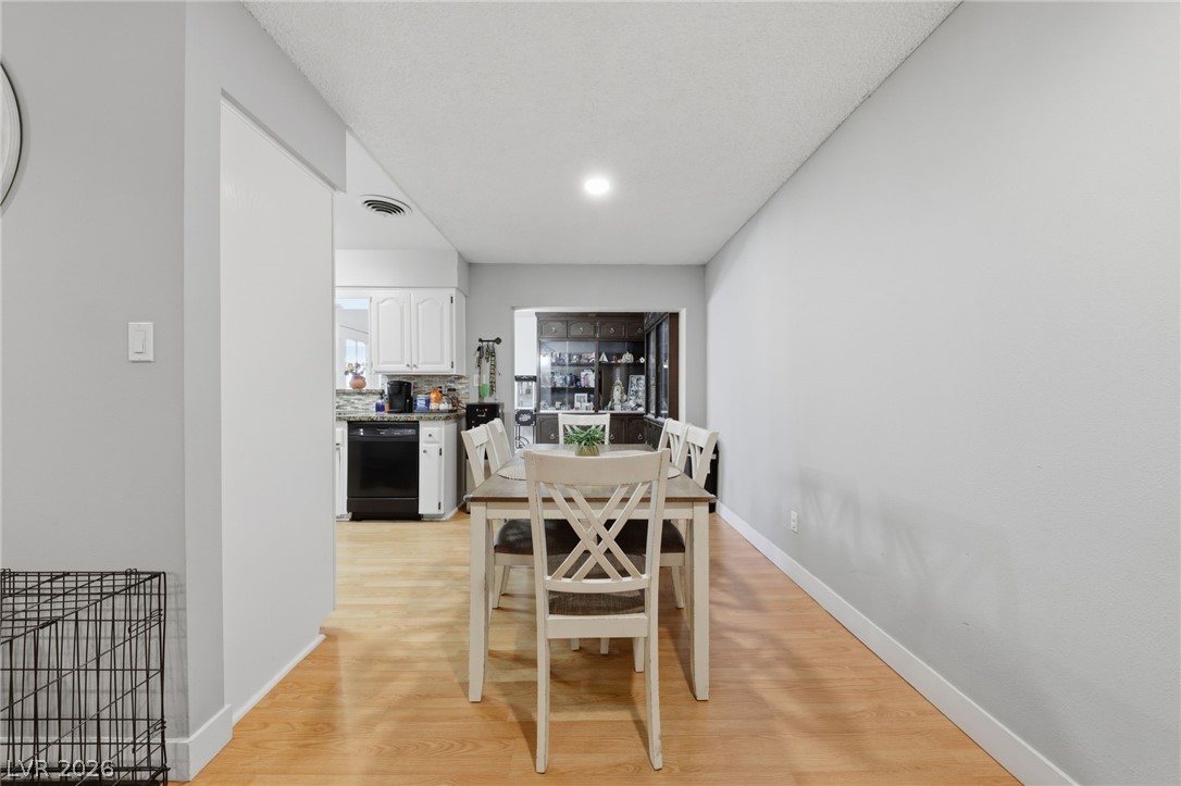 Welcome home to this charming single-story residence with your own private pool! Move-in ready home featuring a cozy kitchen with granite countertops, stylish backsplash, breakfast bar, and adjoining dining area. This home offers three generously sized bedrooms and two bathrooms, along with an open and inviting family room complete with built-in shelving and laminate flooring throughout. Step outside to enjoy a spacious backyard designed for easy upkeep, highlighted by a large pool with a diving board - ideal for relaxing or hosting gatherings. Additional features include a covered side yard for extra storage and an enclosed sunroom. Conveniently located just minutes from shopping, dining, and the Las Vegas Strip, with the added benefit of no HOA.