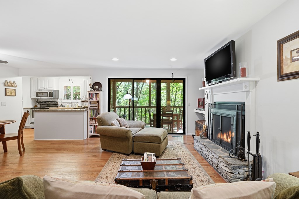 Located in the gated community of Big Canoe this lovely, updated end-unit condo is close to the clubhouse and has seasonal Lake Sconti views. Easy access from level 2 assigned parking spaces you will love the setting of this well maintained home. The living room has beautiful hardwood floors, bookshelves and wood burning fireplace. The kitchen has granite counter tops, stainless steal appliances and a pass through bar to the screen porch making entertaining a delight. The Master's suite has a wood burning fireplace, access to the screen porch and a ensuite master bath boasting a tiled walk-in shower, whirlpool tub and double sink vanity. Stacked washer and dryer is in the hall way closest to the master suite. The 2nd bedroom is located on the other side of the condo and is perfect for office, craft room and bedroom. Updated sink in the guest bath with Tub/Shower Combo. Whether you are looking for a full-time, part-time or short-term rental, you will love all of the amenities offered at Big Canoe. Considered a self-sustainable community with various wildlife, including Eagles, fresh water trout, bear, deer and much more. Come and see this beautiful condo and what the Big Canoe lifestyle is all about!