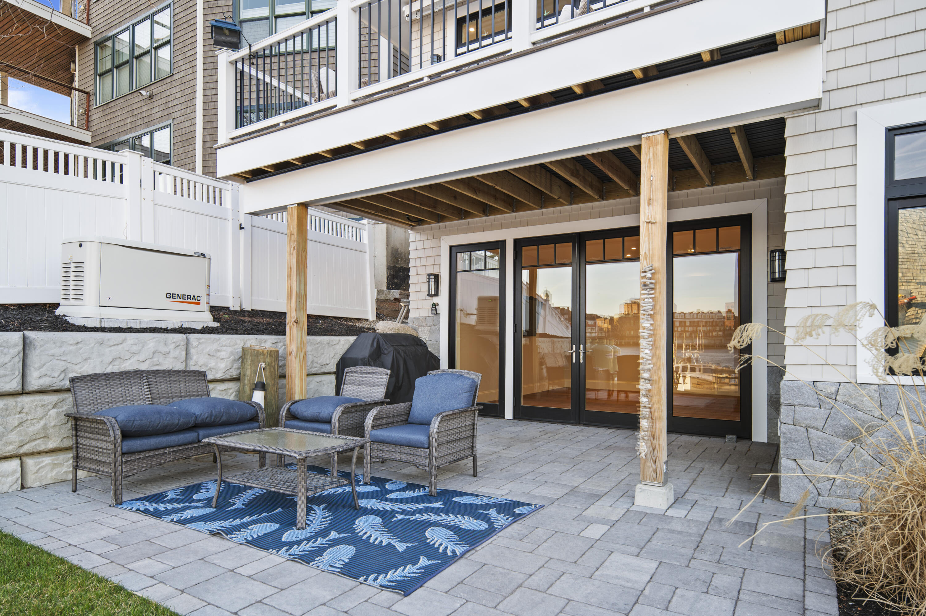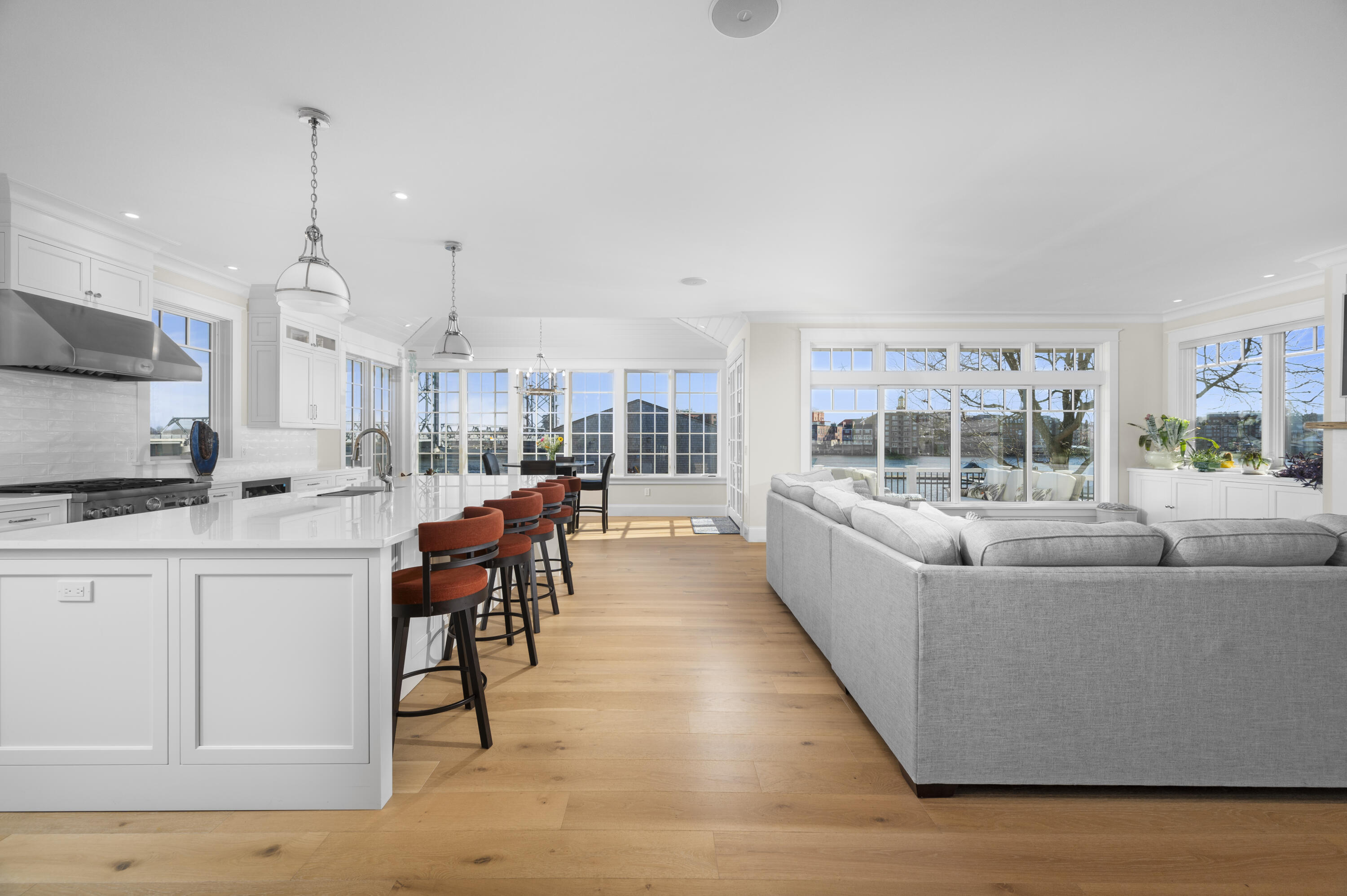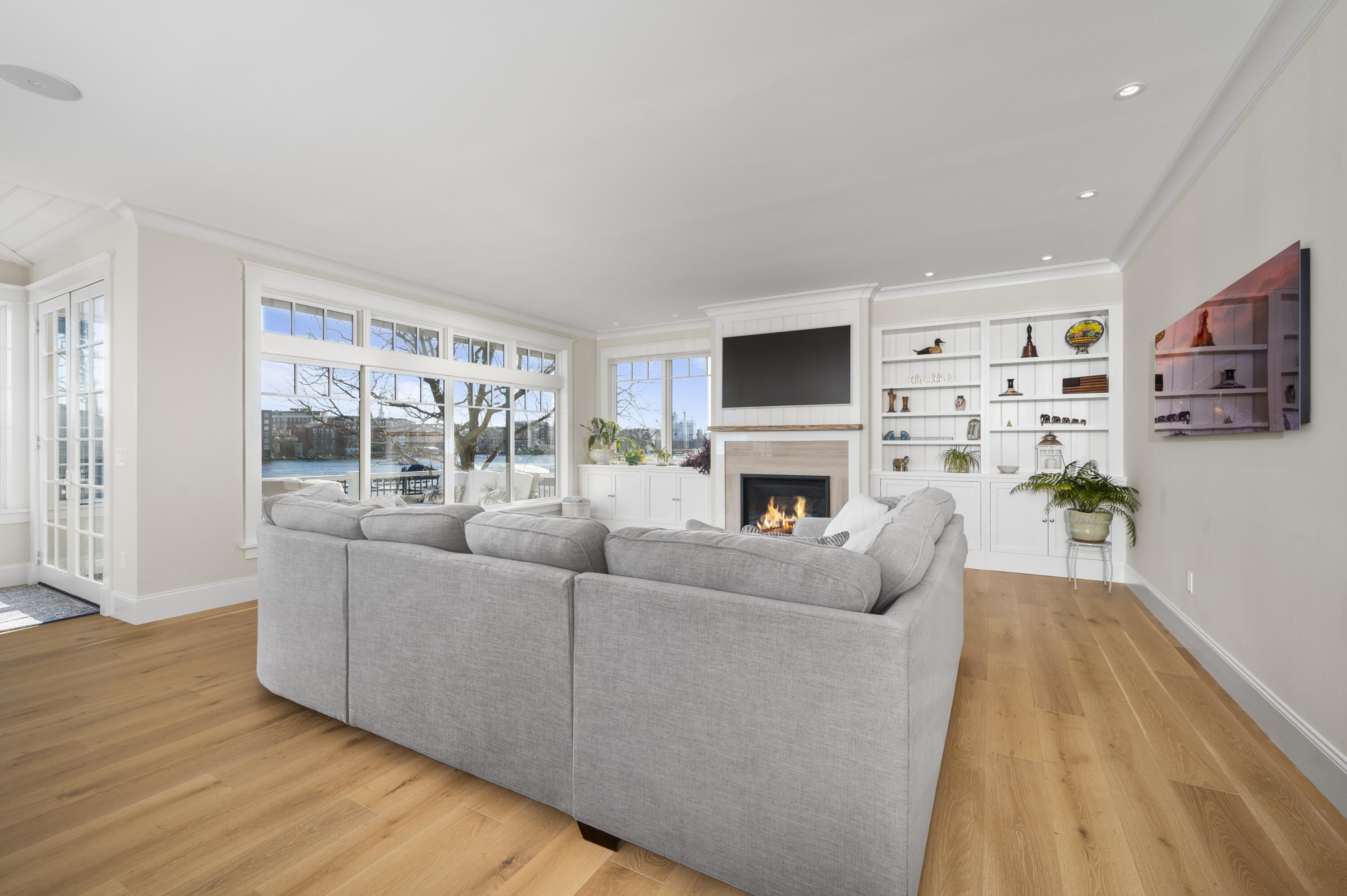 This exceptional waterfront residence is thoughtfully designed across multiple levels to capture both comfort and stunning views at every turn, all within walking distance to vibrant downtown Portsmouth. The lower level offers a fully equipped living space complete with a kitchen, bedroom, living area, and den, all opening to a waterside patio perfect for seamless indoor-outdoor living. The main level is designed for both elegant entertaining and everyday living, anchored by a gourmet kitchen featuring high end appliances, custom cabinetry, and generous prep space. It flows effortlessly into the surrounding living and dining areas, where expansive windows fill the home with natural light and frame captivating water views. Just beyond, a gorgeous deck with a gas fire feature provides the perfect setting to relax and watch the boats drift by. On the second level, the primary suite provides a serene retreat, featuring a private deck that offers sweeping water views and peaceful outdoor escape. This level is further complemented by an additional bedroom with its own en suite bath ideal for guests or family seeking privacy and comfort. The third level elevates the experience even further, offering a versatile bonus area, an additional bedroom with en suite bath, and a spacious deck an ideal vantage point for taking in sweeping water views or enjoying quiet moments above it all. Designed with both convenience and future planning in mind, the home is ready with elevator capability thoughtfully integrated into the design, allowing for easy installation and effortless access to all levels. Please note that an existing waterfront commercial structure currently occupies a portion of the site, offering potential for reconfiguration or removal to further expand the views and dock space. Offering 157 feet of dock frontage across three docks. A rare opportunity and a short walk to the charm, dining, and energy of downtown Portsmouth.