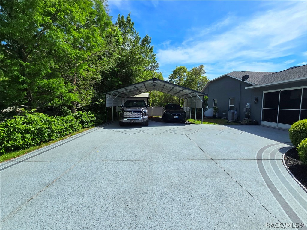 Florida living at it's finest!! This simply STUNNING home is located on a spacious 1/2 acre of land with NO HOA or deed Restrictions! There's NOTHING left to do here! Lovely 3 bedroom, 2 bathroom split floor plan with cathedral ceiling, a beautiful screened lanai with a gorgeous saltwater pool and a sprawling fenced in yard. This home offers so many extras! Updated HVAC system, insulated 2 car garage, Central vacuum, Irrigation system, Fireplace, security system, Intercom/music system, New roof August 2024, new vinyl privacy fence 2023, all new lighting and ceiling fans 2025, fresh interior and exterior paint including the pool deck, new carport 2025, new storage shed 2023, and so much more!! Located near many good dining and shopping options, along with close proximity to all of what Inverness has to offer! Hospitals, Doctors offices, public parks, and downtown Inverness all within 10 minutes. Don't wait to schedule your showing on this gorgeous home! This one won't last long!