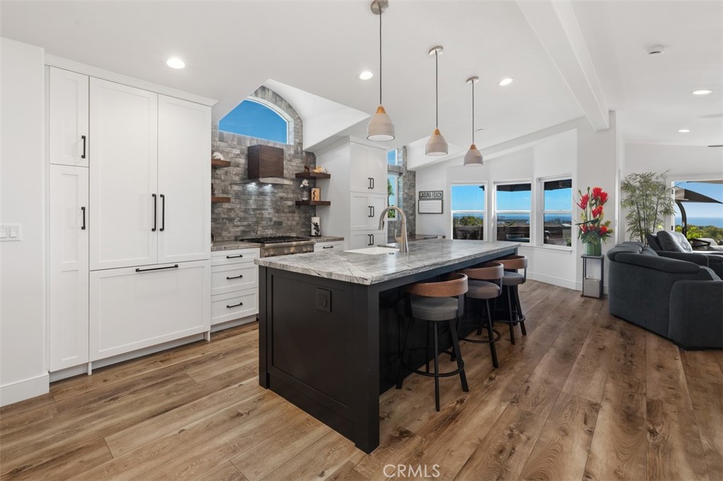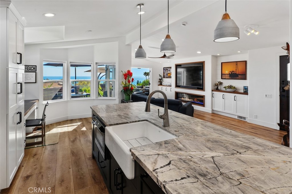 Experience the essence of coastal living in the ocean-view community of Laguna Terrace in South Laguna Beach, ideally situated just across Pacific Coast Highway from the iconic Montage Laguna Beach. This beautifully reimagined residence offers a rare opportunity to enjoy one of Southern California's most coveted beachside lifestyles - without the multimillion-dollar price tag typically associated with Laguna Beach. Set within a land-lease community, this home presents a unique alternative to traditional ownership, allowing you to embrace the coastal lifestyle with greater flexibility while still enjoying close proximity to pristine beaches, scenic coves, hiking trails, and renowned dining. Thoughtfully renovated throughout, the home blends modern design with everyday comfort. Recent upgrades include a new replacement roof (April 2026), updated flooring, recessed lighting, new ceiling fans, and the addition of air conditioning. The redesigned kitchen serves as the heart of the home, featuring custom cabinetry with a built-in refrigerator, a reimagined island with leathered quartzite countertops, and a suite of high-end appliances including a Thermador appliances: refrigerator, dishwasher and gas range, a Sharp microwave, and LG ThinQ stacked washer and dryer. Both bathrooms have been fully renovated with contemporary finishes, and new lighting and fixtures enhance the home's cohesive, elevated feel. Step outside to the Trex deck and take in sweeping views of the ocean, canyon, and Catalina Island - an ever-changing backdrop that defines the Laguna Beach experience. Whether enjoying a quiet morning or hosting at sunset, the setting offers a true sense of escape. Located in the Ocean View Community of Laguna Terrace residents enjoy access to resort-style amenities including a pool, spa, fitness center, and clubhouse, all just minutes from Laguna Beach's world-class coastline, dining, art galleries, and outdoor recreation. Monthly land lease is $5,250 and subject to annual increases of 3% or CPI, whichever is greater. Home Serial #'s: 17617088AP/BP.