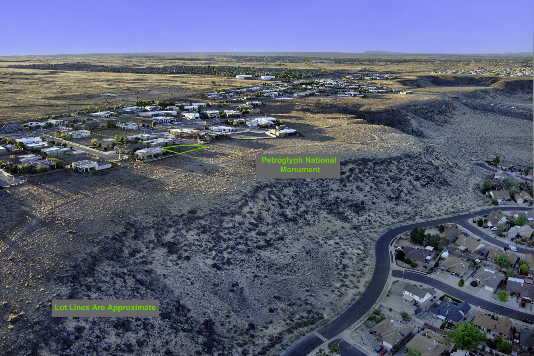 Perched along the bluff in the highly sought after Volcano Cliffs community, this exceptional vacant lot offers a rare opportunity to build your dream home in one of Albuquerque's most breathtaking settings. Backing directly to the protected open space of the Petroglyph National Monument, this homesite ensures privacy, tranquility, and permanently unobstructed views. Enjoy sweeping, panoramic vistas of the Albuquerque city lights, the Sandia Mountains, and the surrounding desert landscape; creating a stunning backdrop both day and night. With no rear neighbors and direct access to natural beauty, this lot combines the serenity of nature with the convenience of nearby amenities.