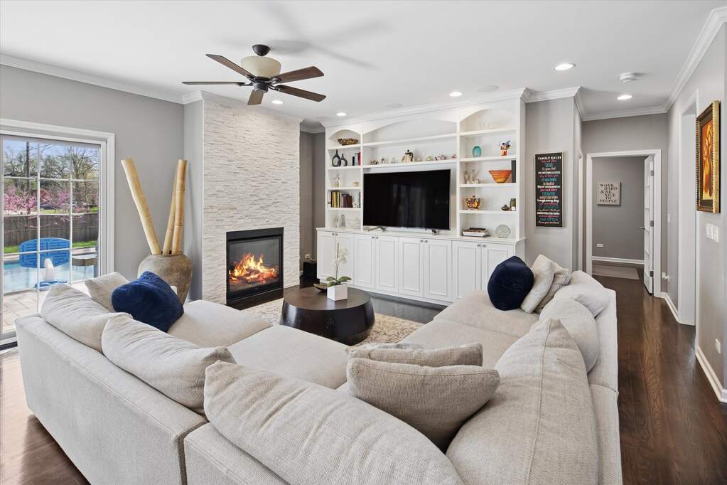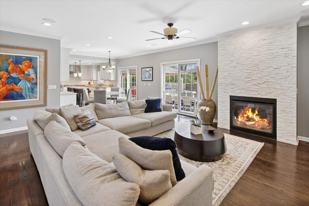 Beautifully rehabbed 4-bedroom, 3.5-bath home set on one of Northbrook's most desirable, tree-lined streets. Originally reimagined in 2010 with a full renovation, this home has been thoughtfully updated and meticulously maintained with a long list of meaningful improvements that offer true move-in-ready peace of mind. A dramatic two-story foyer welcomes you in and fills the home with natural light, while expansive living spaces are further enhanced by double sliders along the rear of the home that open seamlessly to the backyard. Designed for both everyday living and exceptional entertaining, the backyard has been transformed into a private, resort-style retreat featuring an in-ground pool and spa, expansive paver patio, covered pavilion, and outdoor gas fireplace-creating the perfect setting for relaxing or hosting. The indoor-outdoor connection makes entertaining effortless and elevates the overall living experience. Additional recent updates include newer mechanicals, roof, exterior paint, fencing, EV charger, and more, reflecting consistent care and investment over time. Ideally located just moments from downtown Northbrook, parks, dining, Metra access, and award-winning District 27 schools and Glenbrook North High School, this home offers the perfect blend of comfort, convenience, and lifestyle.