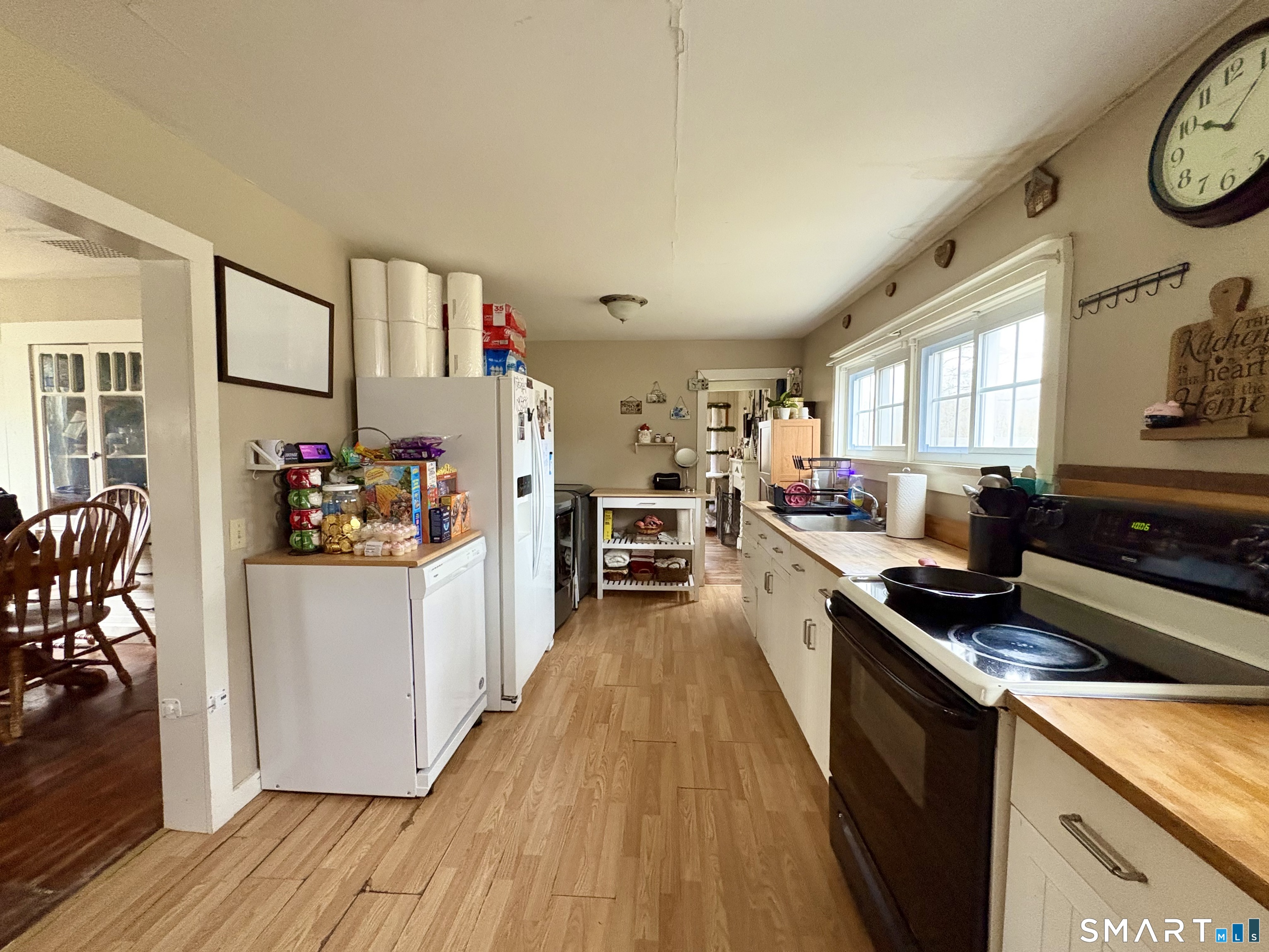 Opportunity and character come together in this 1840 home set on 2.03 acres in Putnam. Rich with charm, the home features wide board flooring, built-ins in both the living and dining rooms, and butcher block countertops that bring warmth to the space. The layout includes a quarter bath on the main level and three bedrooms with a full bath upstairs. A spacious enclosed breezeway creates a flexible living area with its own feel-offering potential for an in-law arrangement, home office, or additional living space. A covered front porch, back deck and attached one-car garage add to the home's functionality and appeal. While cosmetic updates are needed, the bones, space, and setting offer incredible potential for the right buyer to restore and make it their own. Newer water heater already in place. Property is best suited for cash, rehab financing, or possibly conventional financing.