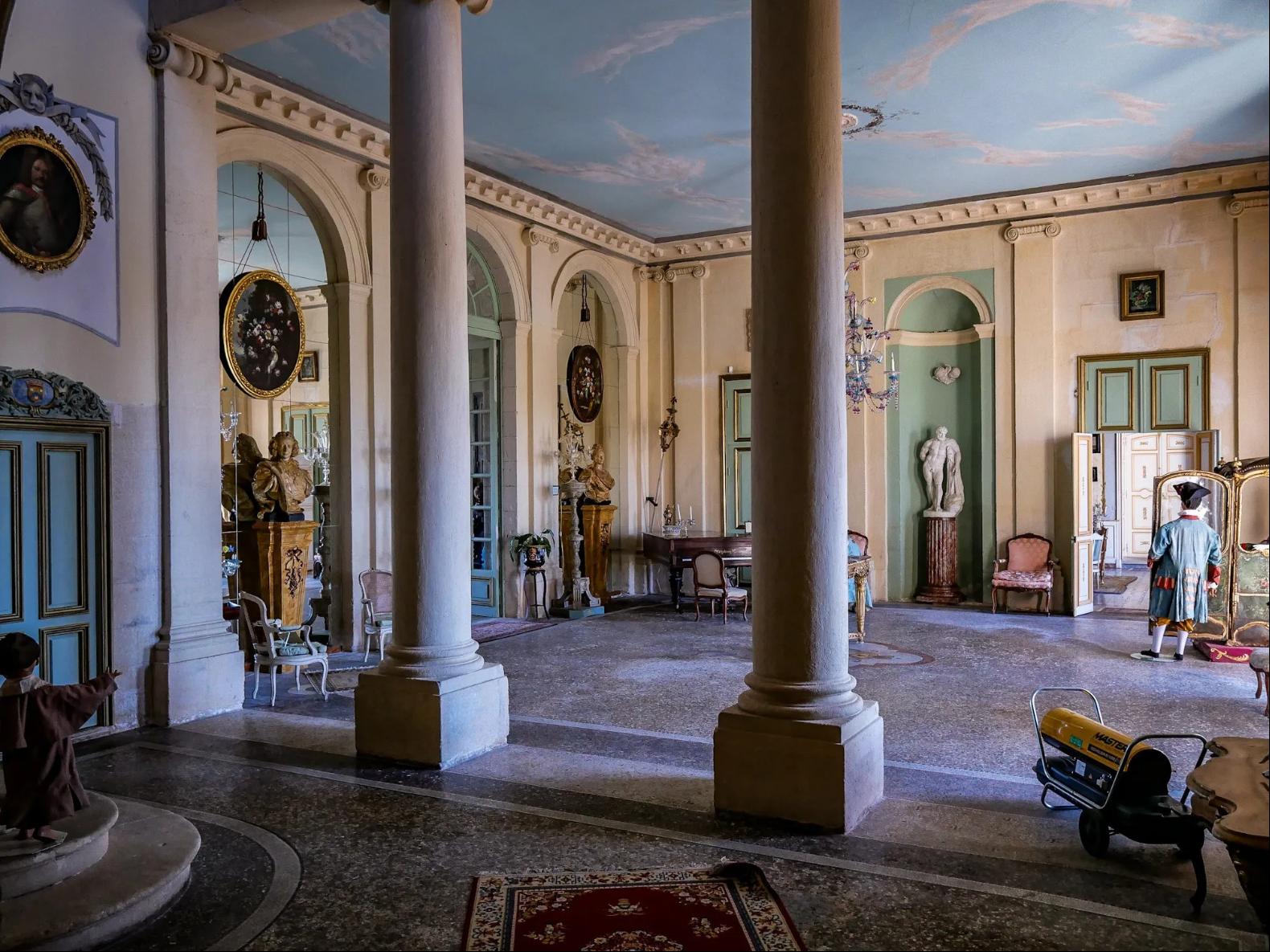 The ground floor opens on all sides to a suite of salons with very sober decoration, unfinished in the 18th century following the collapse of John Law’s bank in 1720, in which the Forbin family-commissioners of the château-are believed to have been involved.