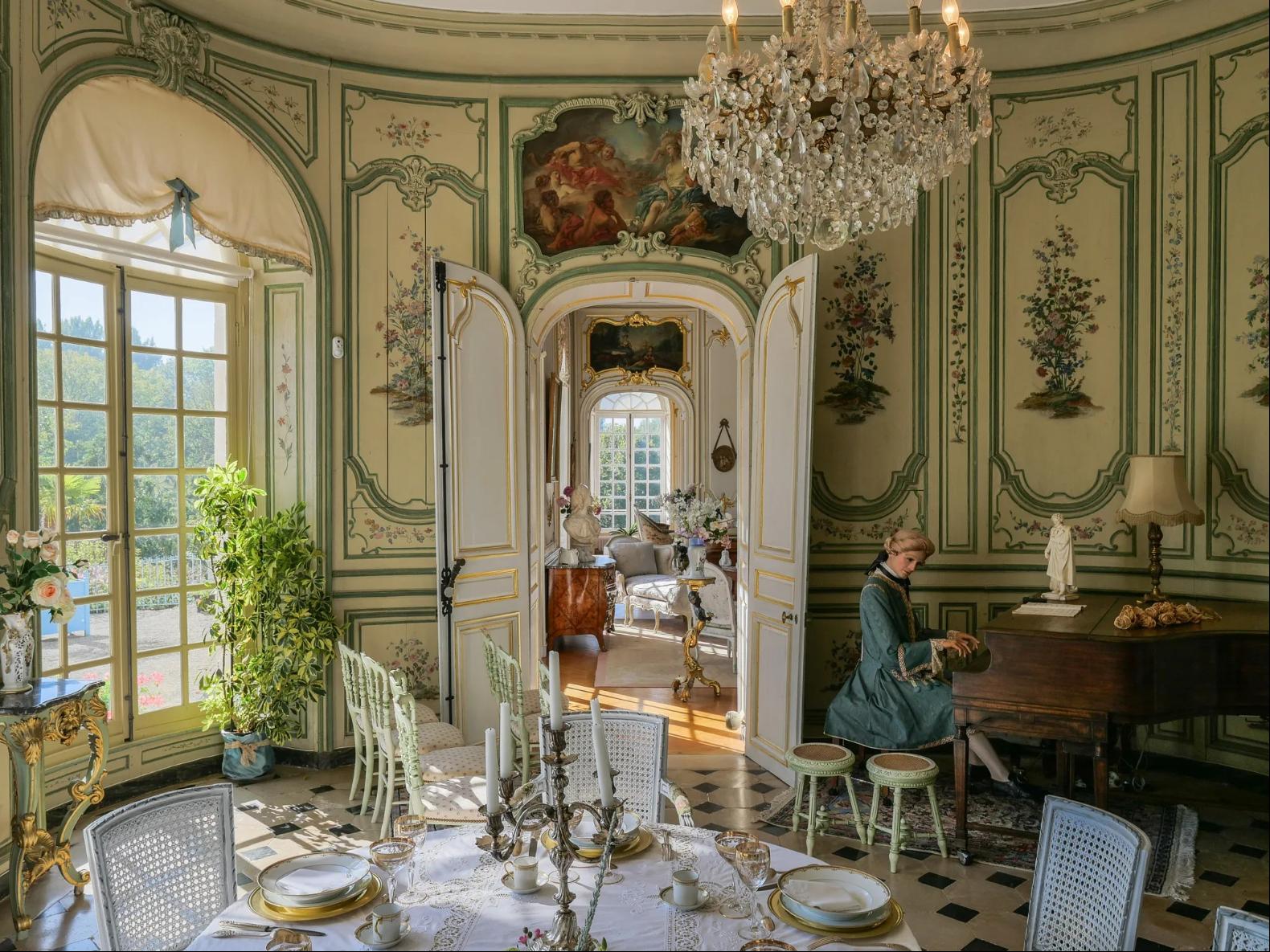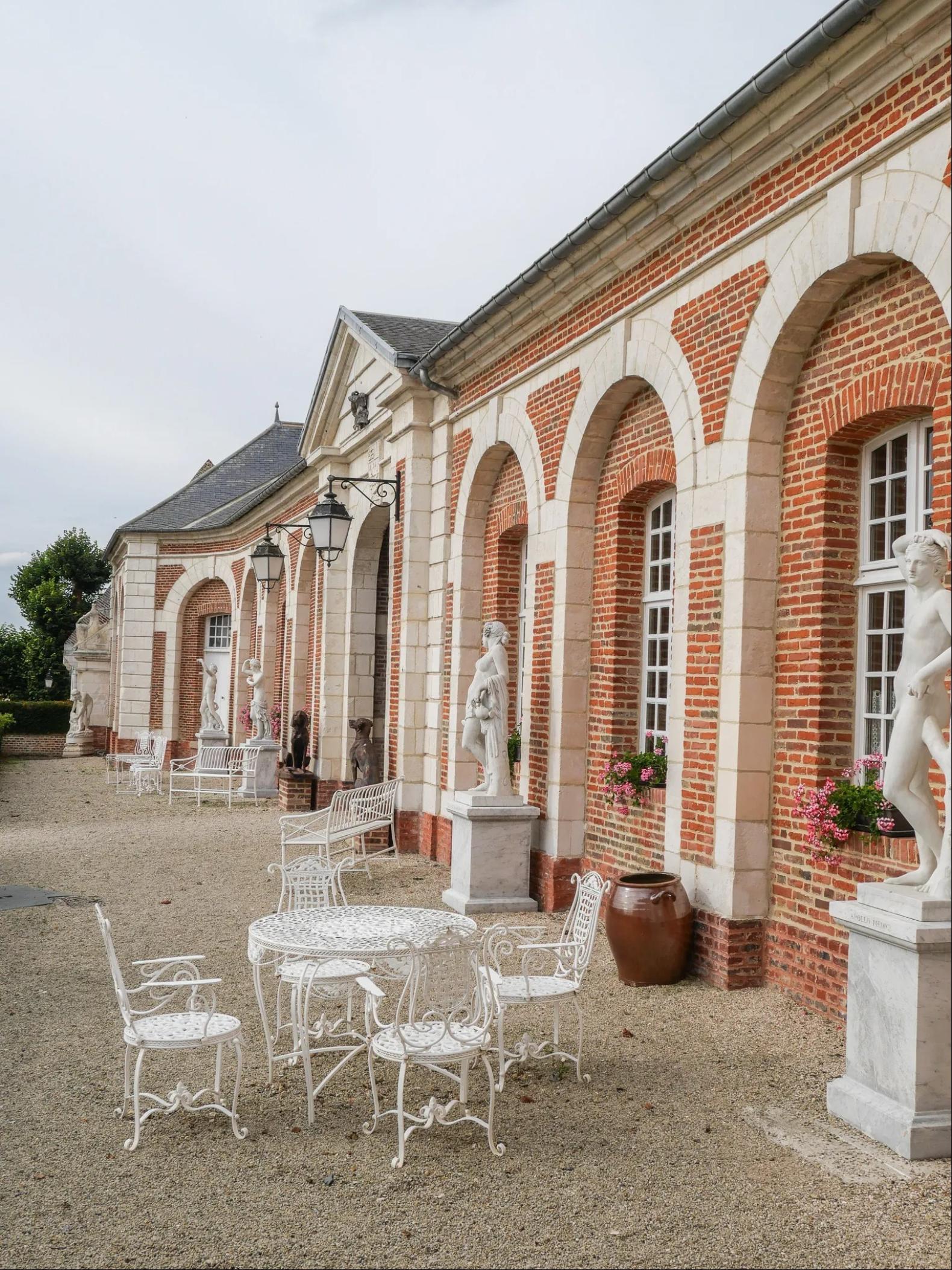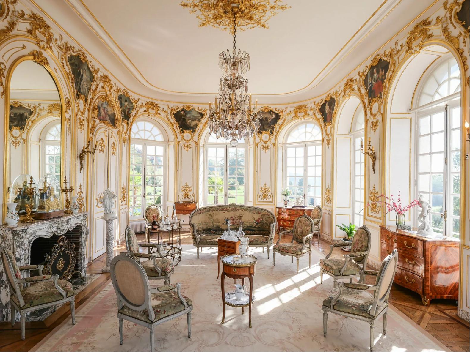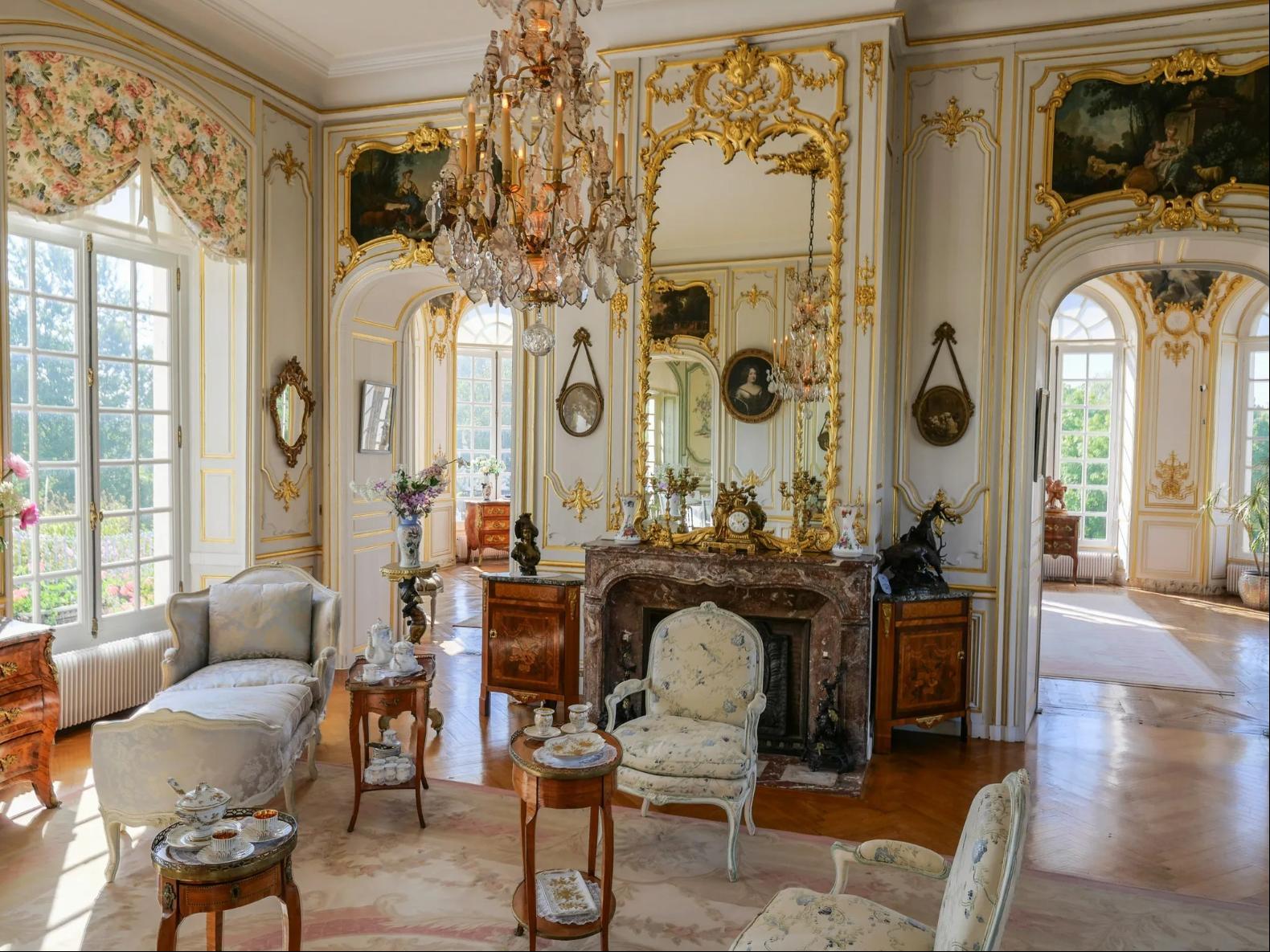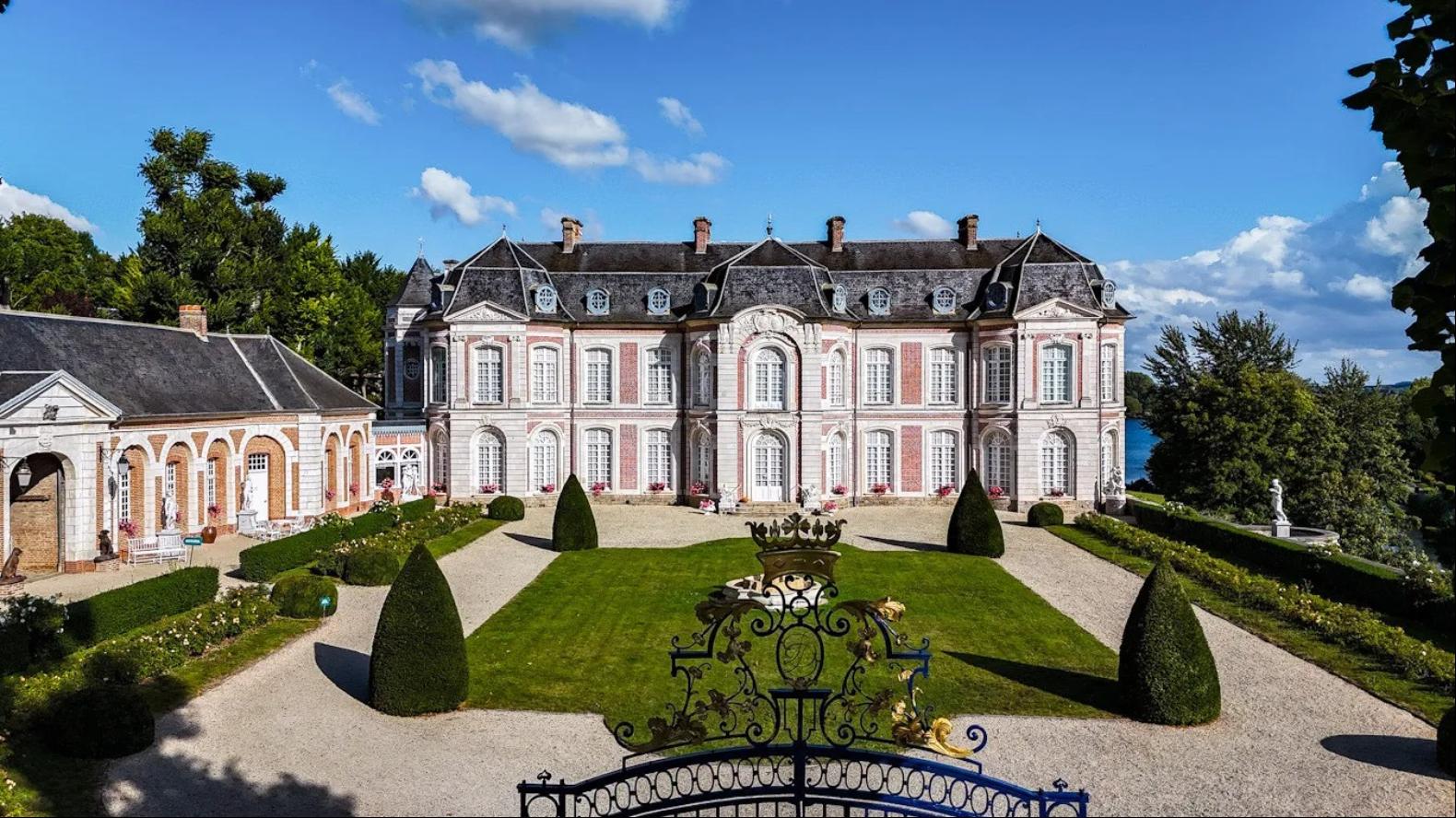 Dominating the splendid natural setting of the Somme Valley, this 18th-century masterpiece, built in refined symmetrical brick-and-stone architecture inspired by an 18th-century architectural treatise, rises on a series of monumental south-facing terraces that shelter some of the largest private greenhouses in France, each one hundred meters long. The landscaped park, both classical and romantic in style, extends over 18 hectares and is bordered for one kilometer by the river, enclosing a five-hectare pond dotted with small peninsulas. Thanks to its east-west orientation, the château is bathed in light throughout the day, offering grand enfilades of salons and bedrooms with painted and gilded Rocaille woodwork, framing original paintings by Jean-Baptiste Huet. Together, these create a magical décor that combines with the magnificent south-facing view from the salons across the valley.