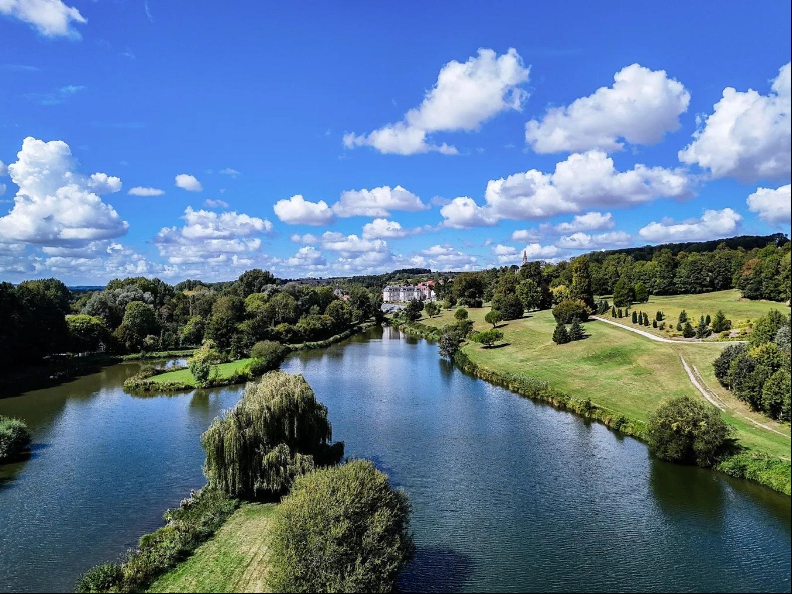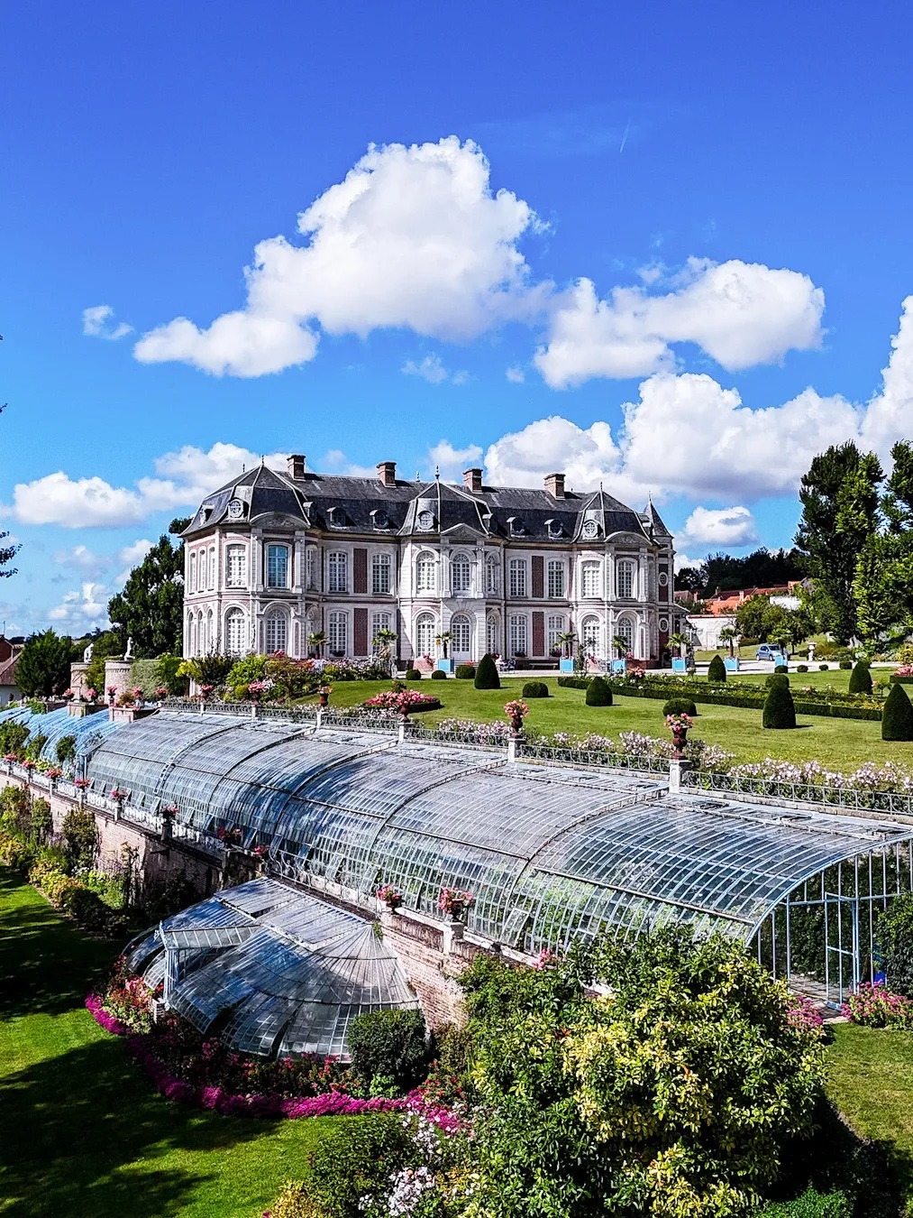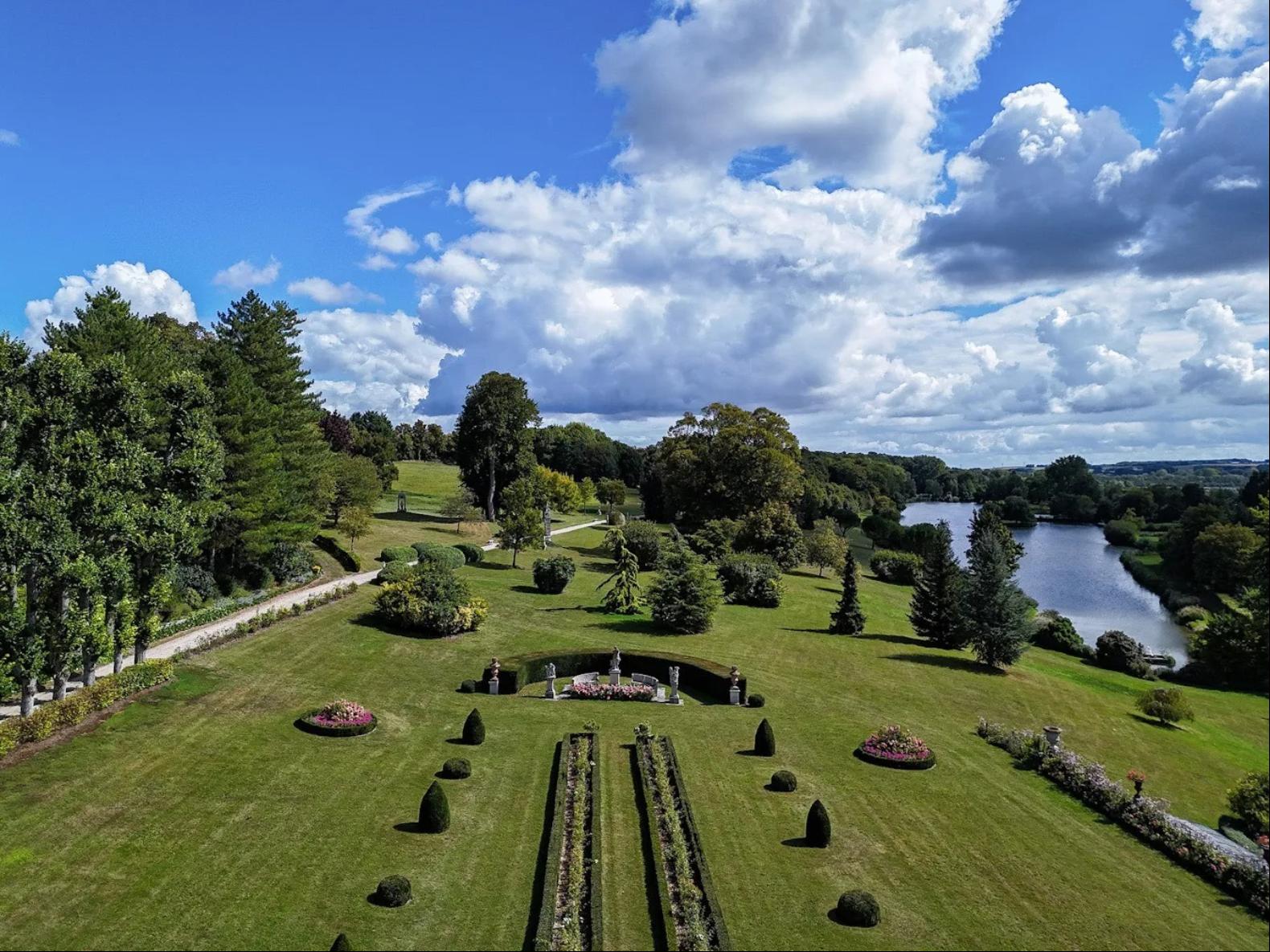 The estate is enclosed and extends over 189,081 m², with many stabilized paths. It includes a pond of more than five hectares and one kilometer of riverbank along the Somme, recently restored and in good condition. The gardens are superbly maintained, with an abundance of flowers and roses. Three south-facing terraced esplanades overlook the Somme, while monumental and rare 19th-century greenhouses, recently restored and in perfect condition, are set against the terrace and shelter luxuriant vegetation. There are three entrances: a monumental 18th-century wrought-iron gate facing the château, the gate of the service courtyard, and a secondary entrance at the far end of the park.