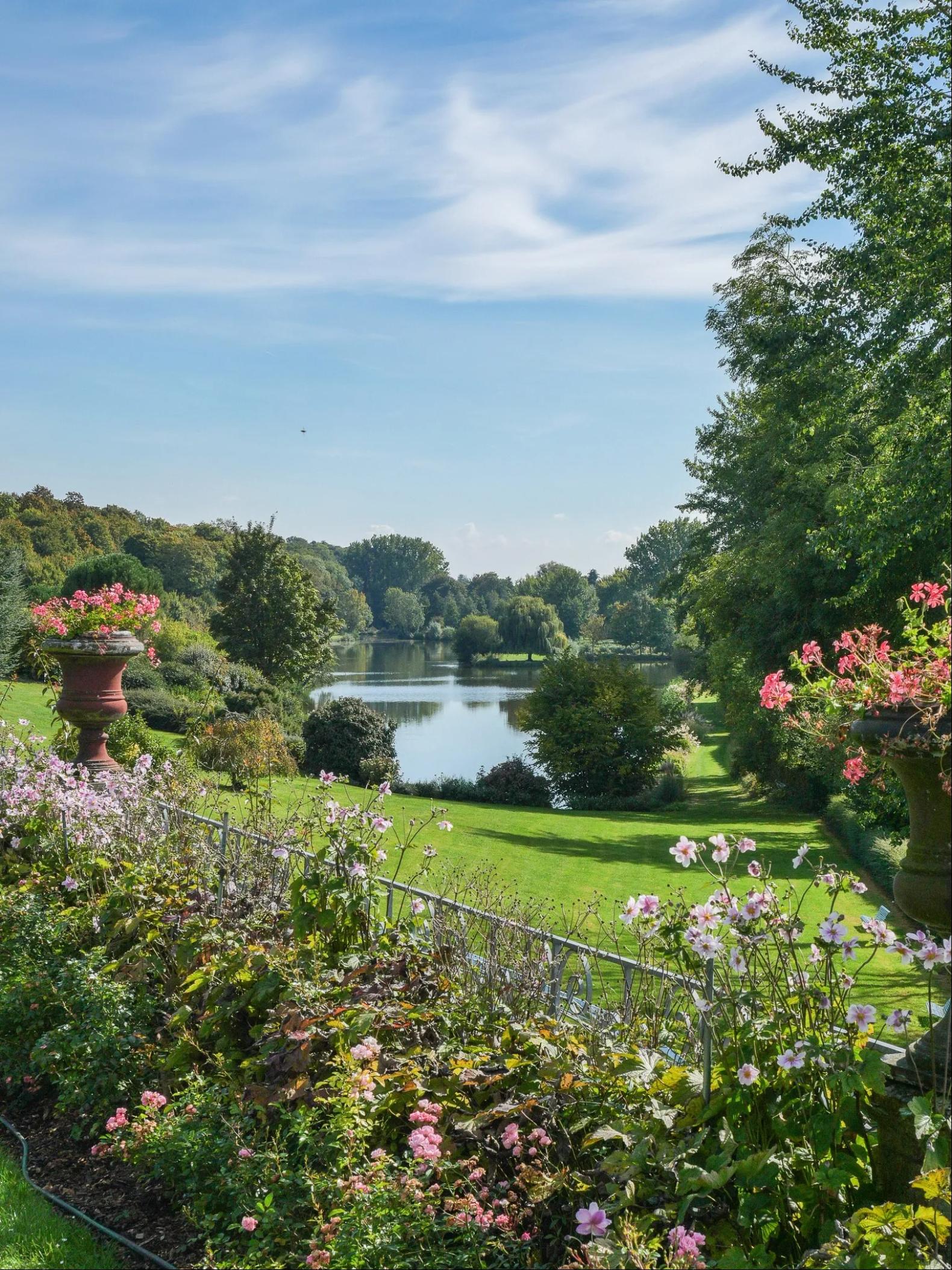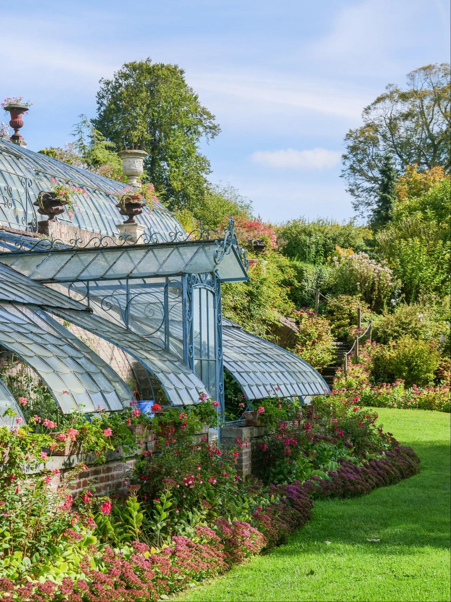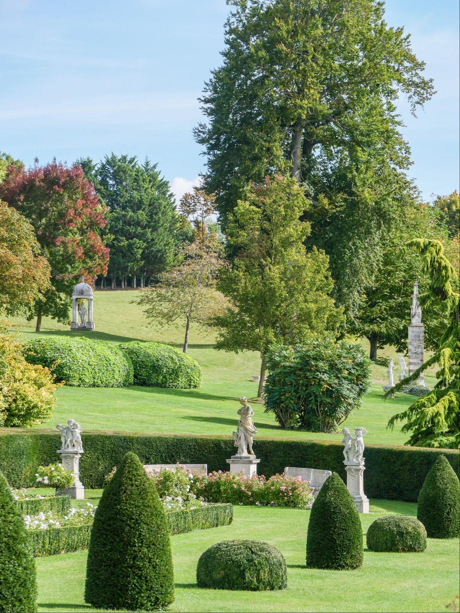 The estate is enclosed and extends over 189,081 m², with many stabilized paths. It includes a pond of more than five hectares and one kilometer of riverbank along the Somme, recently restored and in good condition. The gardens are superbly maintained, with an abundance of flowers and roses. Three south-facing terraced esplanades overlook the Somme, while monumental and rare 19th-century greenhouses, recently restored and in perfect condition, are set against the terrace and shelter luxuriant vegetation. There are three entrances: a monumental 18th-century wrought-iron gate facing the château, the gate of the service courtyard, and a secondary entrance at the far end of the park.