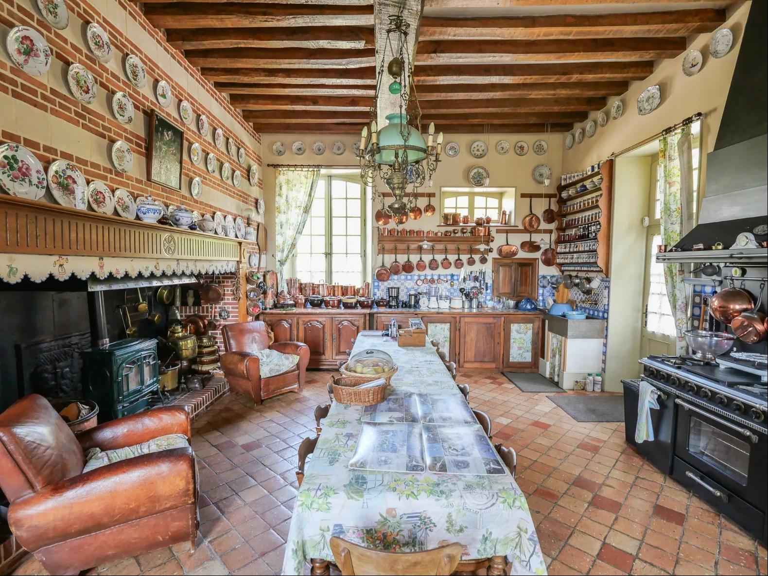 The outbuildings, of fine 18th-century symmetrical architecture, comprise a large château kitchen with rustic décor of beams and joists, terracotta-tiled floor, stone sink, marble worktop, ceramic tiles, and monumental fireplace. There is also a workshop, an independent studio with kitchen, bedroom and bathroom, a large ground-floor ”museum room” in the former orangery, and two large garages. The property also includes a caretaker’s house, a large barn, a former stable, a cowshed, a dovecote, and a large independent house in good condition with two garages.