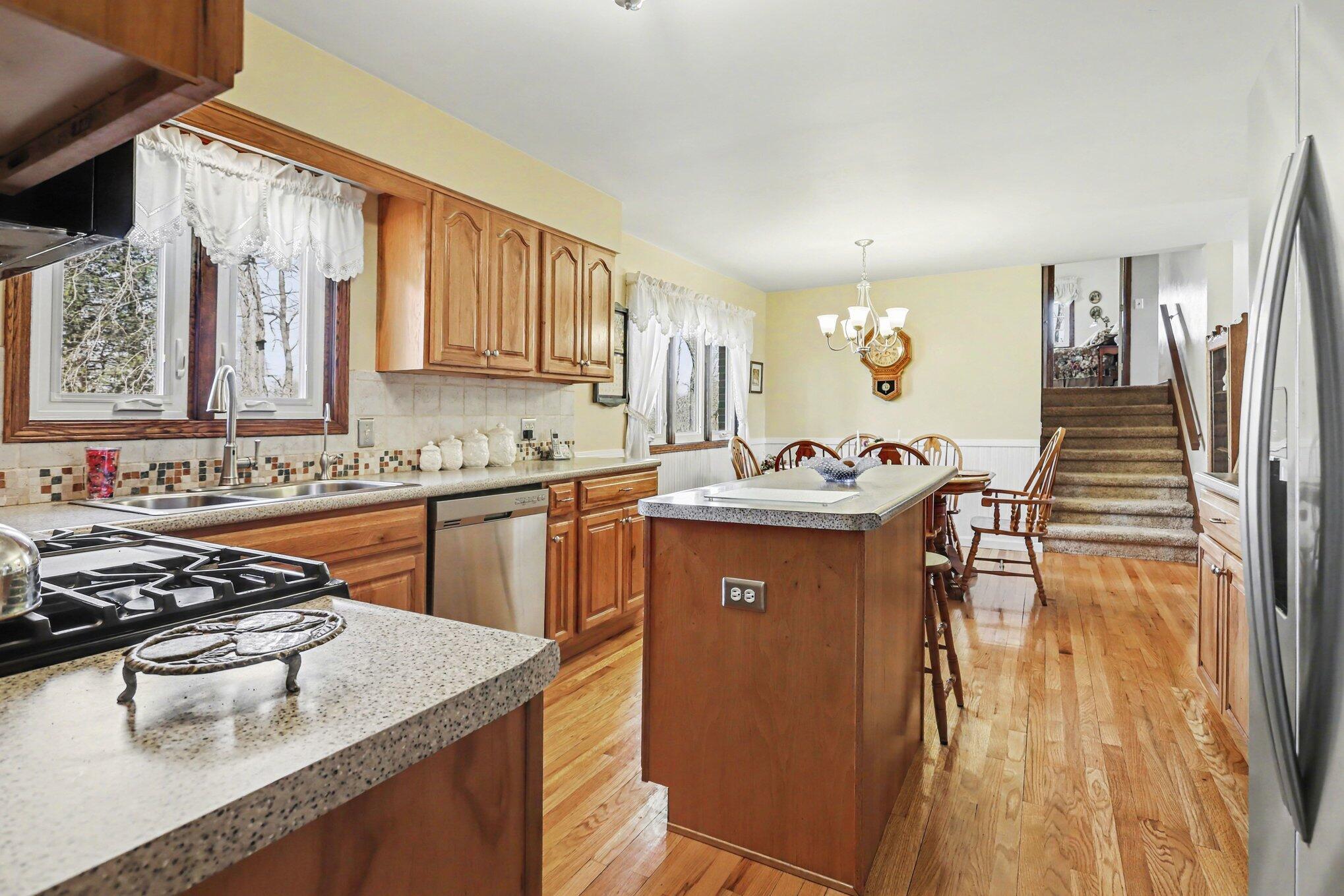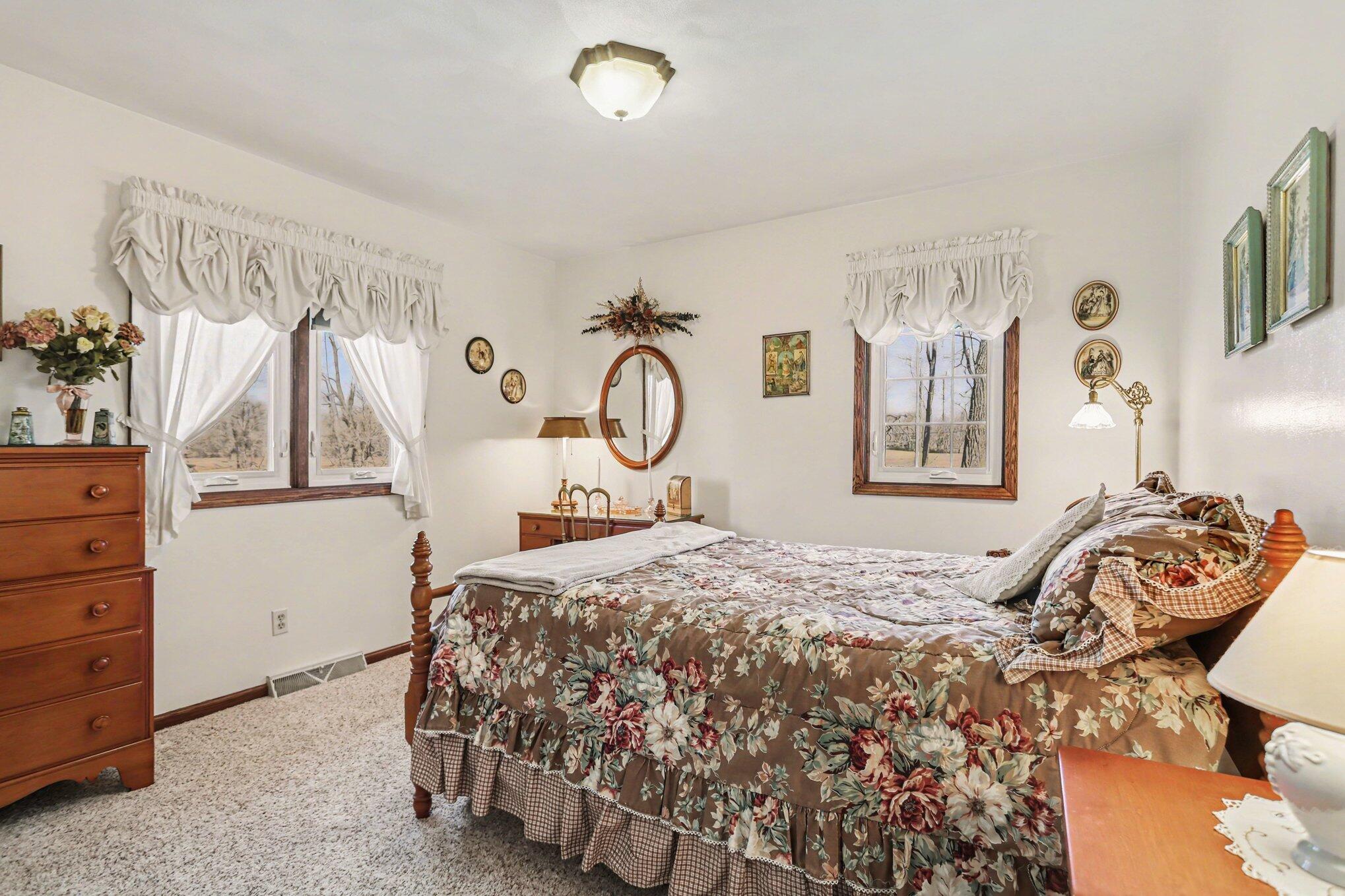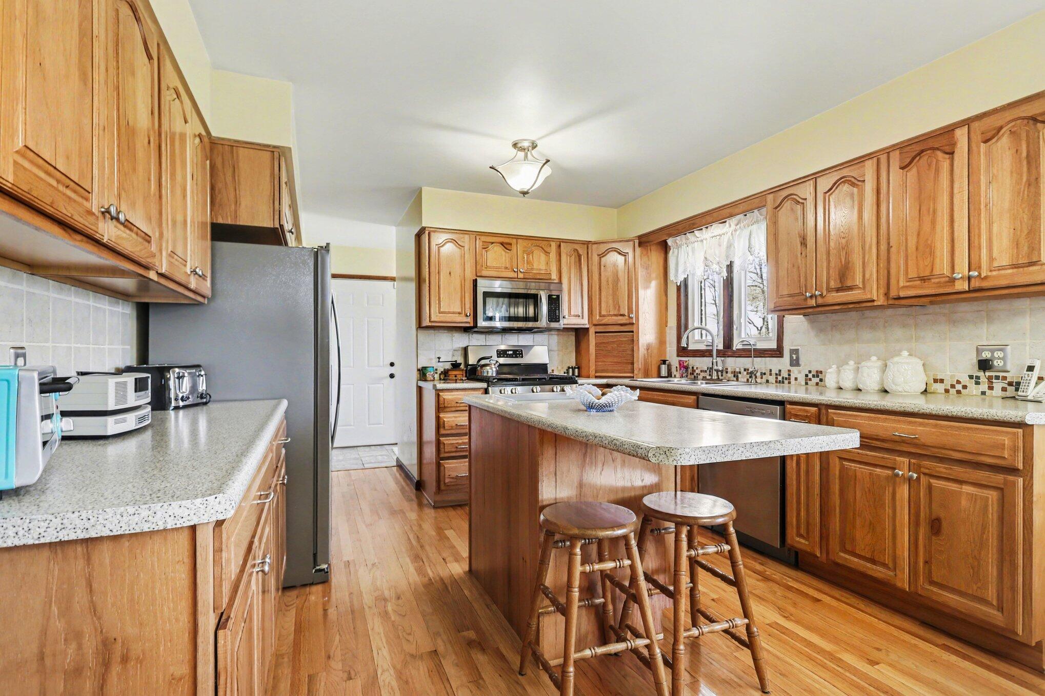 This spacious brick 'quad-level' home features 4 bedrooms, 2 1/2 updated baths and sits on 1.8 country acres. With over 2000 square feet, there's room for everyone. For the cook, the expansive oak kitchen w/Schrock cabinetry, center island, pantry & stainless appliances is a dream. There's a formal living room & a cozy lower level family room highlighted w/a unique stone wall around a classic wood burning fireplace. Outside, you'll find incredible versatility w/2 pole barns (18x20 & 24x18) plus an additional storage shed offering endless possibilities for hobbies, storage or workspace. A partially fenced backyard adds convenience while amenities like central air, replacement windows, a 2-car attached garage & a large basement for additional living space or storage complete the package. Priced at $409,000, this property delivers space, function & value in one impressive setting!