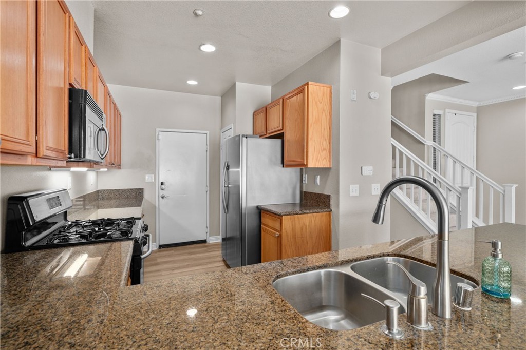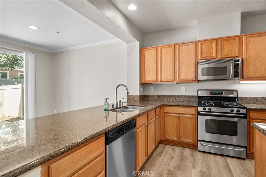 Beautiful 3-bedroom, 2.5-bath rental condo located in a gated community in Rancho Cucamonga, within the highly desirable Etiwanda School District. Offering approximately 1,670 sq. ft. of living space, this home features new vinyl plank flooring downstairs and brand new carpet upstairs. The kitchen includes stainless steel appliances, granite countertops, maple cabinetry, and a refrigerator. Upstairs offers a convenient laundry room with washer and dryer included, along with a spacious primary suite featuring a walk-in closet, dual sinks, and a separate tub and shower. Additional highlights include a downstairs half bath, large storage closet, and a private enclosed patio with custom tile and vinyl fencing. Conveniently located near shopping, dining, and just minutes from Victoria Gardens, with easy access to major freeways.