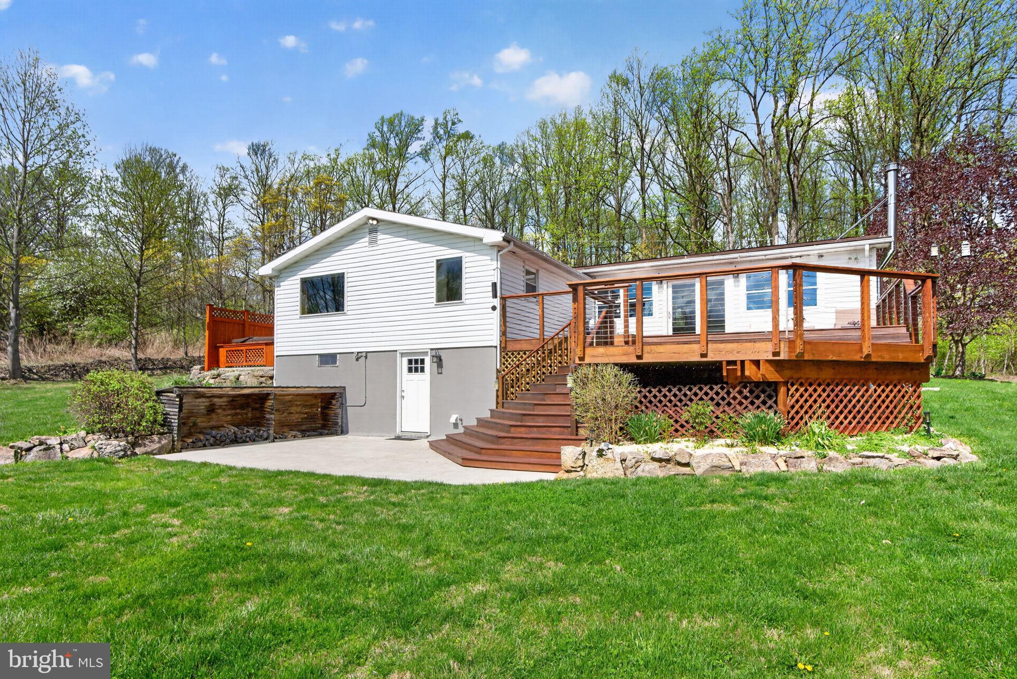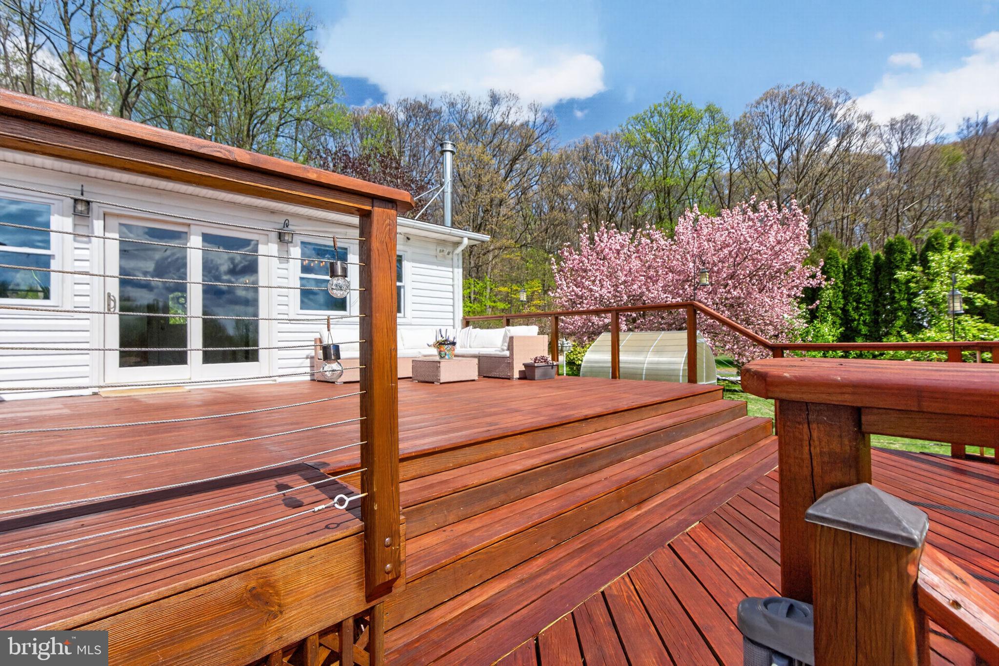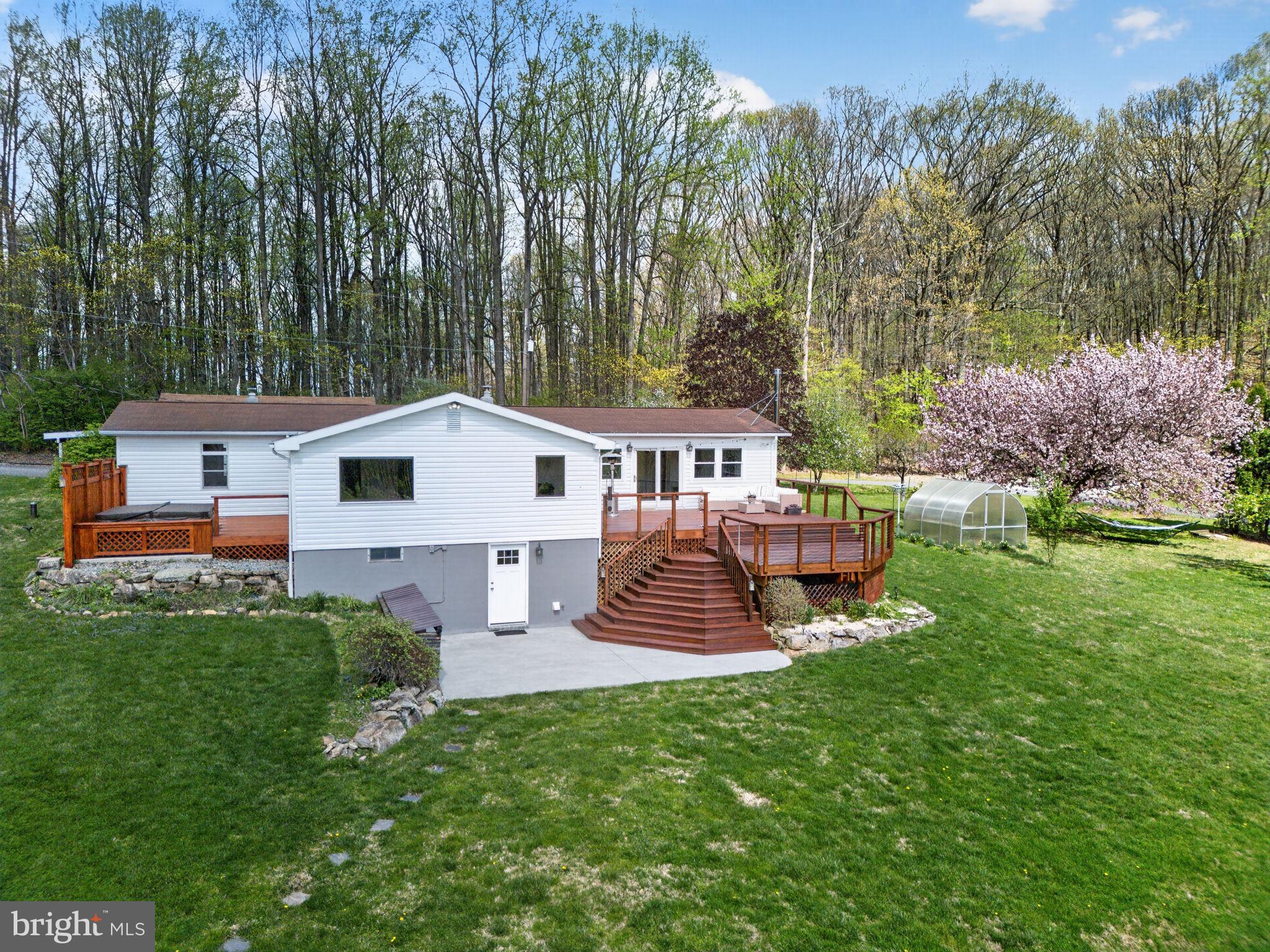 Set on over 9 acres in Upper Milford Township within the East Penn School District, this property offers a peaceful setting surrounded by open pasture, wooded views, & wide open sky. Tucked back from the road, the home overlooks the property's natural landscape, creating a quiet & relaxing environment that feels both private & connected to the outdoors. Inside, the main living area is arranged to take full advantage of the views. The kitchen features a center island & flows into the dining area, where large windows & double doors lead outside to the multi tiered main deck off the kitchen. Freshly stained & ready for daily relaxing or vibrant entertaining this summer, the deck overlooks the surrounding landscape & provides an ideal space to enjoy the property's setting. Hardwood flooring in a blend of Hickory, Acacia, & Brazilian Redwood adds warmth & character throughout much of the main level, while Lutron smart home features provide added convenience. The living room is filled with natural light & includes custom powered blinds. A bedroom with French doors is currently being used as an office, with a full bath located nearby. The primary suite offers its own peaceful retreat, with large windows that frame beautiful views of the surrounding land. The bedroom includes a built in bookshelf, custom barn doors on two closets, & a third spacious walk in closet. The updated bath features a spa style shower with rainfall feature & soaking tub. From the bedroom, doors lead directly to a private cedar deck with hot tub, creating a quiet space to relax while overlooking the property. The walkout lower level provides additional living and entertaining space, including a finished media or bonus area with custom wood counters, built in cabinetry, & mini refrigerators. A wood stove adds warmth & character to the space. The lower level also includes a laundry area & generous storage. Outdoor living is where this property truly shines. Multiple outdoor areas include the main deck off the kitchen, a 20 x 18 lower patio accessed from the walkout basement, & an additional 15 x 12 deck overlooking the backyard. The grounds include a chicken coop, a small barn with two horse stalls, & a fenced pasture suitable for horses, goats, chickens, or the animals of your choice. A greenhouse offers space for gardening, while a koi pond & a medium sized pond sit along a wooded hiking trail that winds through the property. Whether used for animals, gardening, hobbies, or simply enjoying the landscape, the setting offers exceptional flexibility and space. With over 9 acres of land, scenic views in every direction, & multiple outdoor spaces designed to enjoy the setting, the property offers the feel of country living with the comfort & updates of a thoughtfully improved home.