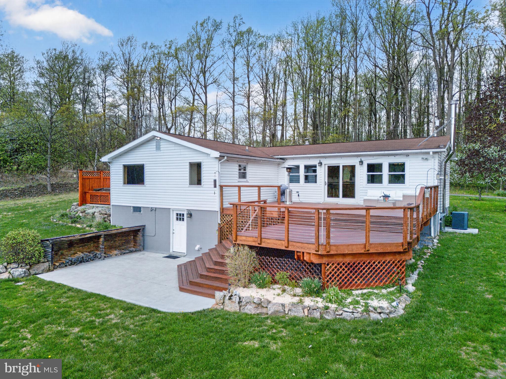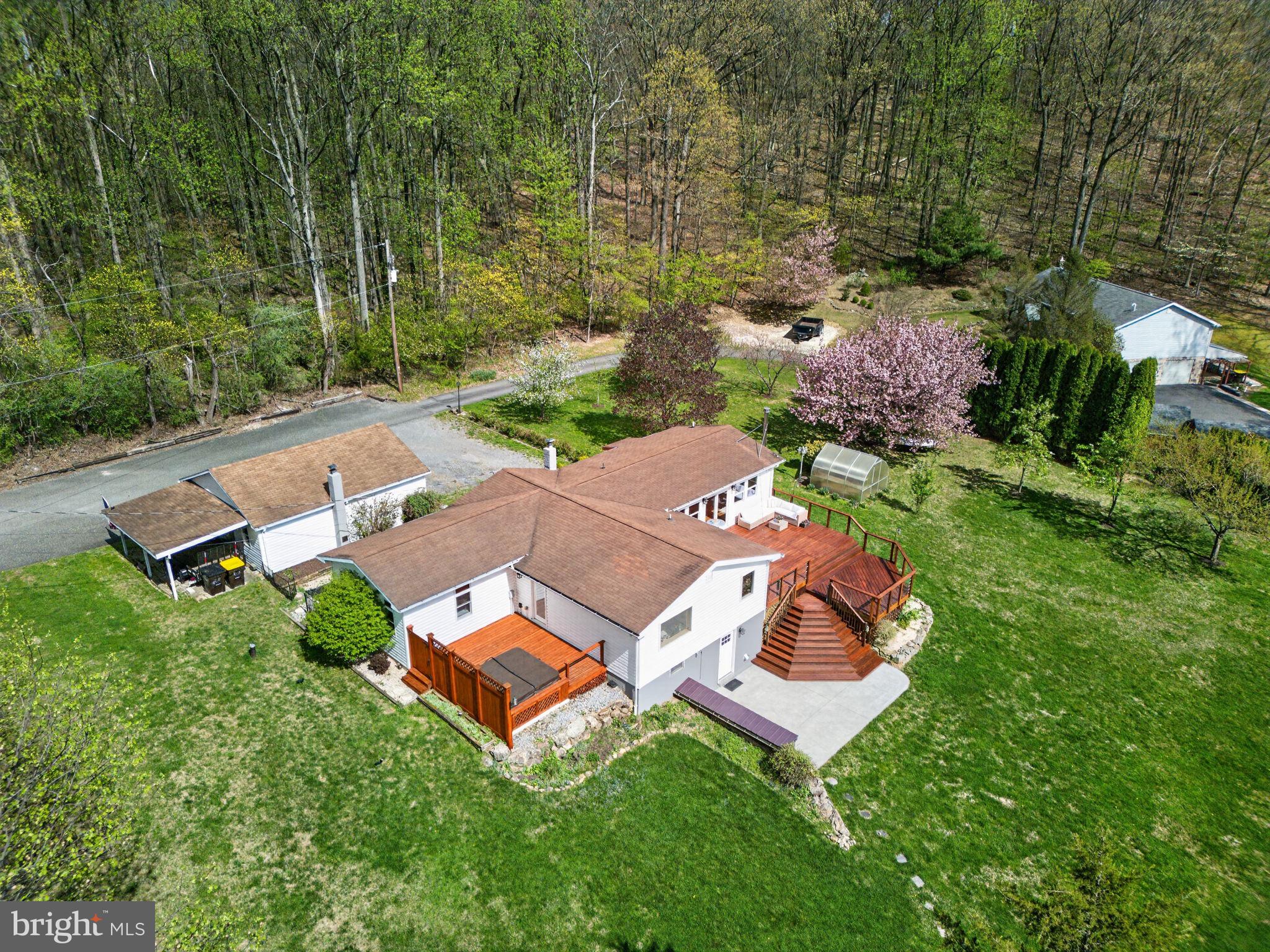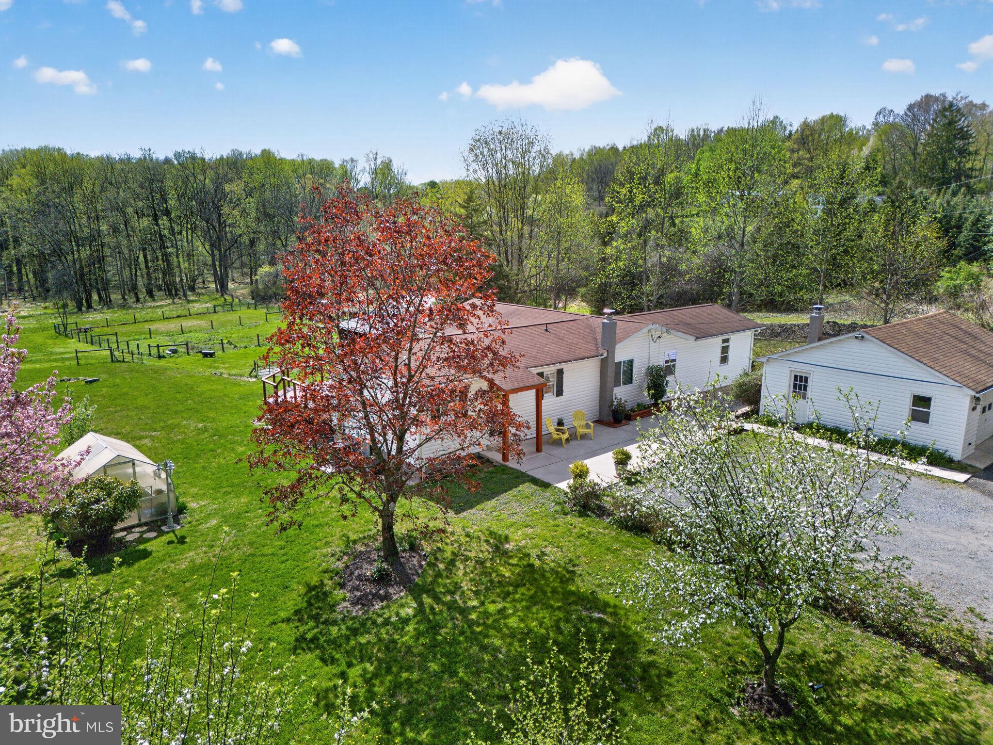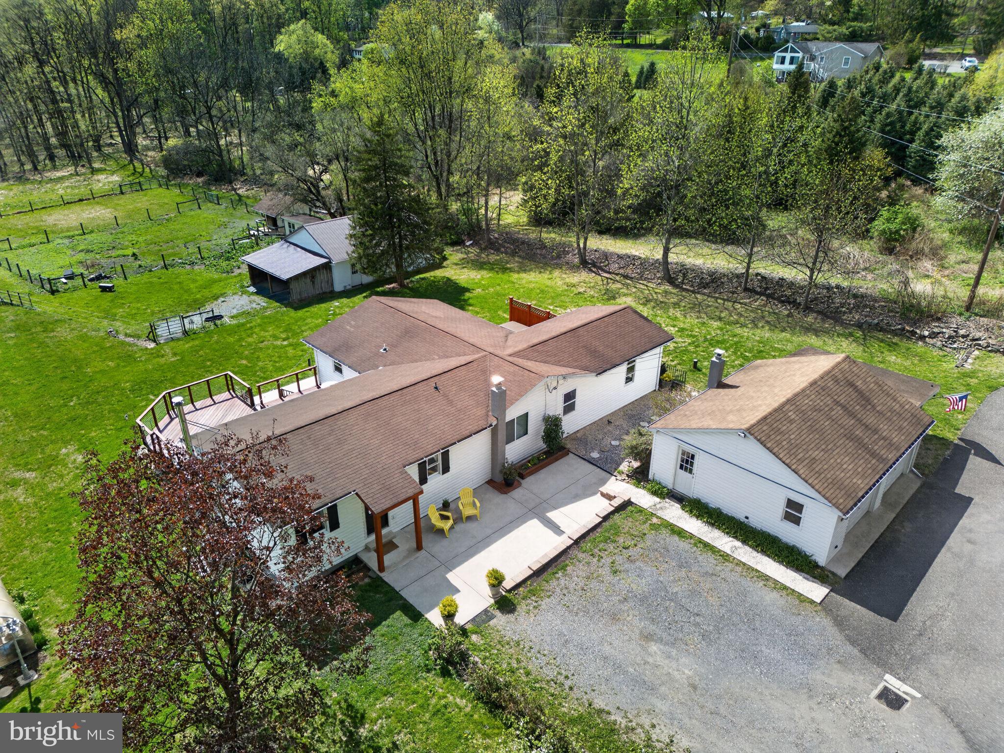 Set on over 9 acres in Upper Milford Township within the East Penn School District, this property offers a peaceful setting surrounded by open pasture, wooded views, & wide open sky. Tucked back from the road, the home overlooks the property's natural landscape, creating a quiet & relaxing environment that feels both private & connected to the outdoors. Inside, the main living area is arranged to take full advantage of the views. The kitchen features a center island & flows into the dining area, where large windows & double doors lead outside to the multi tiered main deck off the kitchen. Freshly stained & ready for daily relaxing or vibrant entertaining this summer, the deck overlooks the surrounding landscape & provides an ideal space to enjoy the property's setting. Hardwood flooring in a blend of Hickory, Acacia, & Brazilian Redwood adds warmth & character throughout much of the main level, while Lutron smart home features provide added convenience. The living room is filled with natural light & includes custom powered blinds. A bedroom with French doors is currently being used as an office, with a full bath located nearby. The primary suite offers its own peaceful retreat, with large windows that frame beautiful views of the surrounding land. The bedroom includes a built in bookshelf, custom barn doors on two closets, & a third spacious walk in closet. The updated bath features a spa style shower with rainfall feature & soaking tub. From the bedroom, doors lead directly to a private cedar deck with hot tub, creating a quiet space to relax while overlooking the property. The walkout lower level provides additional living and entertaining space, including a finished media or bonus area with custom wood counters, built in cabinetry, & mini refrigerators. A wood stove adds warmth & character to the space. The lower level also includes a laundry area & generous storage. Outdoor living is where this property truly shines. Multiple outdoor areas include the main deck off the kitchen, a 20 x 18 lower patio accessed from the walkout basement, & an additional 15 x 12 deck overlooking the backyard. The grounds include a chicken coop, a small barn with two horse stalls, & a fenced pasture suitable for horses, goats, chickens, or the animals of your choice. A greenhouse offers space for gardening, while a koi pond & a medium sized pond sit along a wooded hiking trail that winds through the property. Whether used for animals, gardening, hobbies, or simply enjoying the landscape, the setting offers exceptional flexibility and space. With over 9 acres of land, scenic views in every direction, & multiple outdoor spaces designed to enjoy the setting, the property offers the feel of country living with the comfort & updates of a thoughtfully improved home.
