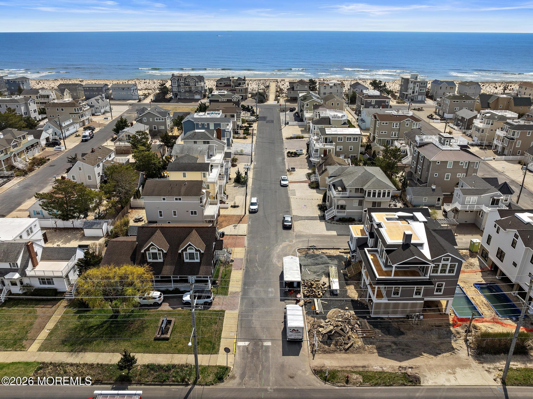 Located just steps from both the ocean and bay in the heart of Brant Beach, this stunning new construction offers the perfect blend of luxury, location, and lifestyle. Featuring a reversed living design, this 5-bedroom, 4.5-bath home with additional den (or 6th bedroom) spans approximately 2,961 sq. ft. of thoughtfully designed living space and provides views of both the ocean and bay. The top-floor great room is designed to impress with soaring 12' ceilings, abundant natural light, and an open-concept layout ideal for entertaining. High-end finishes include wide plank engineered white oak flooring throughout, an extra-wide staircase, and a sleek 48'' linear gas fireplace. For additional convenience a 3 stop elevator from the garage to the upper living level. The exterior is equally well-appointed, featuring low-maintenance cedar impression vinyl siding, a paver driveway and patio, and a heated 12' x 26' saltwater pool--perfect for relaxing after a day at the beach. The fenced rear yard offers privacy along with covered outdoor living space and an outdoor shower, ideal for coastal living. Additional highlights include a rare 3-car garage with ample off-street parking, making this home as practical as it is beautiful and panoramic ocean and bayviews from the rooftop deck! An exceptional opportunity to own a brand-new home in one of Long Beach Island's most desirable oceanblock locations--just moments to the sand, surf, and LBI sunsets.