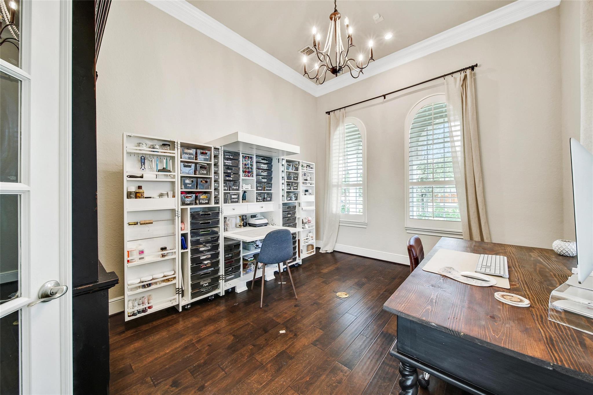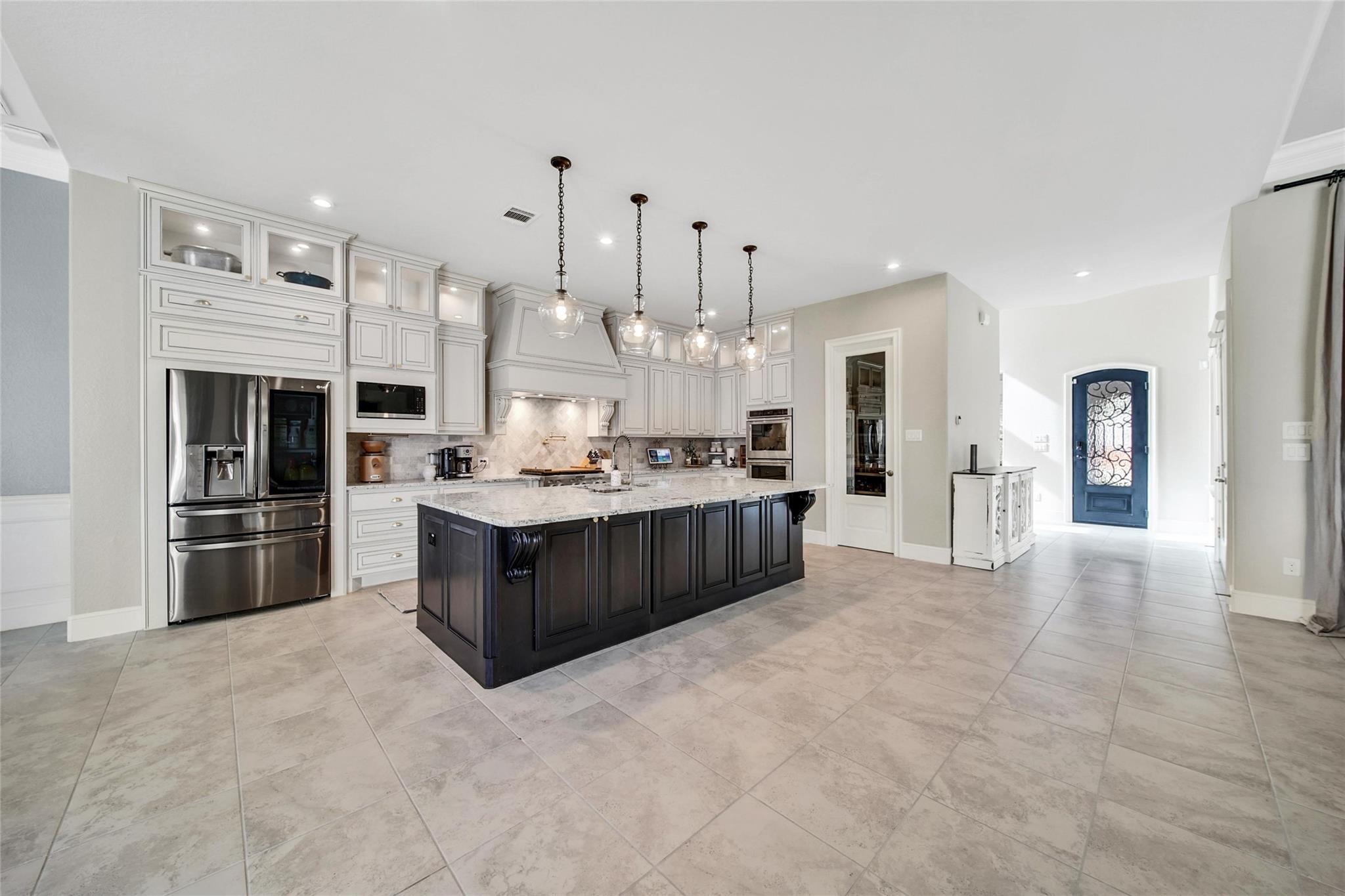 Experience modern luxury in this thoughtfully designed Toll Brother "Vanguard" Plan located on a premium cul-de-sac lot in the Master Planned North Grove Community. Versatile layout with 5 bedrooms & 4.5 baths. Incredible outdoor living spaces complete with saltwater pool, outdoor dining areas, interior courtyard with fireplace, second floor patio, sideyards, and front porch. A covered entry opens to a two-story foyer leading to a well-appointed kitchen with a center island and a walk-in pantry, a well-lit great room with fireplace and sliding wall access to the covered patio. Desirable first-floor primary bedroom that includes a sitting area, tray ceiling, enormous walk-in closet, and a lavish primary bath. First floor also includes a secluded, private office with a double-door entry and half bath, secondary bedroom with ensuite full bath, and detached au-pair bedroom with private access, kitchenette and full bath. Two more bedrooms each with its own bath, gameroom, and media room up!