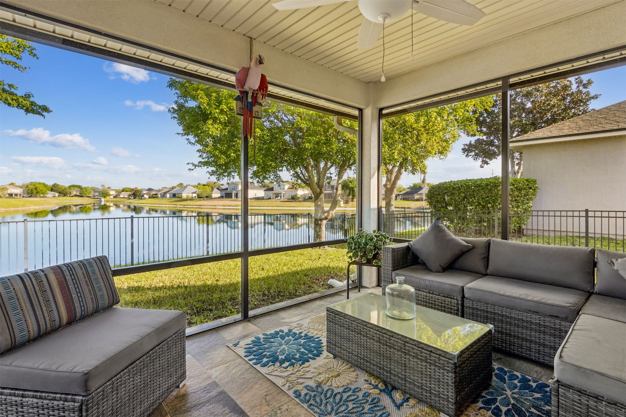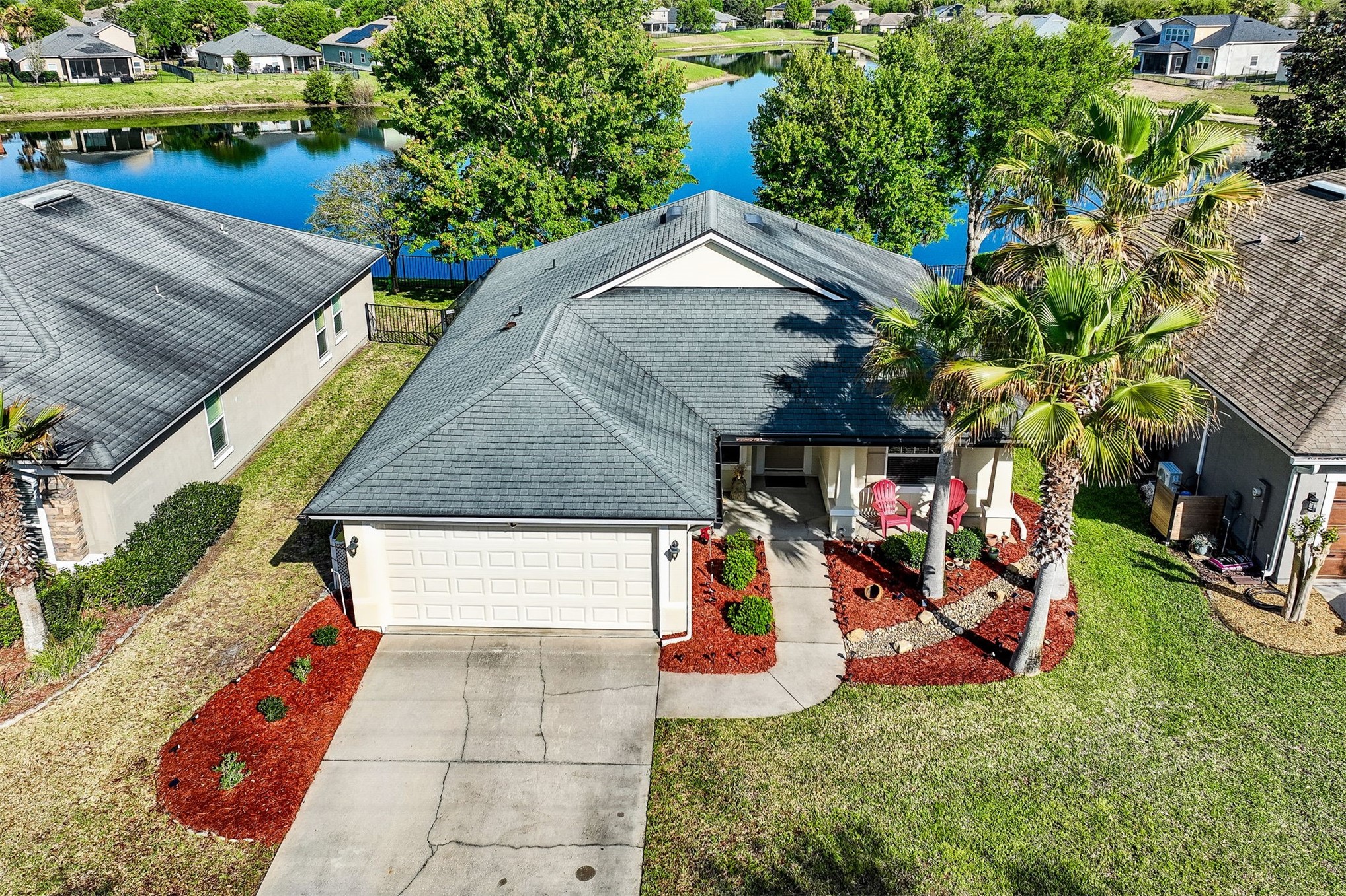 Welcome to this beautifully updated 3 bedroom, 2 bath home with a dedicated home office, thoughtfully designed with an open, split floor plan that lives larger than expected. This move-in ready home features hardwood flooring, new carpet, quartz countertops, and brand new stainless steel appliances, all coming together with clean, modern finishes throughout. The 2 garage offers built in cabinetry for added storage & organization. The screened lanai overlooks the pond, offering one of the most expansive water views in the community. If you are searching for a home with a water view, outdoor living space, and privacy, this one delivers. Residents enjoy resort style amenities including a community pool, splash pad, fitness center, tennis courts, basketball court, soccer field and park, providing a true lifestyle experience within the neighborhood. Conveniently located just minutes from Jacksonville International Airport and a short drive to the beaches of Amelia Island.