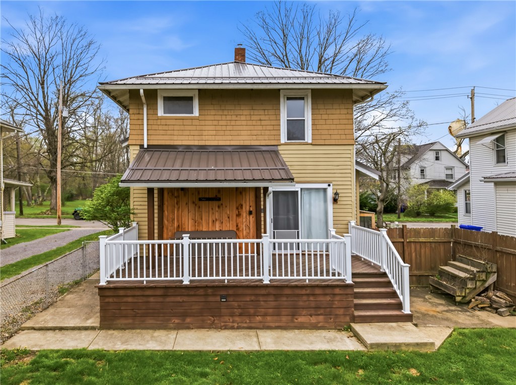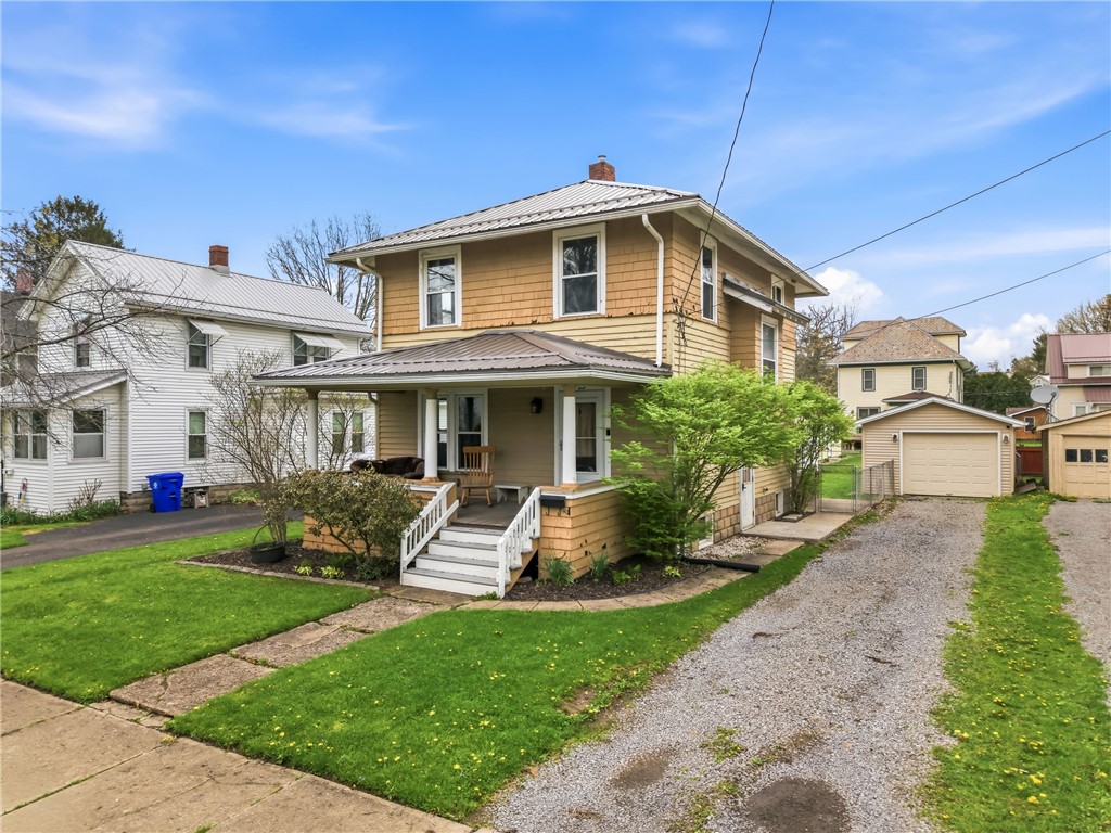 Front and rear porches, detached 1 car garage, metal roof, oak kitchen.