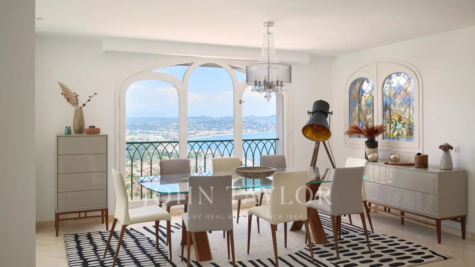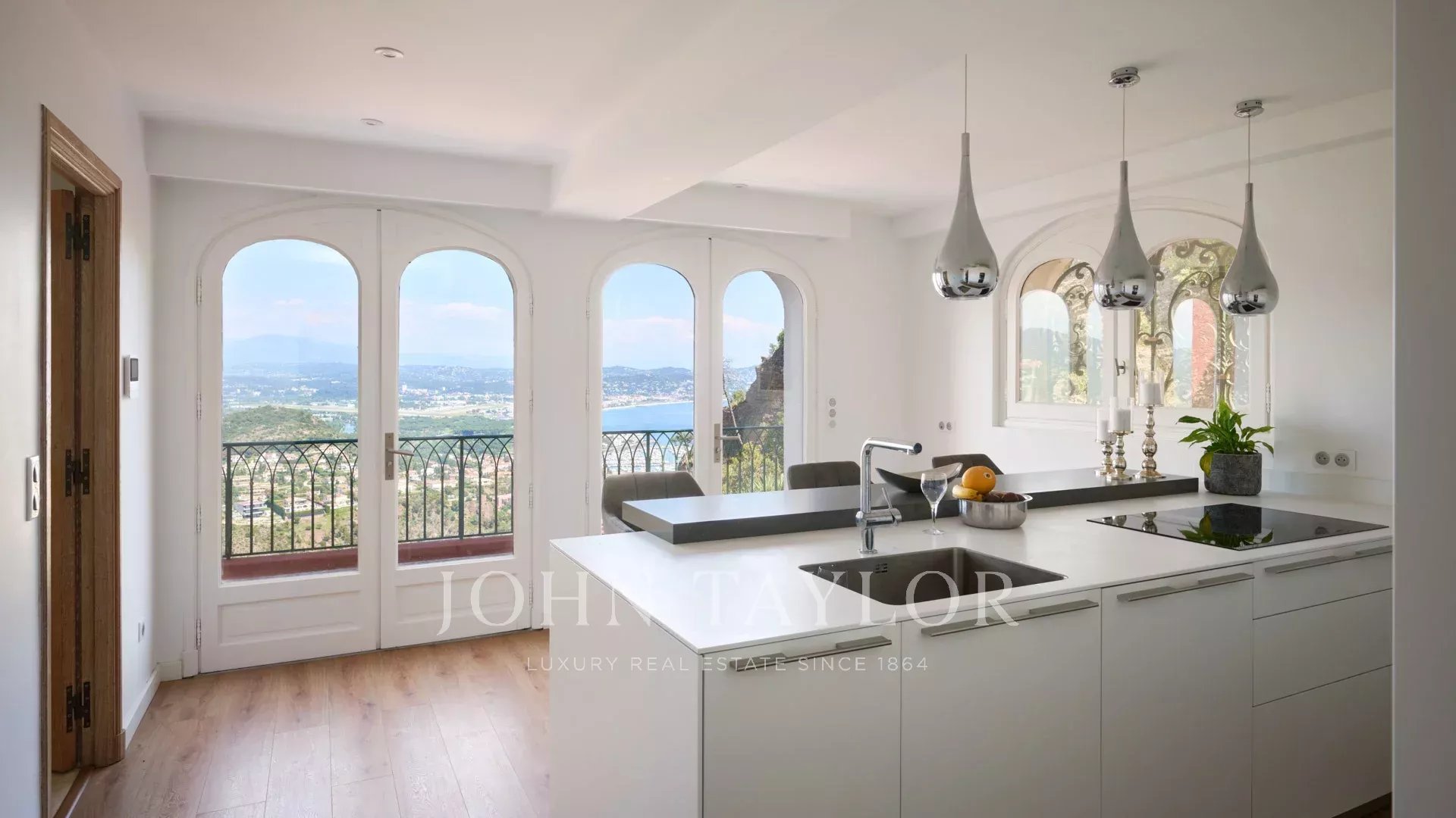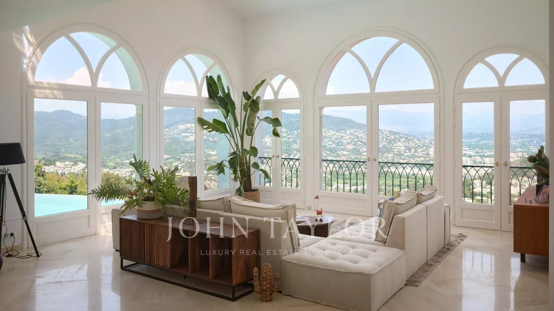 Splendid architect-designed villa set in a dominant position on a listed site, 5 minutes from the village and 15 minutes from Cannes, offering panoramic views of the sea and Cannes hinterland. With approx. 407 sqm of living space, set in 2080 sqm of wooded plot, the villa comprises : - A spacious living room opening onto the terrace and pool;- A dining room ;- A kitchen ;- Laundry room;- Four en-suite bedrooms;- An office ; - A game room.Additional features include a magnificent swimming pool, a summer kitchen and a two-car garage.