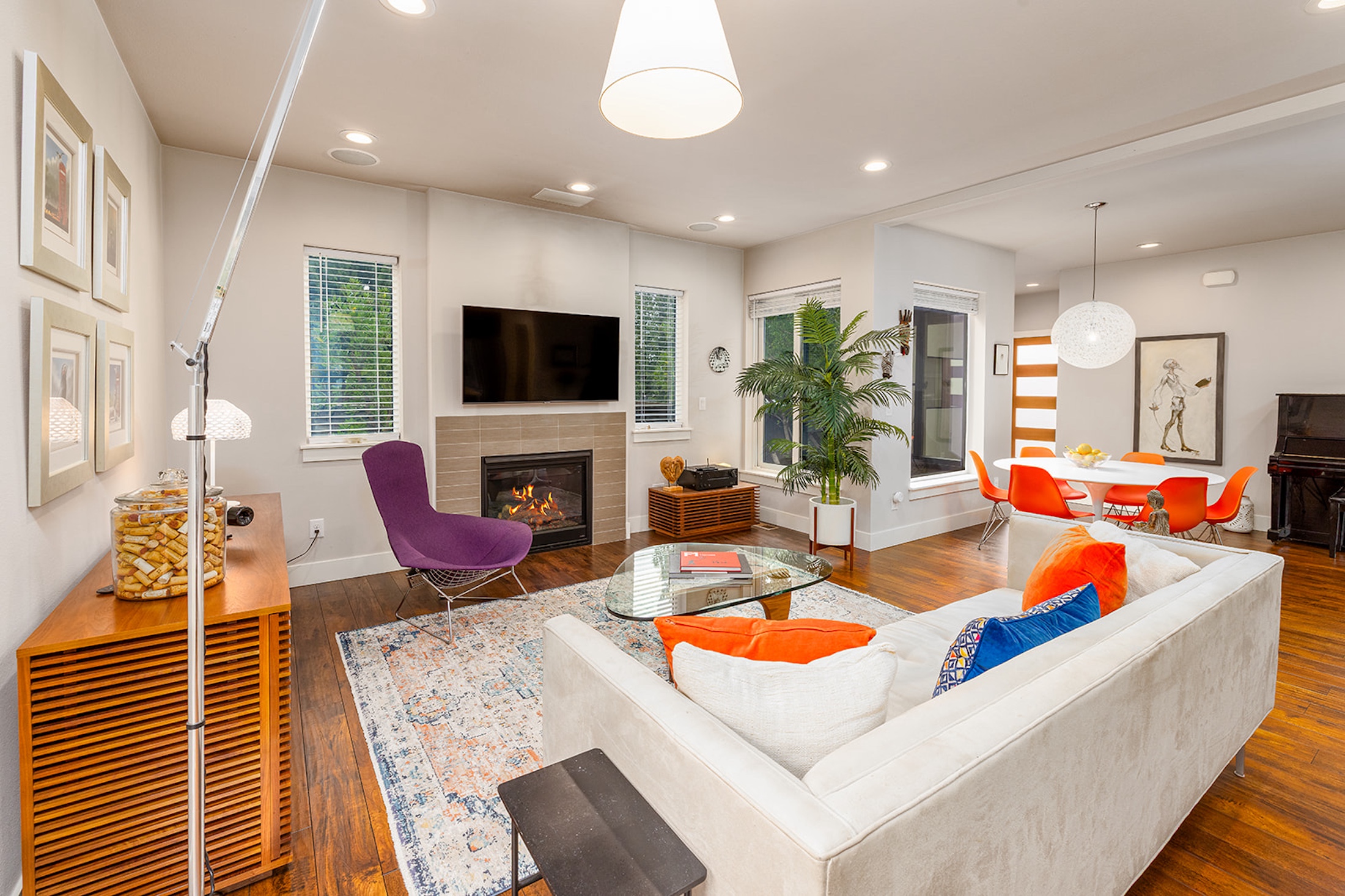Stunning modern home that blends clean design with comfortable, efficient living. Thoughtfully laid out, it offers 3 bedrooms plus an upstairs loft and office nook, giving you the flexibility to work from home, host guests, or create a space that fits your lifestyle. The main level is both functional and inviting, centered around a well-designed kitchen featuring pull-down shelving, double drawers, and a generous walk-in pantry. It opens seamlessly to the living and dining areas, where large windows bring in plenty of natural light and create a warm, easygoing atmosphere for both everyday living and entertaining. A cozy gas fireplace keeps things comfortable in the winter, while A/C ensures you stay cool through the summer months. Step outside to a private patio and garden space; perfect for relaxing evenings, casual get-togethers, or a quiet morning coffee. Located just 20 minutes from Seattle–Tacoma International Airport, you’ll enjoy a convenient commute without sacrificing a sense of retreat. Nearby parks, along with favorites like Trader Joe’s, local shops, and dining, make everyday living simple and enjoyable. Modern, functional, and easy to live in, this home is ready to welcome you.