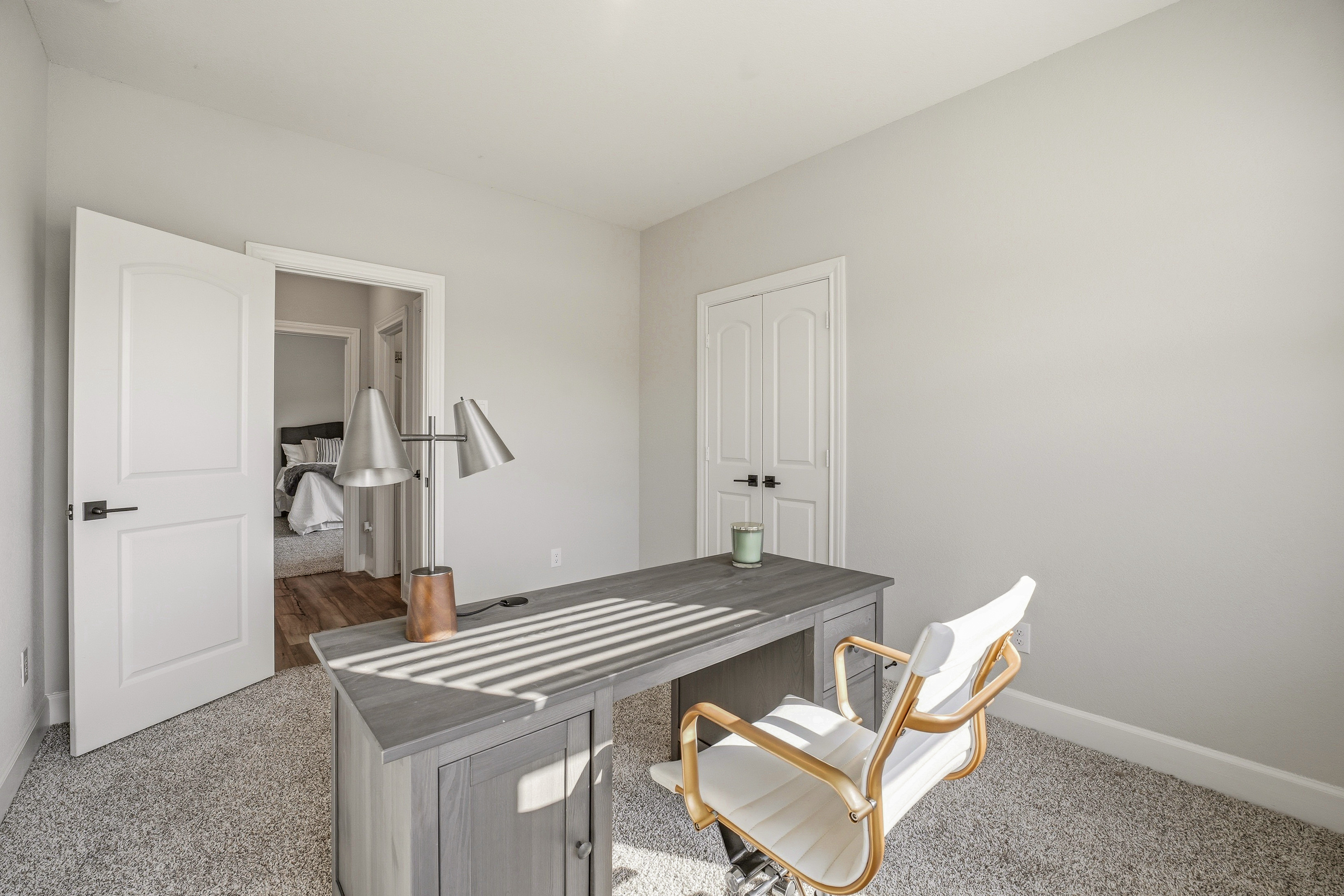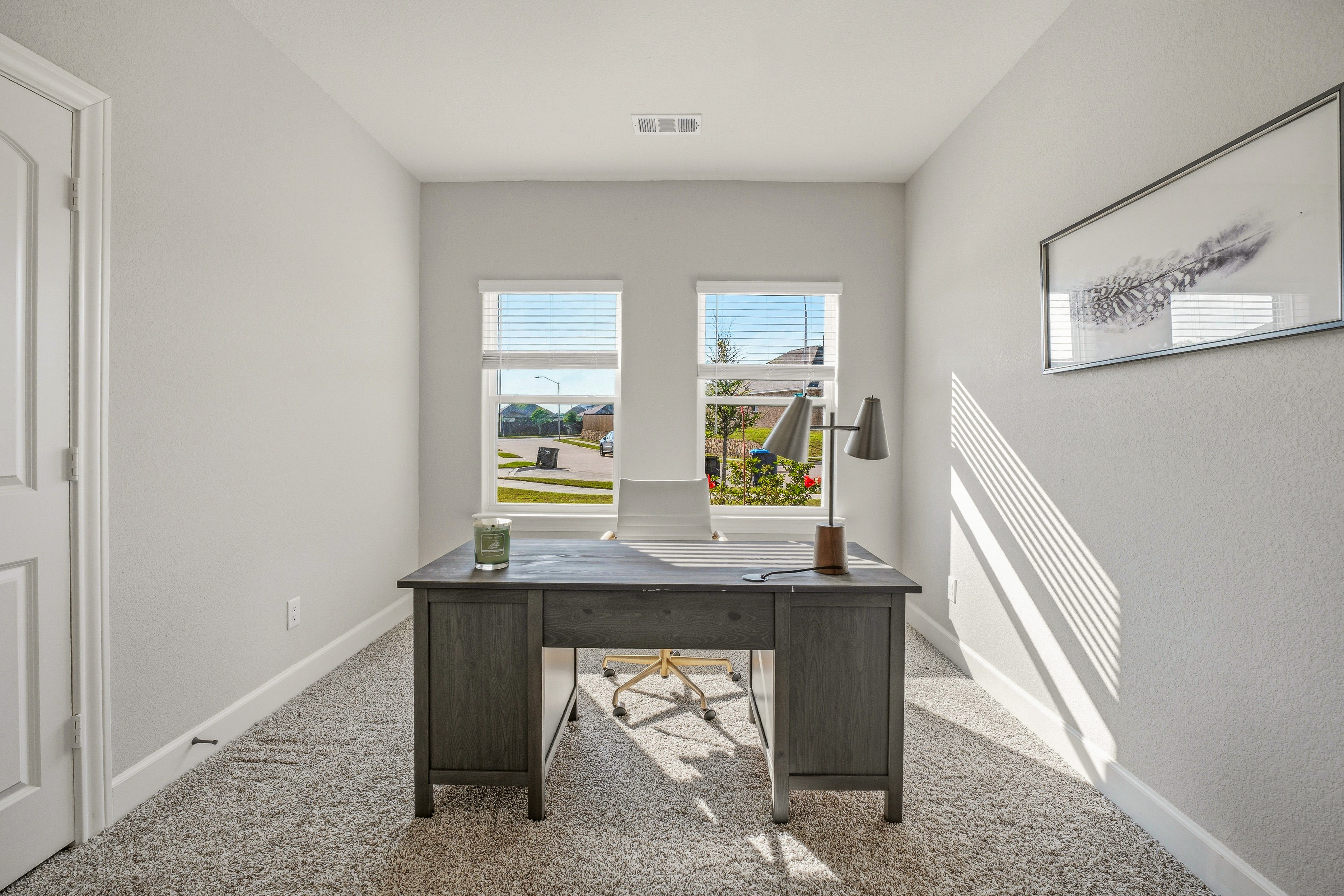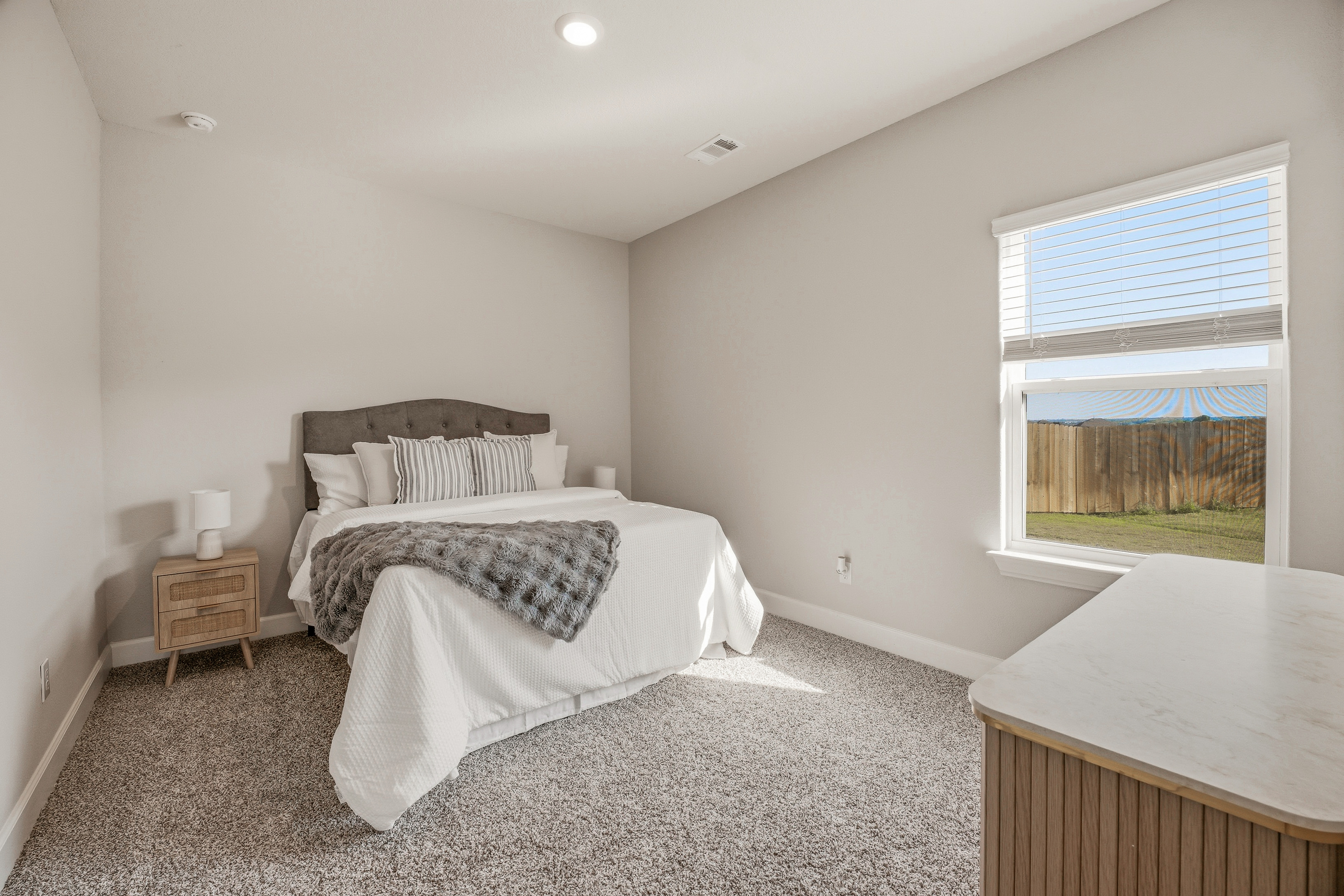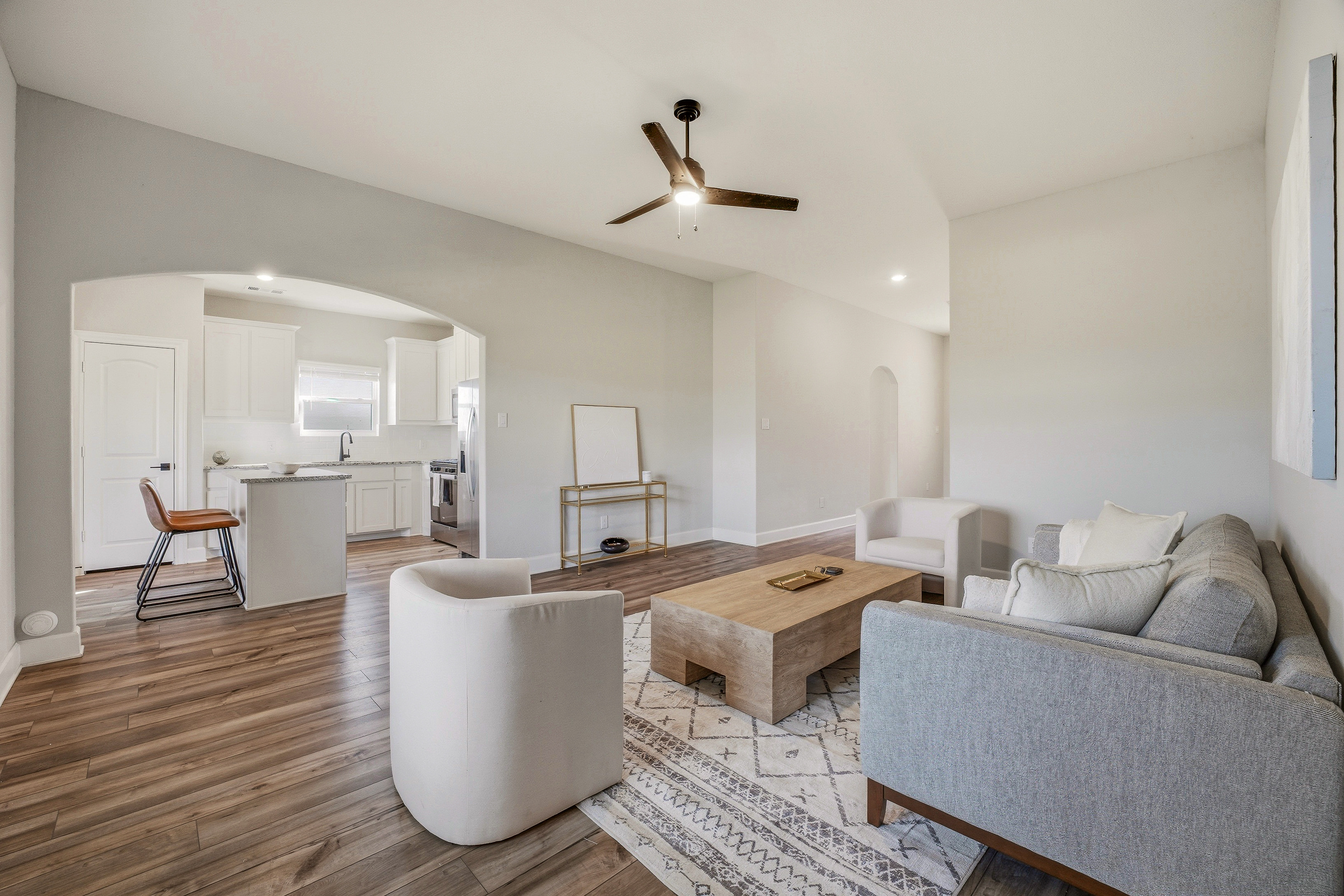 Built in 2023 and truly better than new, this beautifully maintained home offers thoughtful upgrades, energy efficiency, and one of the best lots in the neighborhood. Located on a rare oversized lot within a quiet half cul de sac, this home backs to green space with no direct rear neighbors and features a much larger yard than most nearby homes, creating privacy and room to enjoy outdoor living. A major standout is the fully paid solar panel system, to be paid off at closing, providing extremely low electric bills even during peak summer months. A Tesla charger is already installed in the garage for added convenience. Unlike nearby new construction, this home is completely move in ready with blinds on every window, upgraded ceiling fans throughout, fenced backyard, and no construction noise or traffic. Inside, natural light fills the home, complemented by high ceilings, quality carpet, luxury vinyl plank flooring, and an open concept layout. The kitchen features granite countertops, a large island, abundant cabinetry, and tons of storage. The oversized dining area and spacious living room make entertaining easy while still feeling warm and functional. The private primary suite includes a large walk in closet and upgraded stand up shower. Covered front and back patios provide great outdoor living space, while the oversized fenced backyard offers plenty of room for pets, play, or future plans. Located in one of the best parts of the neighborhood, you can walk to the community pool, parks, and amenities while enjoying quick access to major highways, shopping, dining, and Lockheed Martin. Lightly lived in by the original owner and exceptionally well maintained, this home offers more value, privacy, and savings than nearby new construction.