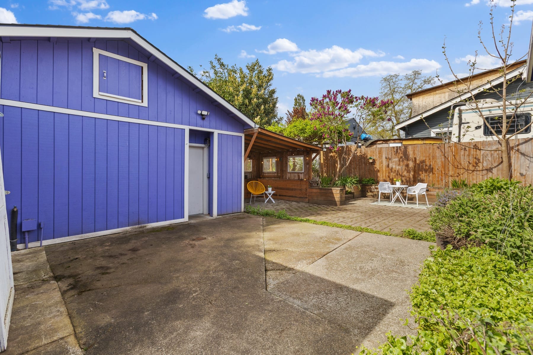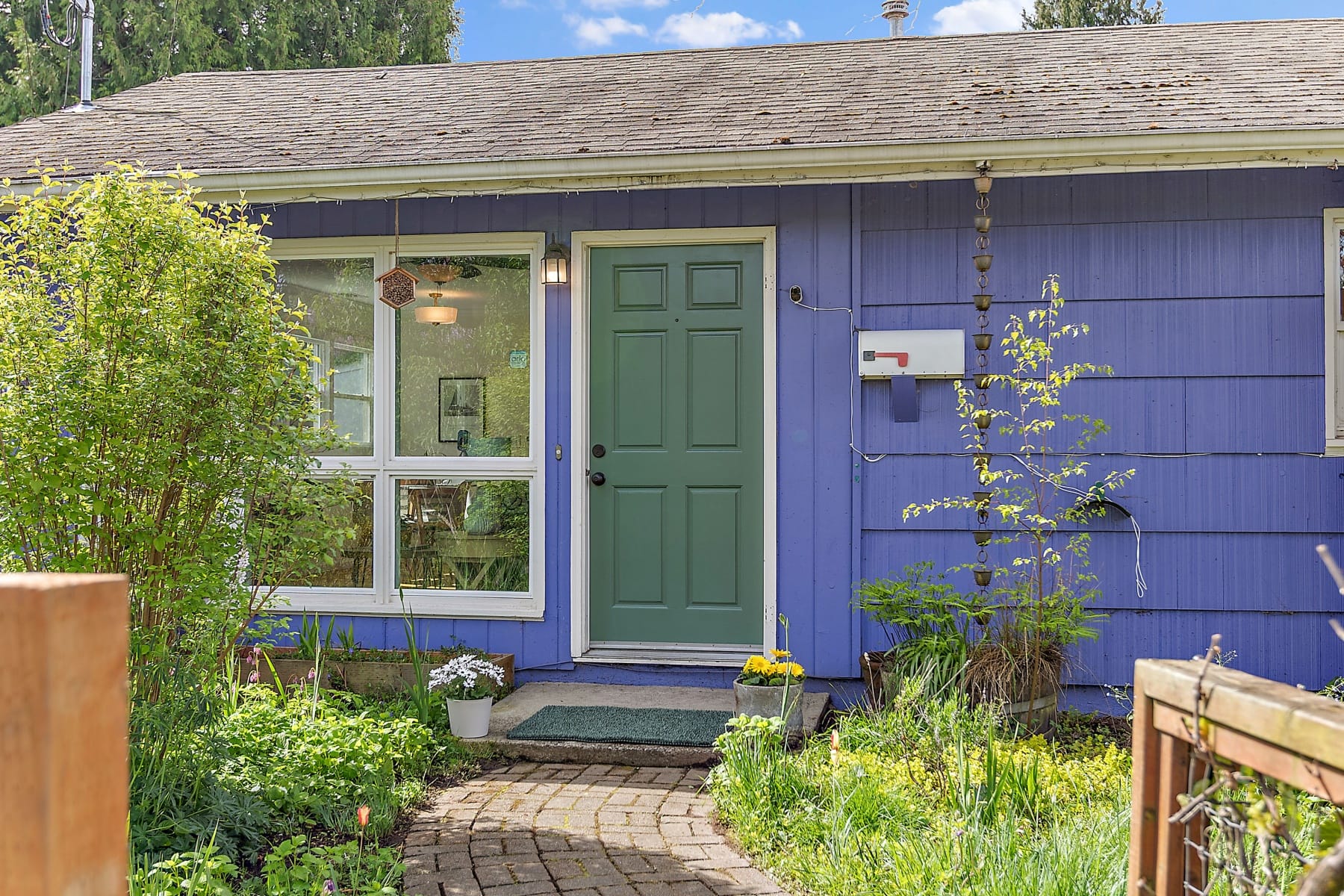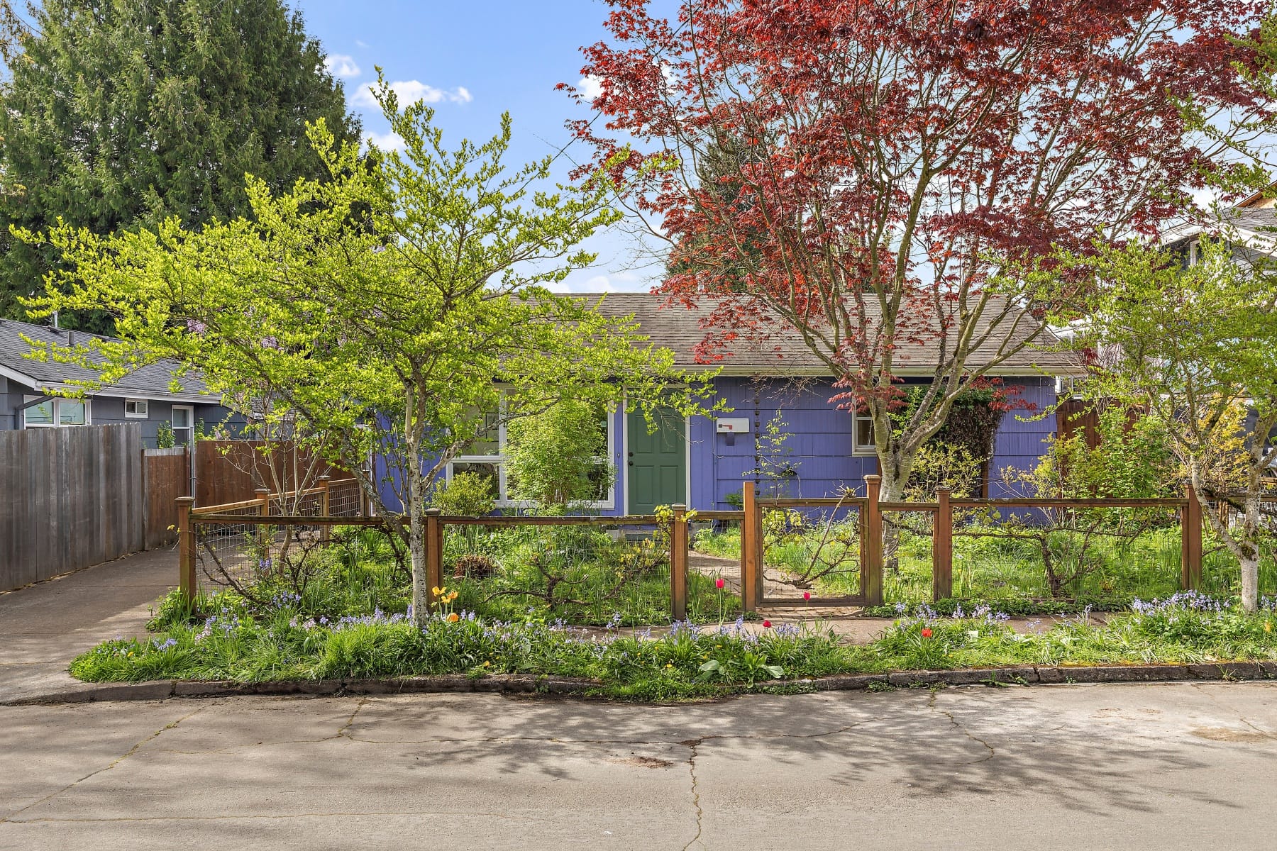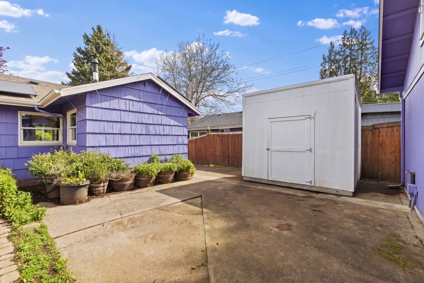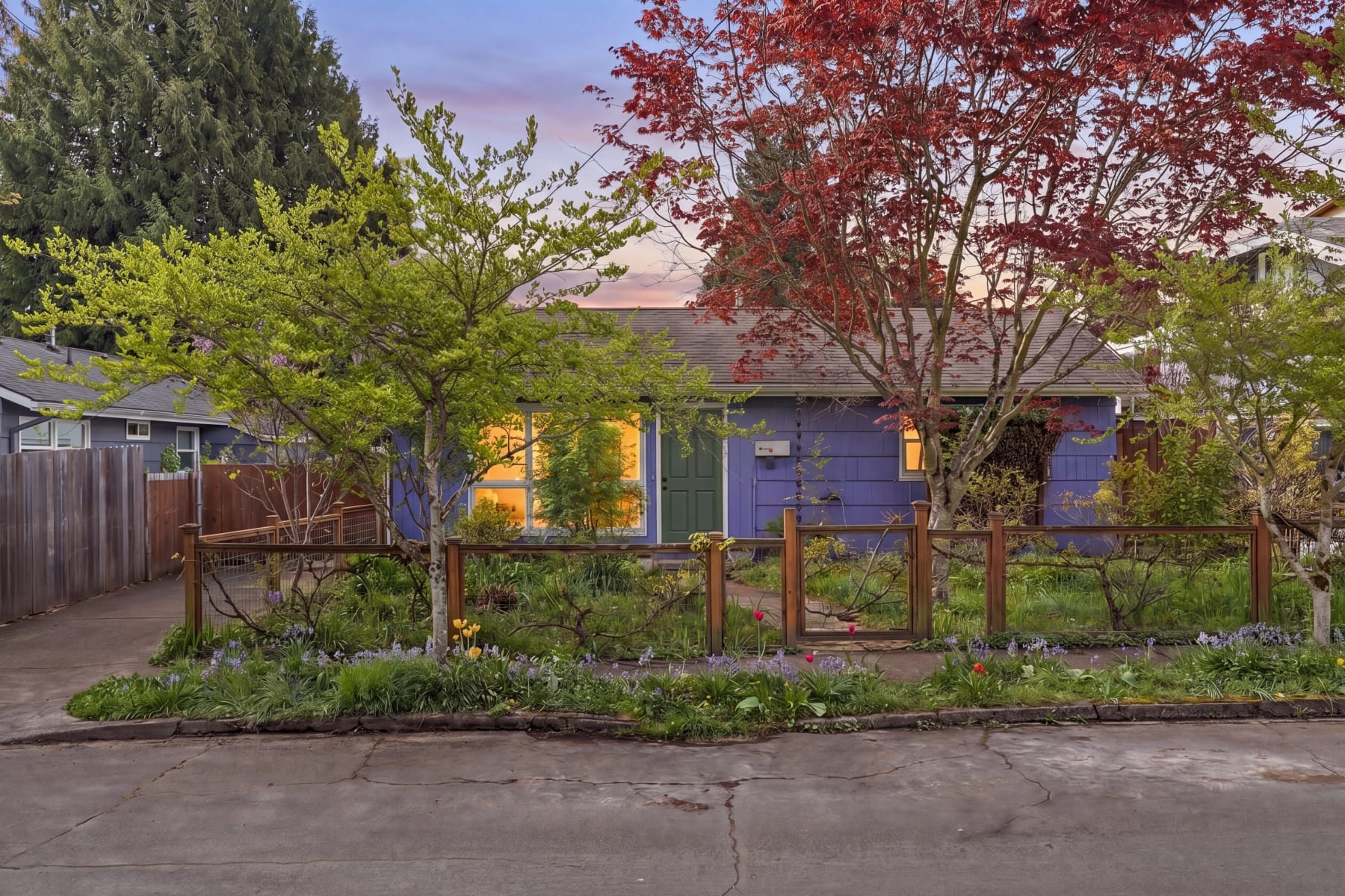 Finding the home that fits your dreams takes a bit of magic. This one's been quietly waiting, tucked in one of North Portland's beloved historical neighborhoods. Conjured, lavender-hued and garden-wrapped, an evergreen door waits at the end of a gate-framed path, eager to welcome you. This cottagecore midcentury home is surrounded by well-established, low-tend plantings from blueberry bushes, to fruit-bearing kiwi & grape vines. This kind of garden doesn't ask much of you, just your presence, a morning coffee, & your willingness to pick when ripened. Built in the 1950s & updated w/the care & intention of an artist, this midcentury dream features hardwood floors throughout, freshly painted interiors, & updated kitchen built to invoke all the bounty the gardens have to offer. Modern comforts align w/nature in this 10/10 HES home featuring tankless water heater (offering ample shower capacity ' unlimited & guilt-free), while a 3-yr-old furnace warms your winters, & solar panels deliver savings in summer (even when running the AC). With 200-amps, full home re-insulation, & EV charger at the driveway gate, this house is prepped for a life in harmony. Relaxing in the secluded & lush backyard enchants, w/ a ground-level brick patio, elevated lawn for lounging, covered patio area, & raised beds, ready for tomatoes, herbs, & other cultivations to take root. Plus, a new storage shed to keep it all tidy. Inspired? Let whimsy lead you to the professional onsite studio where a soundproof creative space awaits. Ideal to cast your creative fortunes in: a recording studio, podcast booth, film/video production, dance or art studio, or home theater. Just outside the studio ' a climbing wall lures you to expel the days' tensions.The highly walkable neighborhood includes Pier & Chimney parks, Saturday farmers' market, & an actual corner store (& 4 other major grocers) all in easy reach. It's a cozy cottage built for making magic, for creating, growing, & exploring ' & it's calling you. Home Energy Score = 10. HES Report at https://rpt.greenbuildingregistry.com/hes/OR10247613