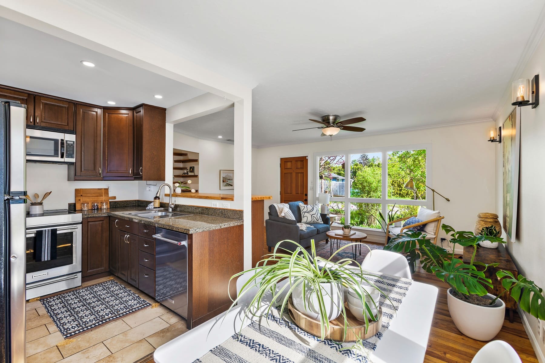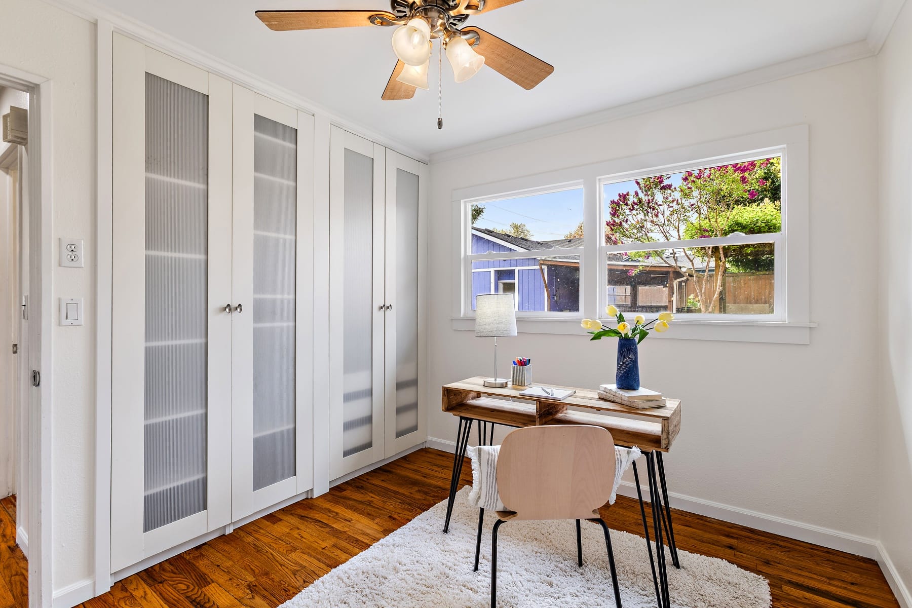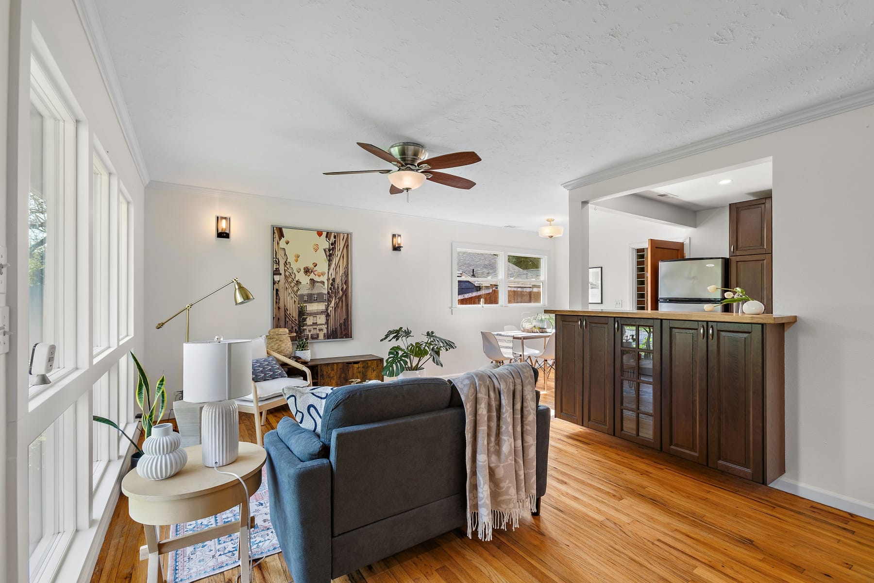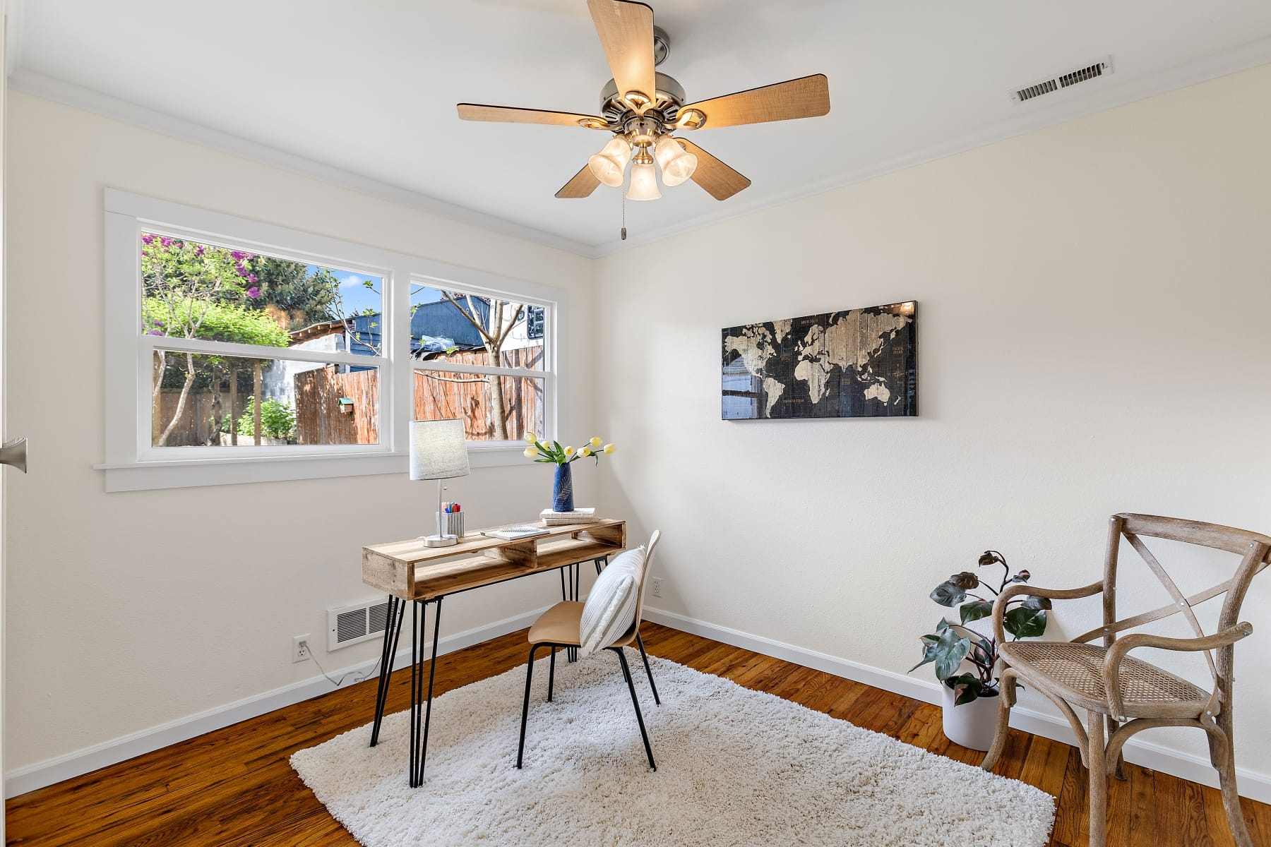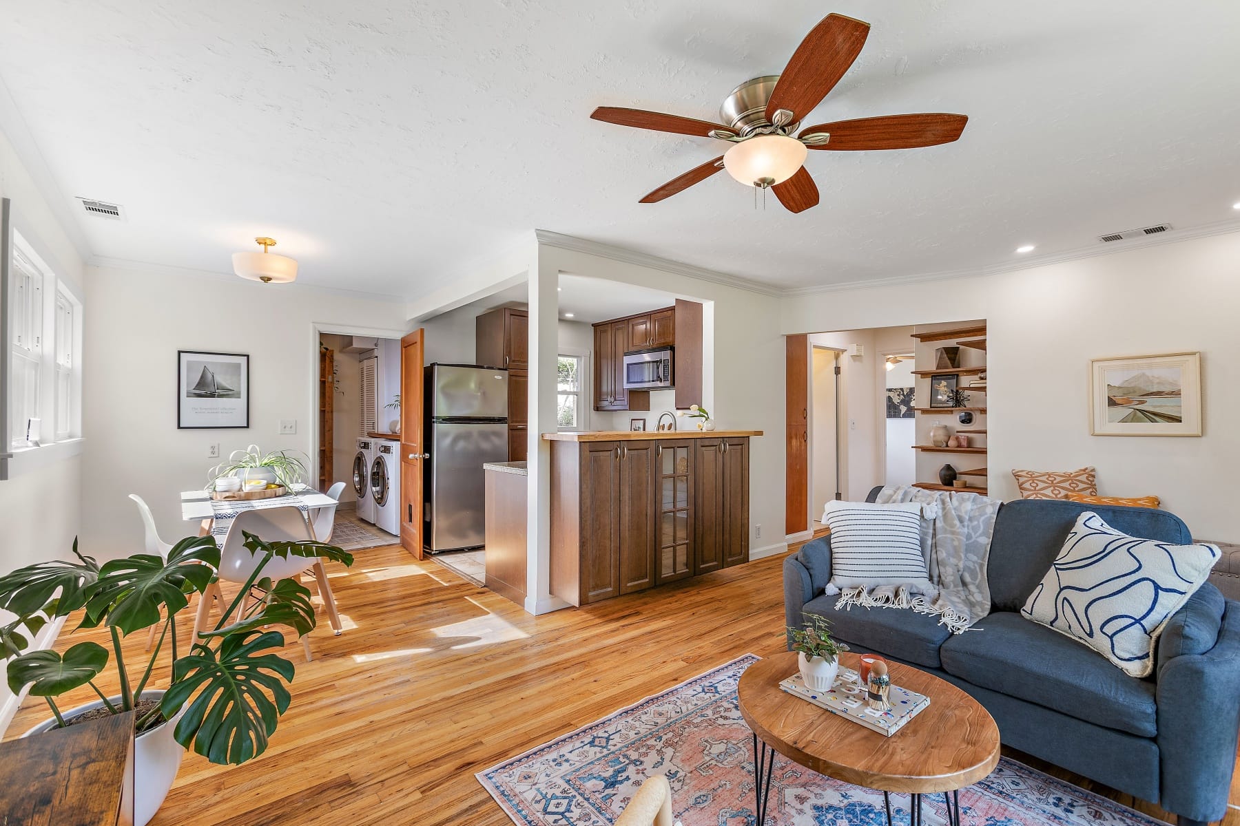 Finding the home that fits your dreams takes a bit of magic. This one's been quietly waiting, tucked in one of North Portland's beloved historical neighborhoods. Conjured, lavender-hued and garden-wrapped, an evergreen door waits at the end of a gate-framed path, eager to welcome you. This cottagecore midcentury home is surrounded by well-established, low-tend plantings from blueberry bushes, to fruit-bearing kiwi & grape vines. This kind of garden doesn't ask much of you, just your presence, a morning coffee, & your willingness to pick when ripened. Built in the 1950s & updated w/the care & intention of an artist, this midcentury dream features hardwood floors throughout, freshly painted interiors, & updated kitchen built to invoke all the bounty the gardens have to offer. Modern comforts align w/nature in this 10/10 HES home featuring tankless water heater (offering ample shower capacity ' unlimited & guilt-free), while a 3-yr-old furnace warms your winters, & solar panels deliver savings in summer (even when running the AC). With 200-amps, full home re-insulation, & EV charger at the driveway gate, this house is prepped for a life in harmony. Relaxing in the secluded & lush backyard enchants, w/ a ground-level brick patio, elevated lawn for lounging, covered patio area, & raised beds, ready for tomatoes, herbs, & other cultivations to take root. Plus, a new storage shed to keep it all tidy. Inspired? Let whimsy lead you to the professional onsite studio where a soundproof creative space awaits. Ideal to cast your creative fortunes in: a recording studio, podcast booth, film/video production, dance or art studio, or home theater. Just outside the studio ' a climbing wall lures you to expel the days' tensions.The highly walkable neighborhood includes Pier & Chimney parks, Saturday farmers' market, & an actual corner store (& 4 other major grocers) all in easy reach. It's a cozy cottage built for making magic, for creating, growing, & exploring ' & it's calling you. Home Energy Score = 10. HES Report at https://rpt.greenbuildingregistry.com/hes/OR10247613