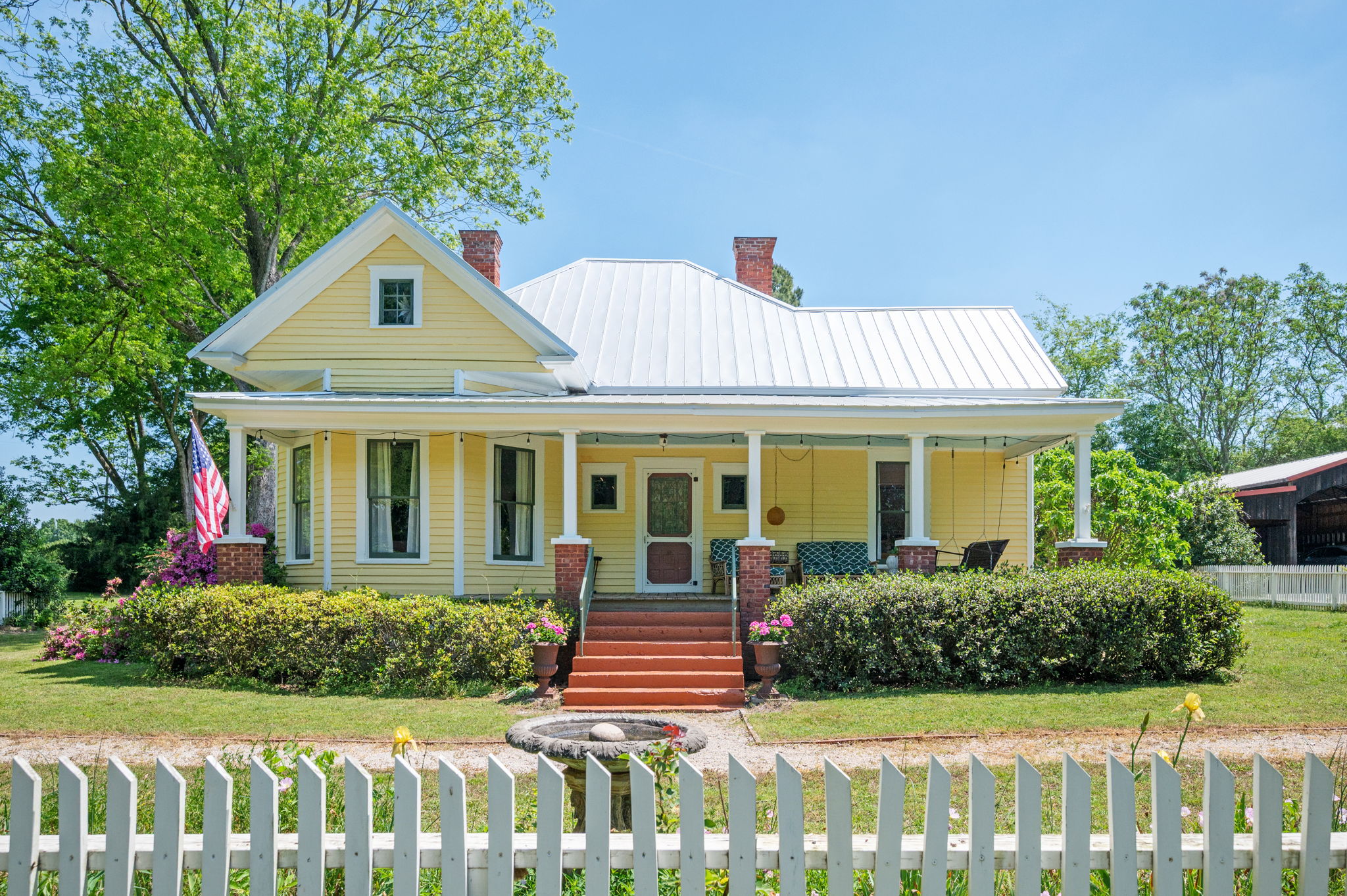 Gracefully set on 4.13+/- exquisitely landscaped acres, the Johnston-Wilson House, circa 1913, is a rare and distinguished offering for the preservation minded buyer who values architectural heritage, privacy, and timeless Southern elegance. Nested in a pecan grove on a quiet road just south of Madison, Georgia, this charming cottage is an extraordinary opportunity to acquire a legacy homestead in one of Georgia’s most sought-after historic areas. Meticulously and thoughtfully restored in 2017, the residence underwent a comprehensive renovation including all-new electrical, plumbing, and HVAC systems, seamlessly blending modern comfort with preserved period character. Constructed entirely of heart pine, the home’s original heart pine floors, walls, and ceilings create a richness and authenticity rarely found today. The 1,500-square-foot center hall cottage offers two bedrooms and one bath, enhanced by soaring 11-foot ceilings and four original fireplaces that lend architectural distinction throughout. The sunroom, anchored by a new wood-burning stove, provides an inviting retreat in every season. The fully renovated kitchen (2023) is a true centerpiece, thoughtfully curated with custom craftsman-fabricated maple countertops, new premium appliances, and an extraordinary restored 1932 Wedgewood range imported from Los Angeles, offering both functionality and historic charm. Throughout the home, the original wood windows have been expertly restored by a noted local craftsman, preserving the residence’s architectural integrity. Outdoors, the property unfolds as a private garden sanctuary with mature specimen landscaping, heritage fruit trees, and a charming grapevine arbor. Expansive front and rear porches invite gracious Southern living, while a large private outdoor shower adds a luxurious, resort-inspired touch. The new tin roof, installed in 2026, further enhances the property’s enduring quality and craftsmanship. For the collector, hobbyist, or lifestyle buyer, the main barn is fully powered, lighted, and plumbed with water, offering ideal space for luxury automobiles, recreational vehicles, workshop use, or an EV charging setup. A second barn provides additional storage and utility space. Further underscoring its significance, the Johnston-Wilson House was featured in a 2023 publication celebrating remarkable historic homes, a testament to its architectural importance and enduring beauty. A rare opportunity to own a published and fully restored historic estate, this exceptional property offers the perfect blend of provenance, luxury updates, privacy, and timeless Southern charm in Madison.