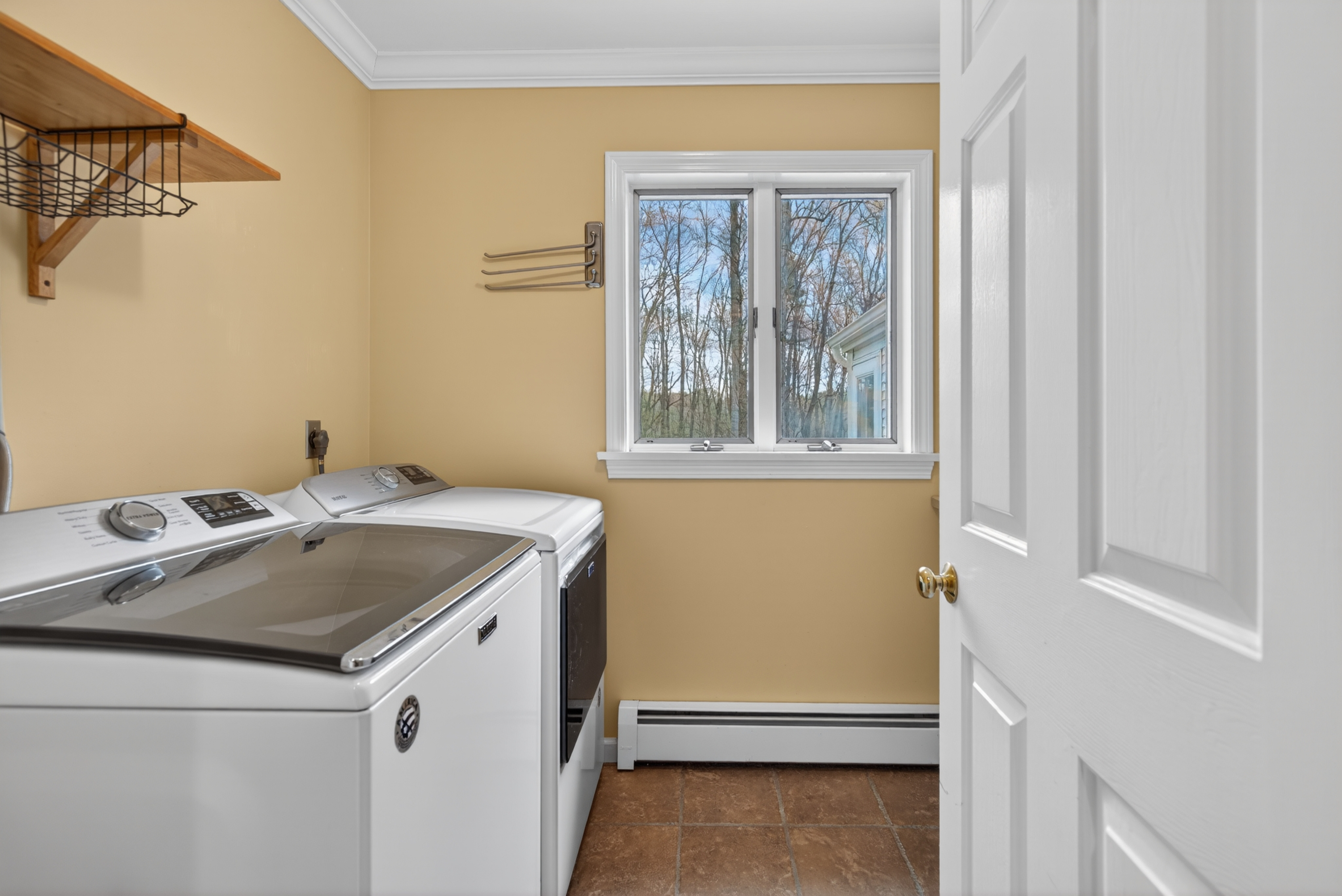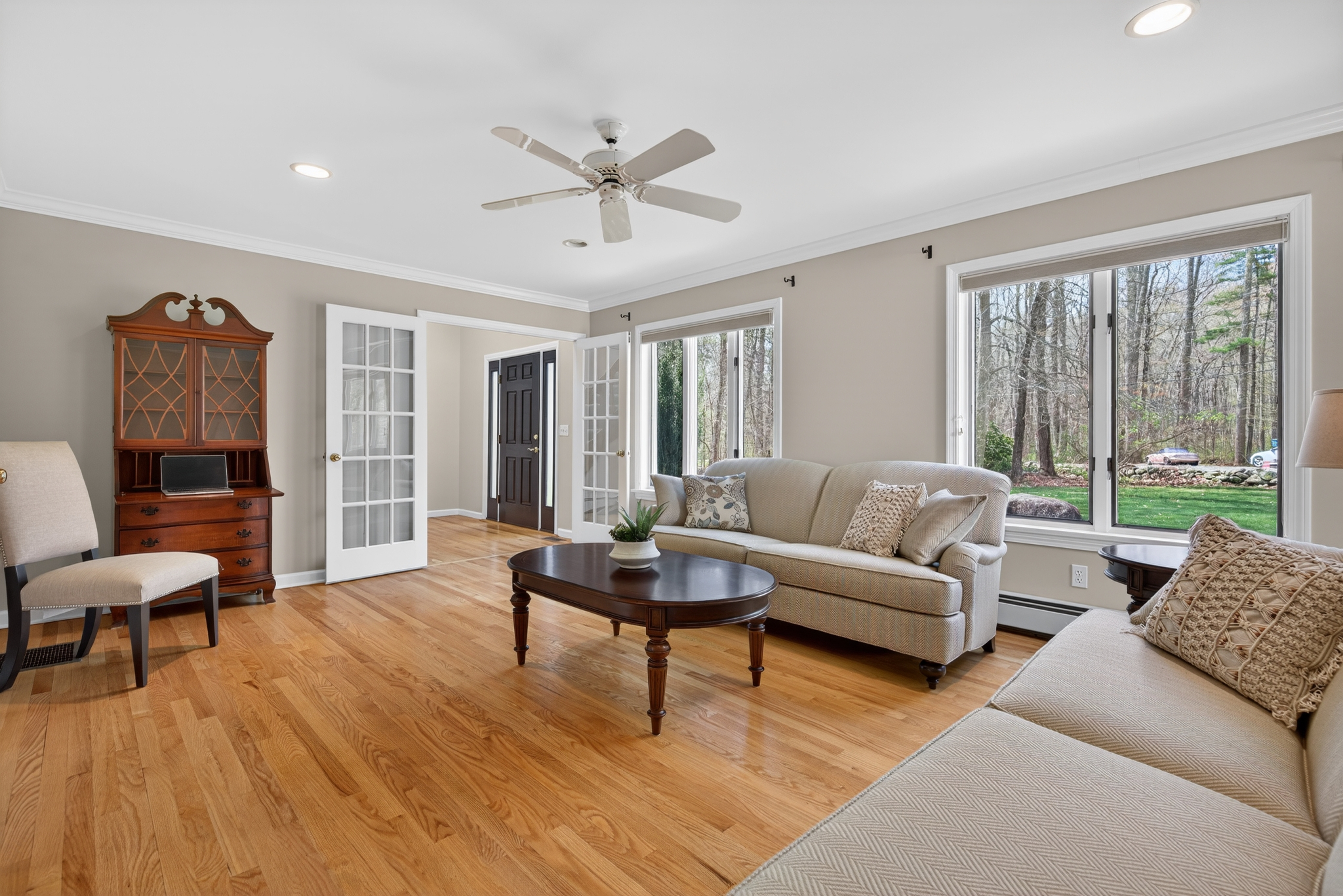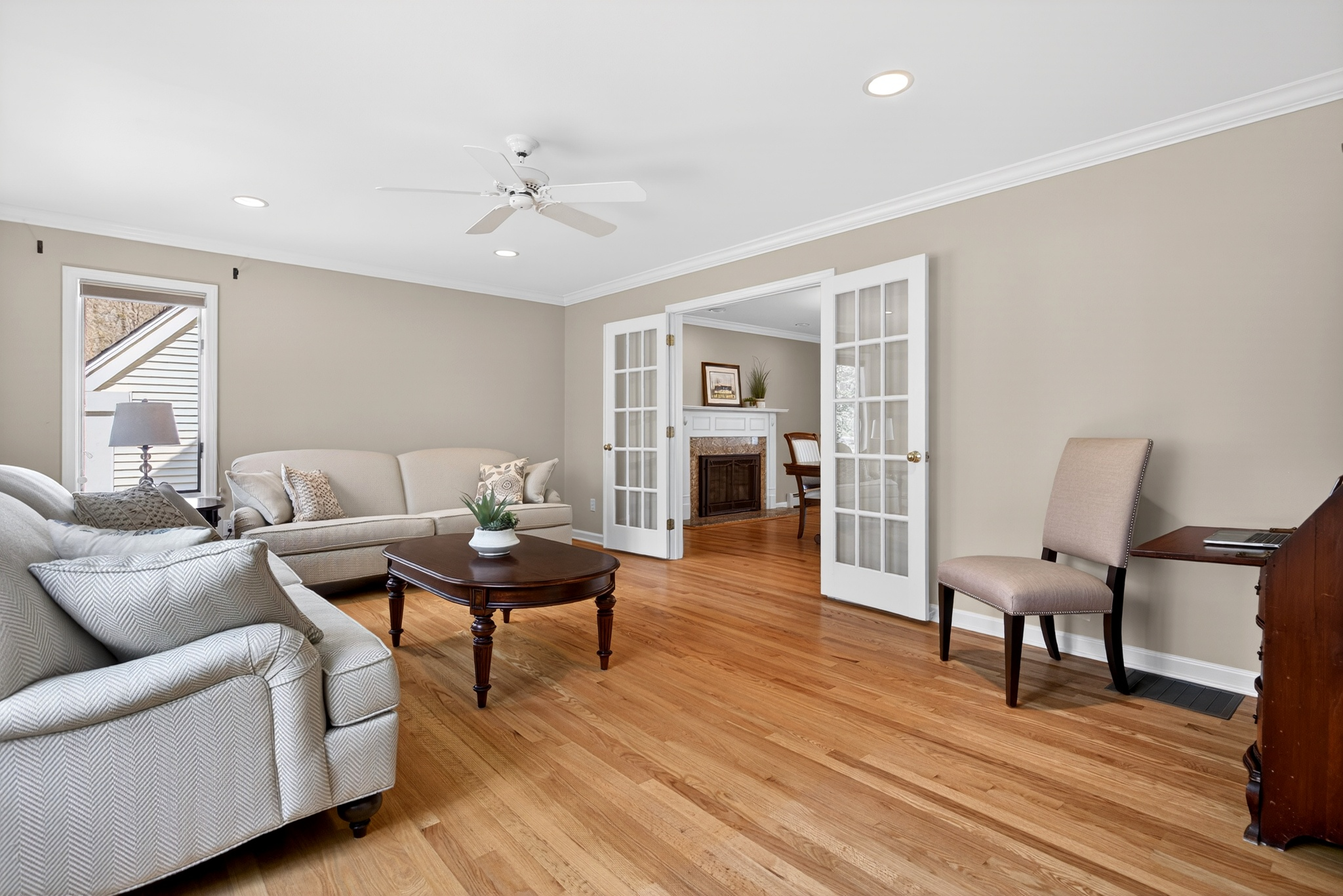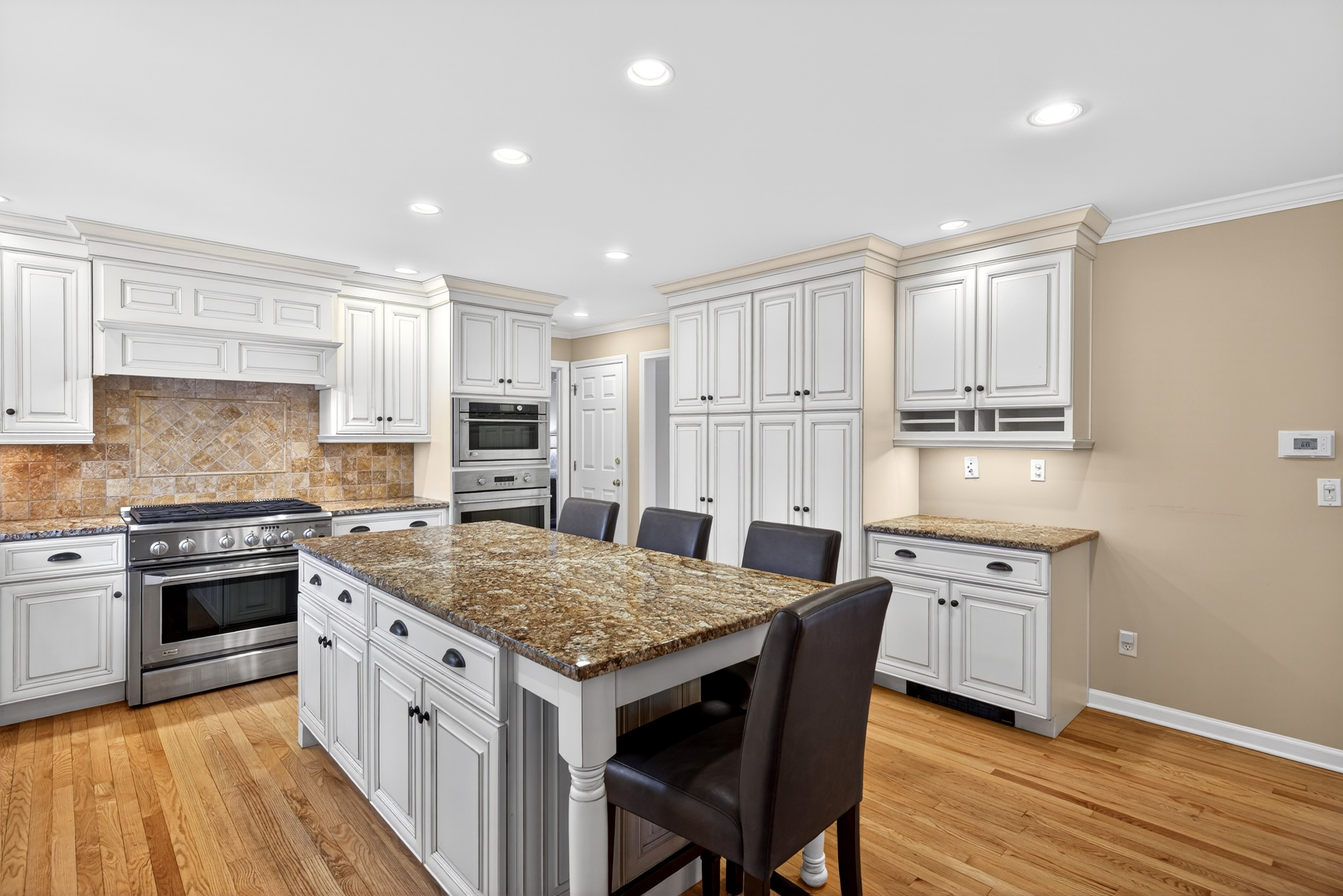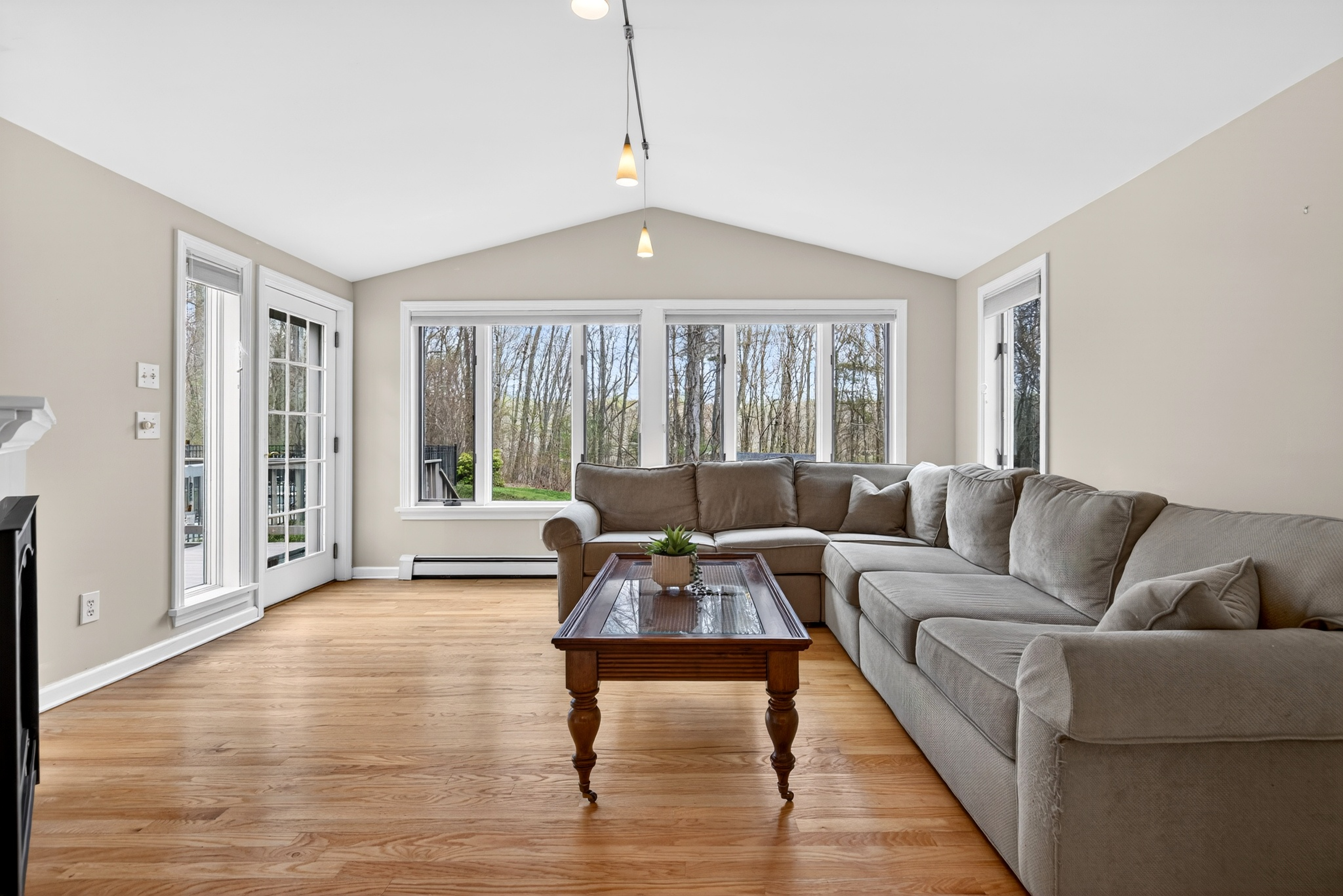 Welcome to a beautiful Cape Cod-Contemporary retreat that perfectly blends modern updates with a comfortable, inviting atmosphere. The heart of this home is the stunning chef's kitchen, featuring a large center island with seating for 4, professional gas cooking, high-end appliances, and an incredible amount of pantry and storage space. It flows naturally into the dining room, where a cozy gas fireplace makes the space perfect for hosting everything from holiday dinners to casual weeknight meals. Relax in the living room or head to the family room to enjoy a second gas fireplace and walls of windows that bring the beauty of the private backyard inside. Walk in from your 2 car garage to a mudroom space complete with half bath and dedicated laundry room. The floor plan is designed for easy living, highlighted by a main-level primary suite complete with two walk-in closets with great organization systems and a spacious bathroom featuring double sinks and a beautifully tiled shower. Upstairs, you'll find two oversized bedrooms, both with their own walk-in closets, and a full guest bath. The finished lower level offers additional living space with a bonus room, private office and half bath. There is an abundance of storage in the lower level and throughout the home. Outside, the large AZEK deck leads to a heated in-ground pool, creating a private summer oasis.