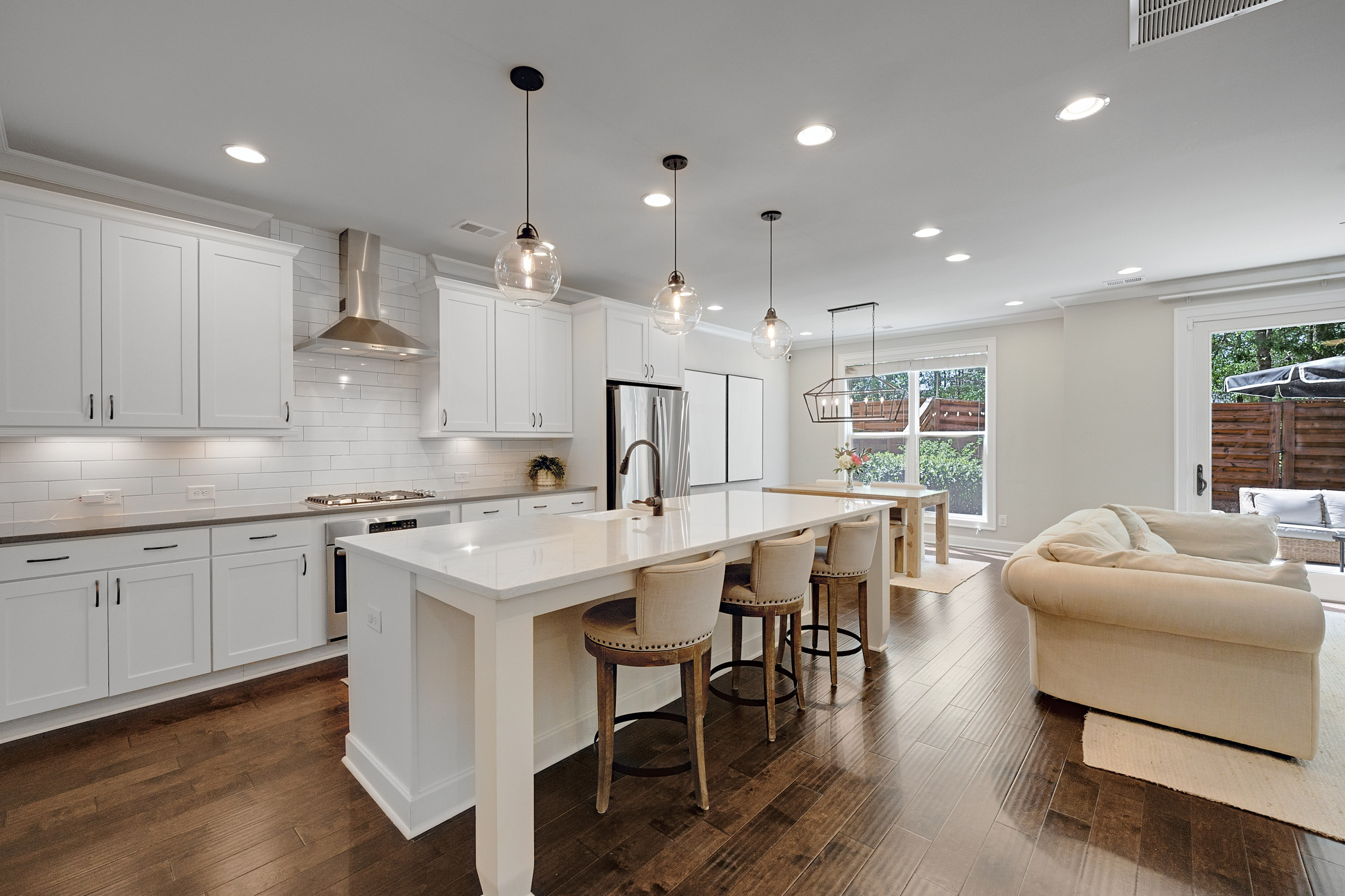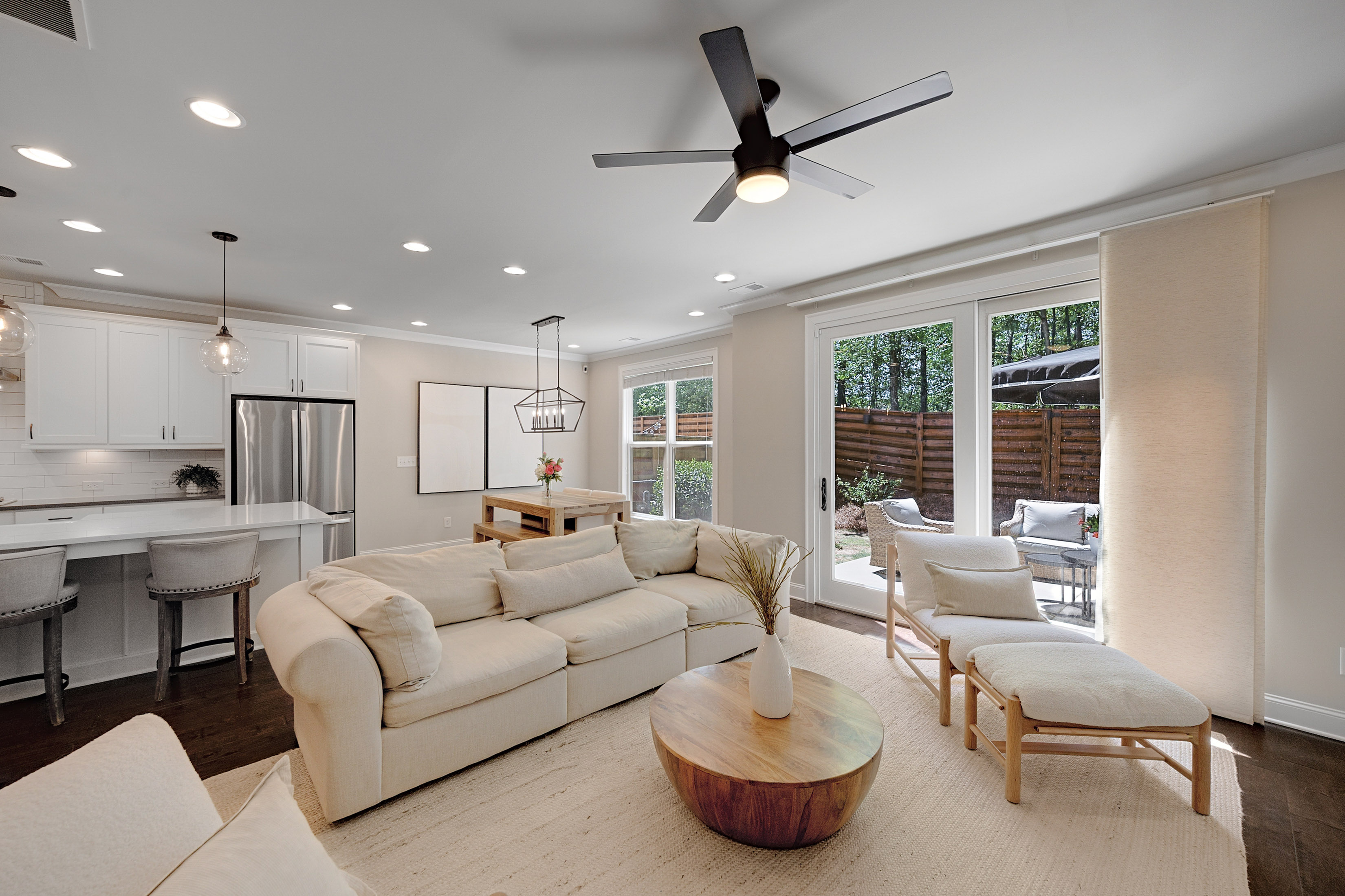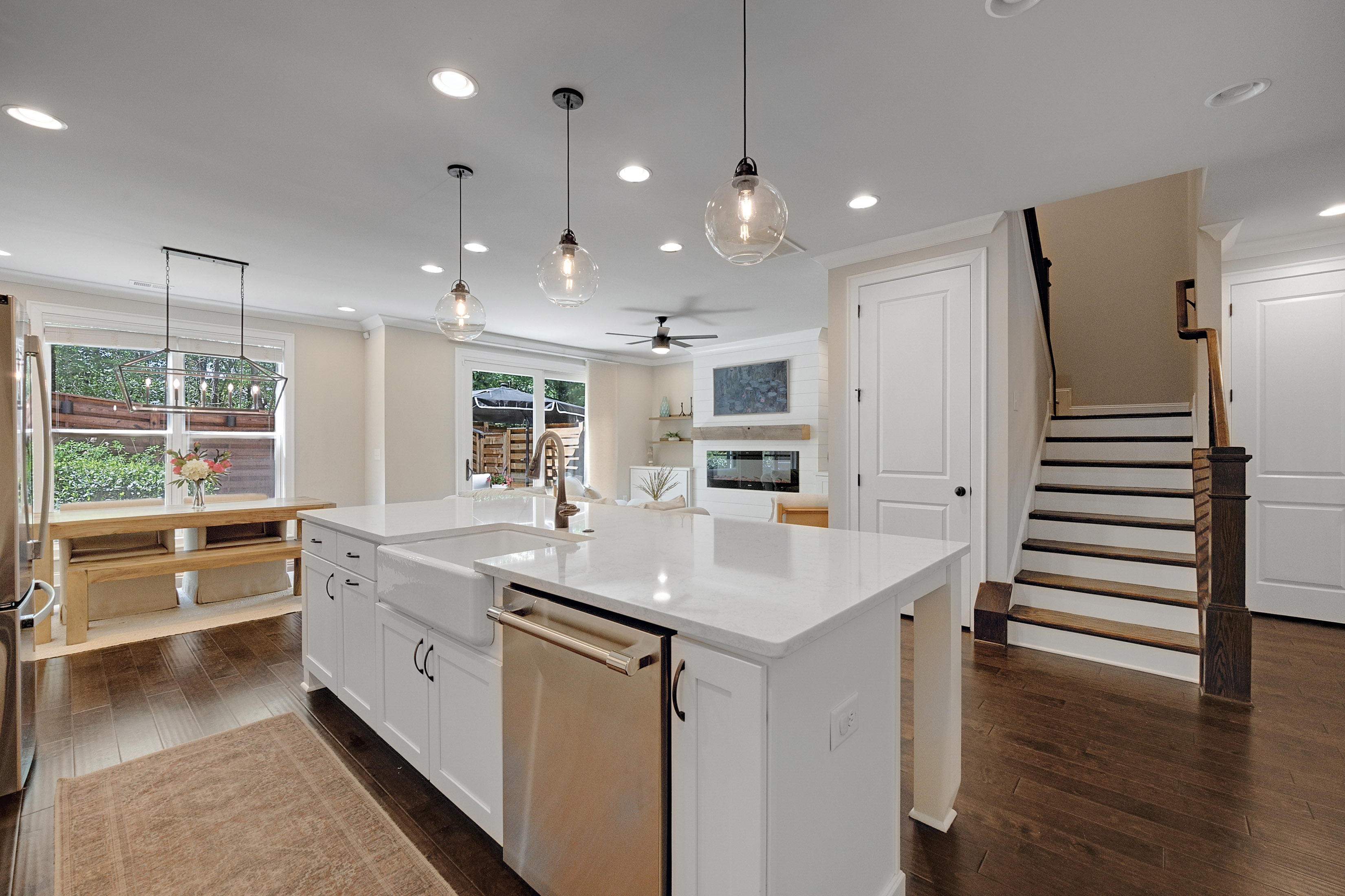 Welcome to Roswell Towneship—an inviting gated community of just 92 thoughtfully designed townhomes, offering a blend of privacy, charm, and convenience in the heart of Roswell. This beautifully appointed two-story townhome features a desirable front-entry garage and a bright, open layout perfect for everyday living and entertaining. The main level showcases elegant eight foot doors, hardwood floors, crown molding, a spacious family room with a cozy fireplace and custom built-ins with drawers, and a sliding glass door to access the outdoor living. The kitchen is a standout, designed with both style and function in mind—complete with a large island featuring a porcelain farmsink, pendant lighting, soft-close cabinetry, a walk-in pantry, gas cooktop, and a sleek stainless chimney hood/vented to the exterior. The kitchen-level garage adds everyday ease. Upstairs, the primary suite offers a relaxing retreat with a tray ceiling, abundant of natural light, and a generous walk-in closet. The spa-like primary bath includes a separate shower with frameless glass, soaking tub, double vanities, and a private water closet with linen storage. Spacious secondary bedrooms also feature walk-in closets, providing comfort and flexibility for family or guests. Step outside to your own private, fenced backyard with a patio—perfect for entertaining, pets, or simply enjoying quiet outdoor moments. Roswell Towneship offers low-maintenance living in a gated setting, all within close proximity to shopping, dining, and the charm of historic Roswell. HOA includes/maintains all landscaping, exterior maintenance, termite, and trash. Builder: The Providence Group.