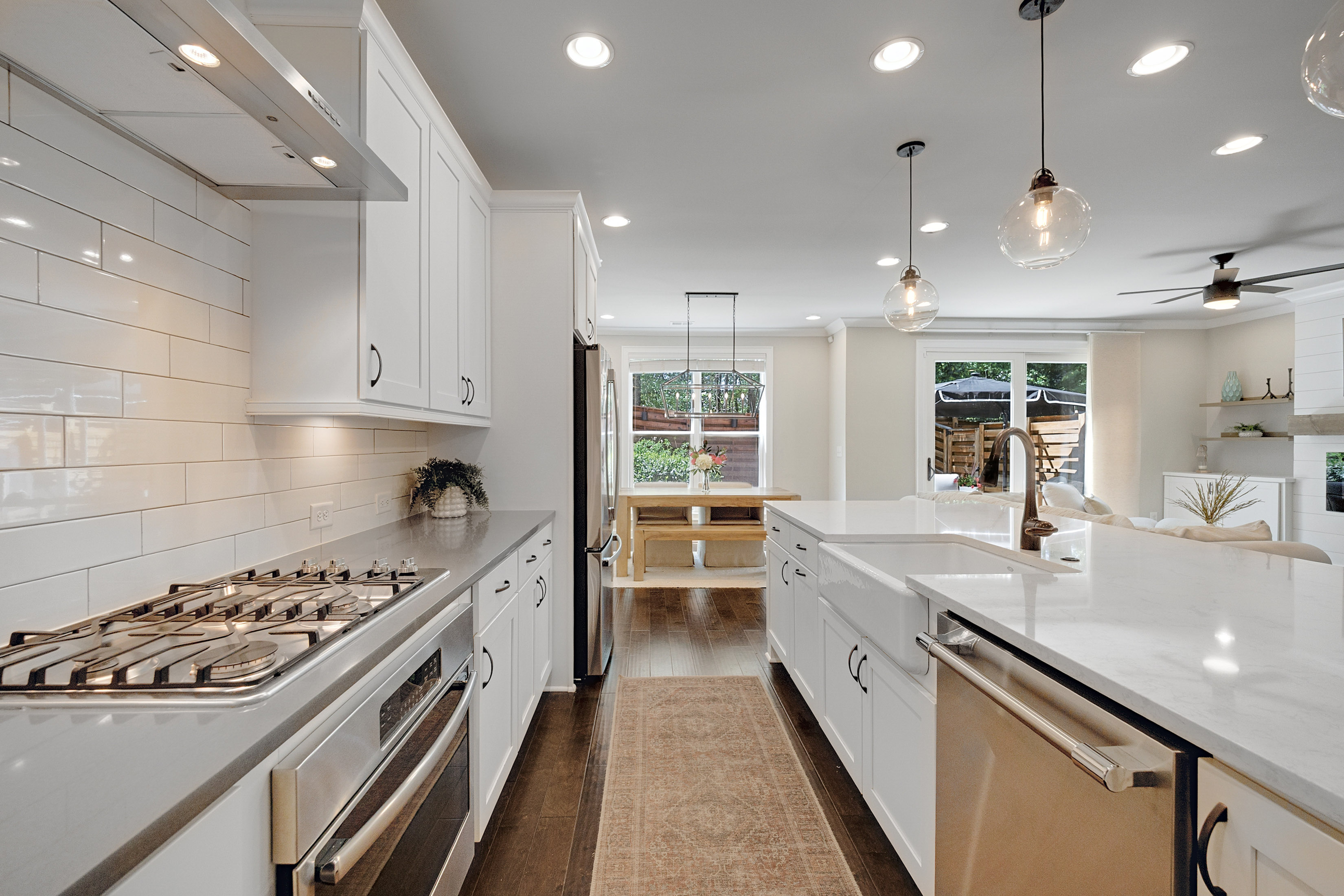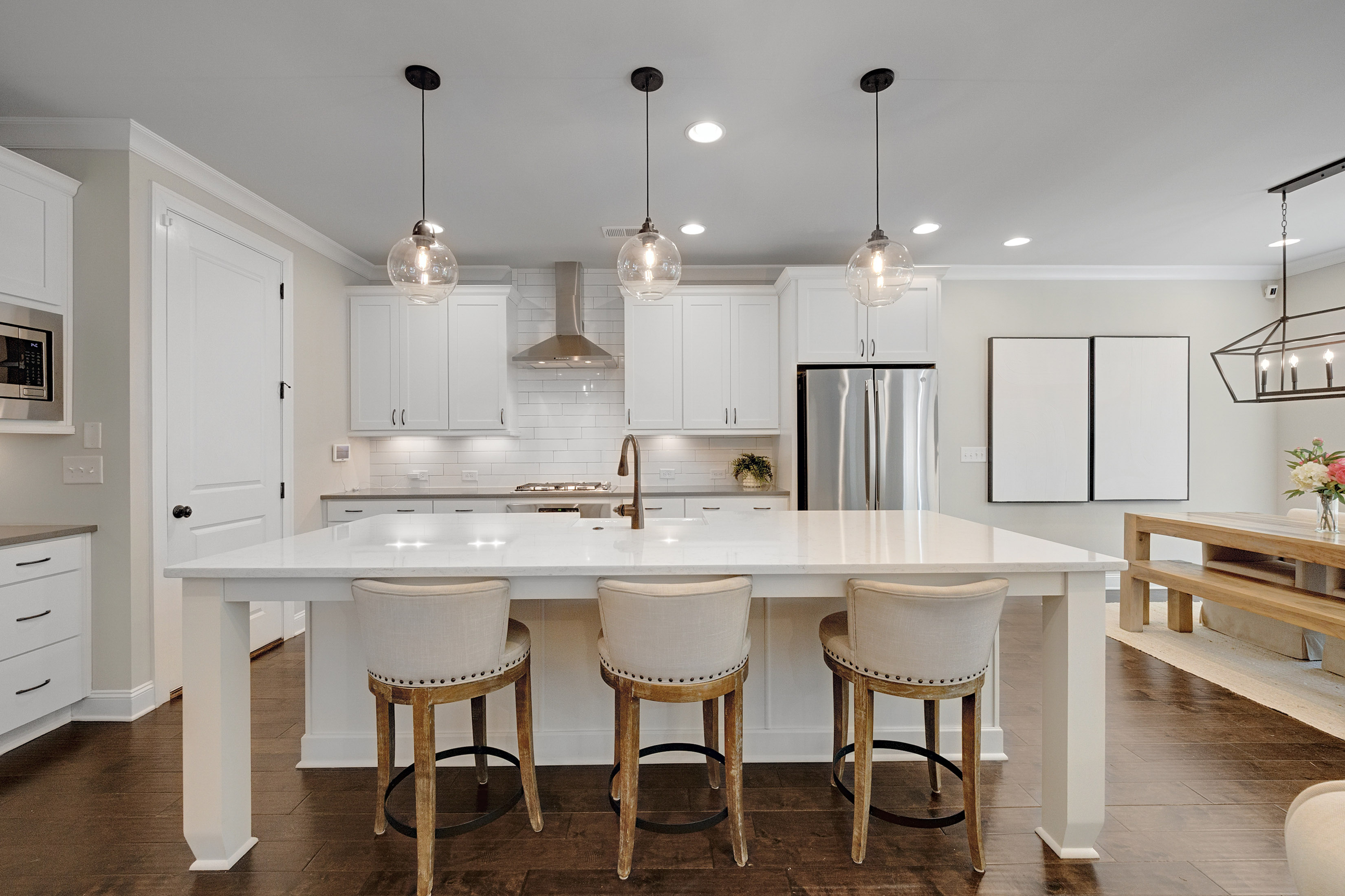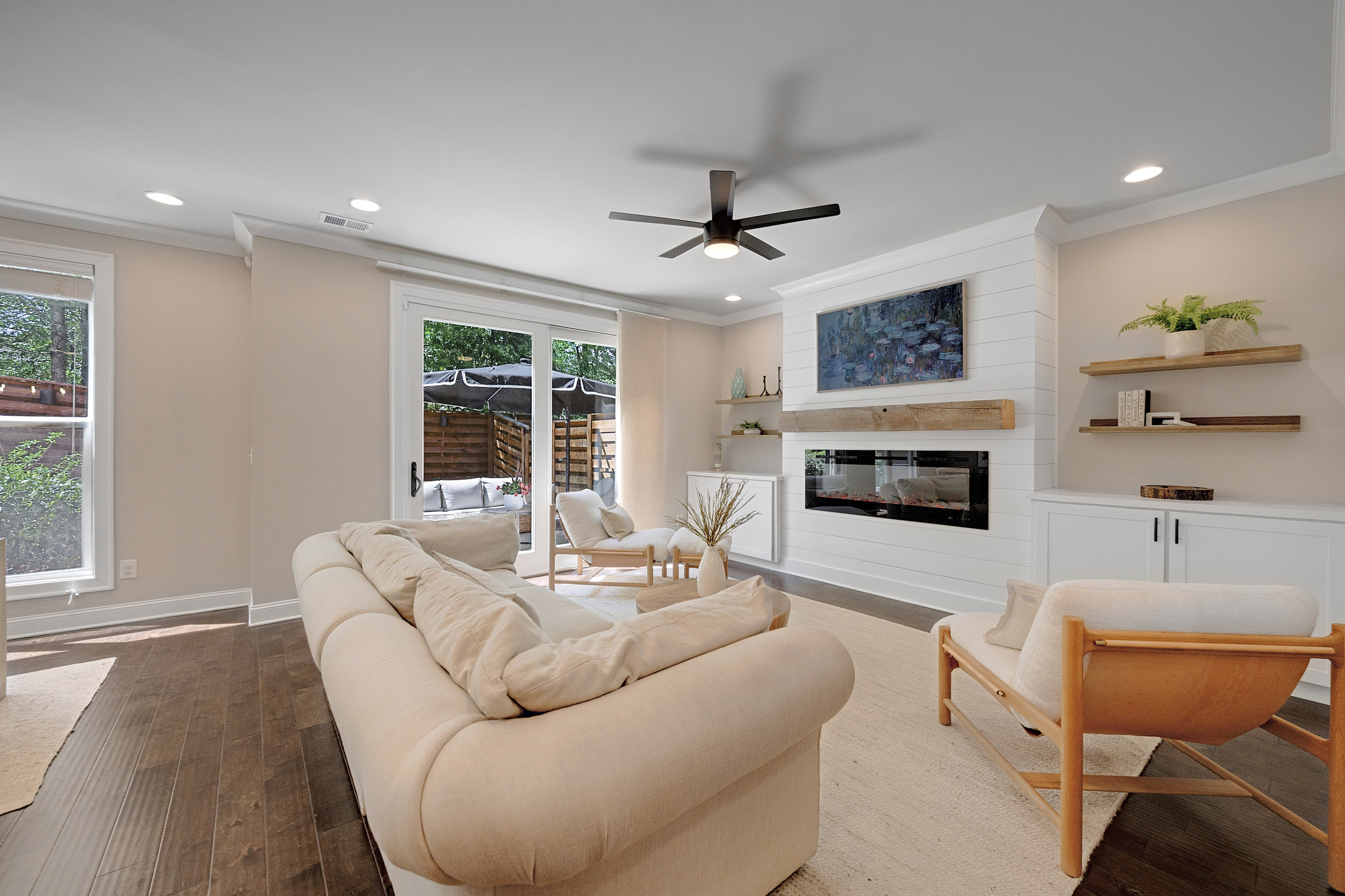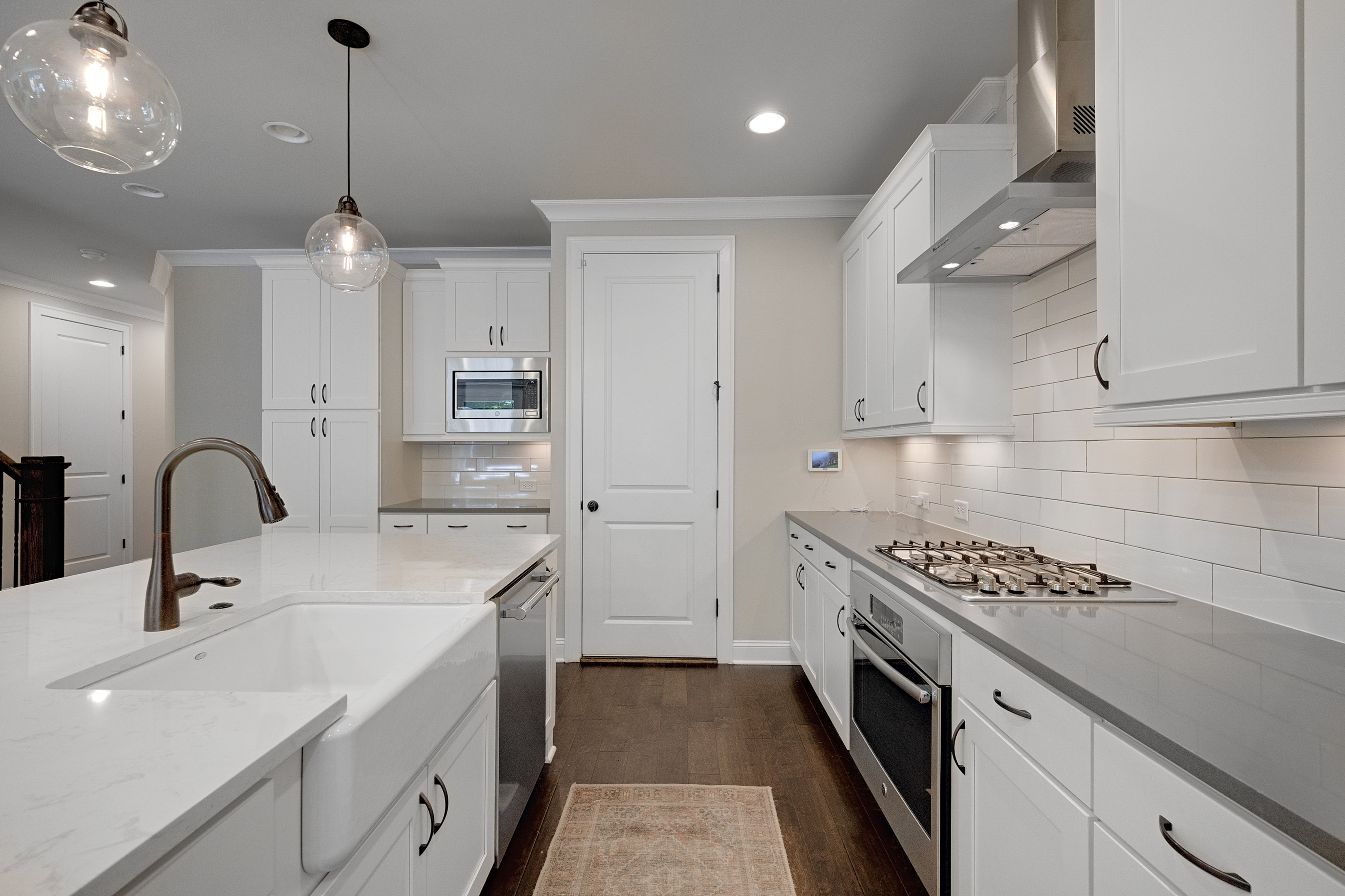 Welcome to Roswell Towneship—an inviting gated community of just 92 thoughtfully designed townhomes, offering a blend of privacy, charm, and convenience in the heart of Roswell. This beautifully appointed two-story townhome features a desirable front-entry garage and a bright, open layout perfect for everyday living and entertaining. The main level showcases elegant eight foot doors, hardwood floors, crown molding, a spacious family room with a cozy fireplace and custom built-ins with drawers, and a sliding glass door to access the outdoor living. The kitchen is a standout, designed with both style and function in mind—complete with a large island featuring a porcelain farmsink, pendant lighting, soft-close cabinetry, a walk-in pantry, gas cooktop, and a sleek stainless chimney hood/vented to the exterior. The kitchen-level garage adds everyday ease. Upstairs, the primary suite offers a relaxing retreat with a tray ceiling, abundant of natural light, and a generous walk-in closet. The spa-like primary bath includes a separate shower with frameless glass, soaking tub, double vanities, and a private water closet with linen storage. Spacious secondary bedrooms also feature walk-in closets, providing comfort and flexibility for family or guests. Step outside to your own private, fenced backyard with a patio—perfect for entertaining, pets, or simply enjoying quiet outdoor moments. Roswell Towneship offers low-maintenance living in a gated setting, all within close proximity to shopping, dining, and the charm of historic Roswell. HOA includes/maintains all landscaping, exterior maintenance, termite, and trash. Builder: The Providence Group.