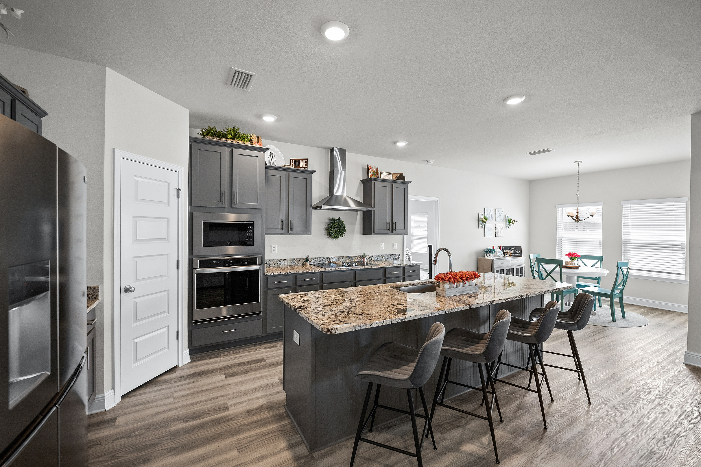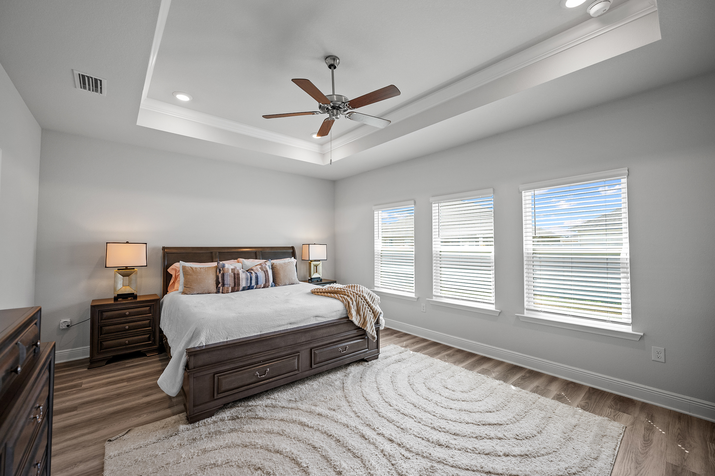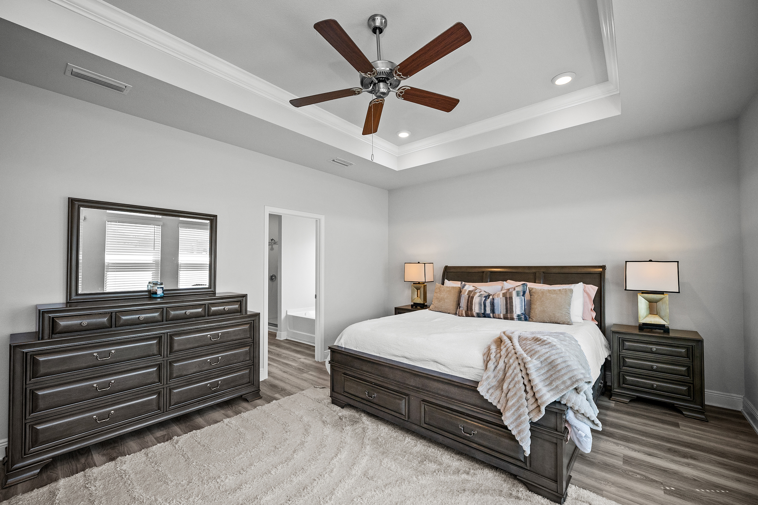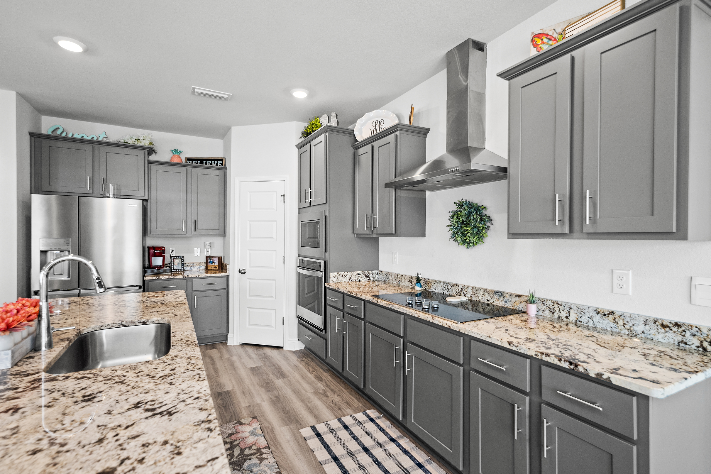 Discover this beautifully designed 5-bedroom “Matthew Floor Plan” single-level home, where thoughtful design meets effortless living. Every detail has been curated to deliver a blend of space, functionality, and lifestyle. A true standout is the private guest suite, complete with its own living room and wet bar, offering both comfort and privacy. The spacious primary ensuite serves as a relaxing retreat, featuring a walk-in closet, dual vanity, soaking garden tub, separate shower, and private water closet. At the heart of the home, the kitchen features granite countertops, a large pantry, a seamless built-in microwave & oven, and a refrigerator with a built-in beverage cooler, which adds a refined touch. An eat-at counter bar creates a casual gathering space, while both a formal dining area and a cozy breakfast nook provide versatile options for everyday meals and entertaining. Step outside to a fully fenced backyard with a covered patio designed for year-round enjoyment—perfect for grilling, outdoor TV viewing, entertaining guests, or simply relaxing in your own private space. Built to Gold Fortified standards, this home offers enhanced durability and insurance savings. An attached two-car garage adds everyday convenience, while the community offers resort-style amenities including a waterslide, two pools, a clubhouse, fitness center, playground, scenic walking trails, and peaceful lakes. Jubilee Farms offers a vibrant blend of comfort and community. Buyer to independently verify all information deemed pertinent. Buyer to verify all information during due diligence.