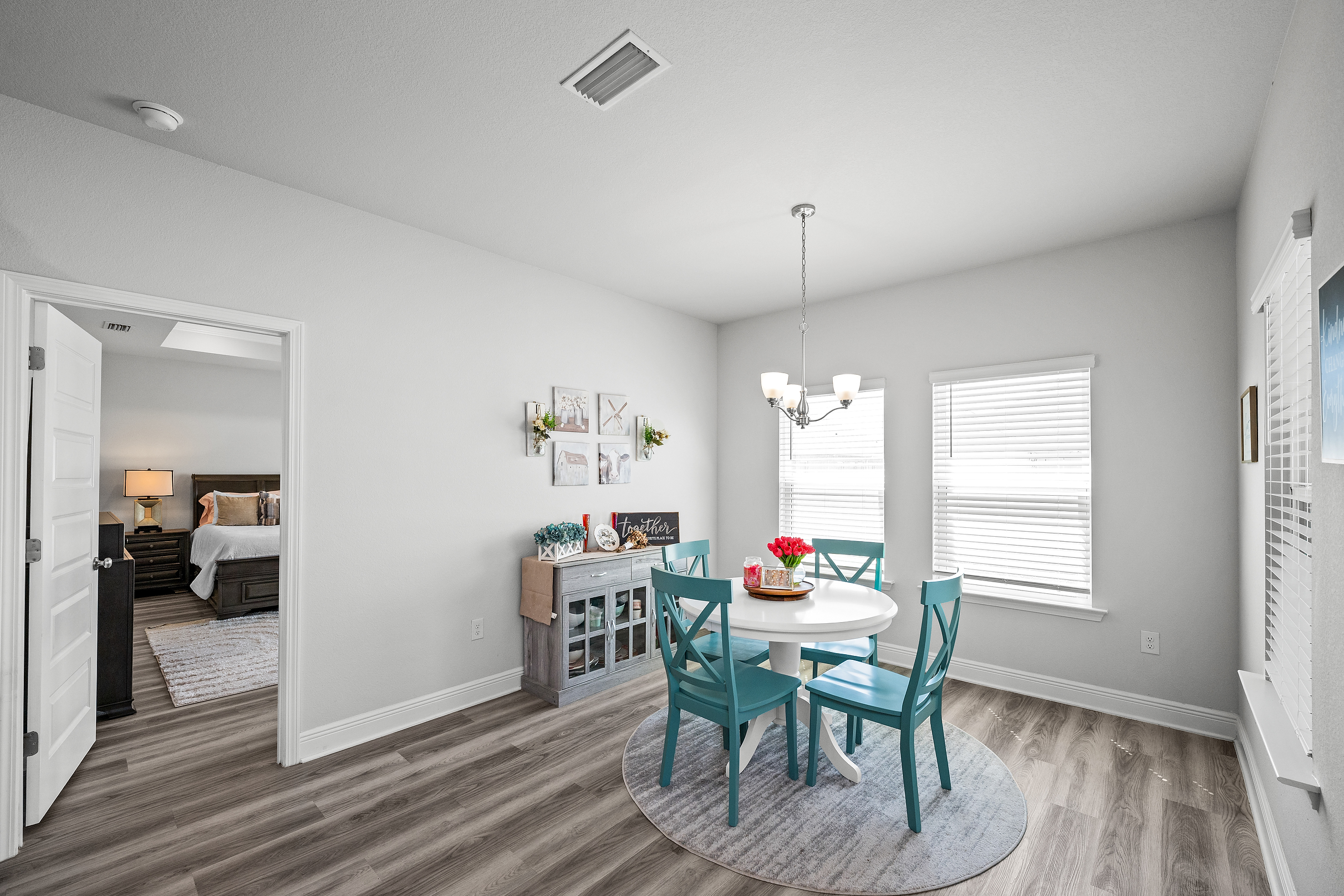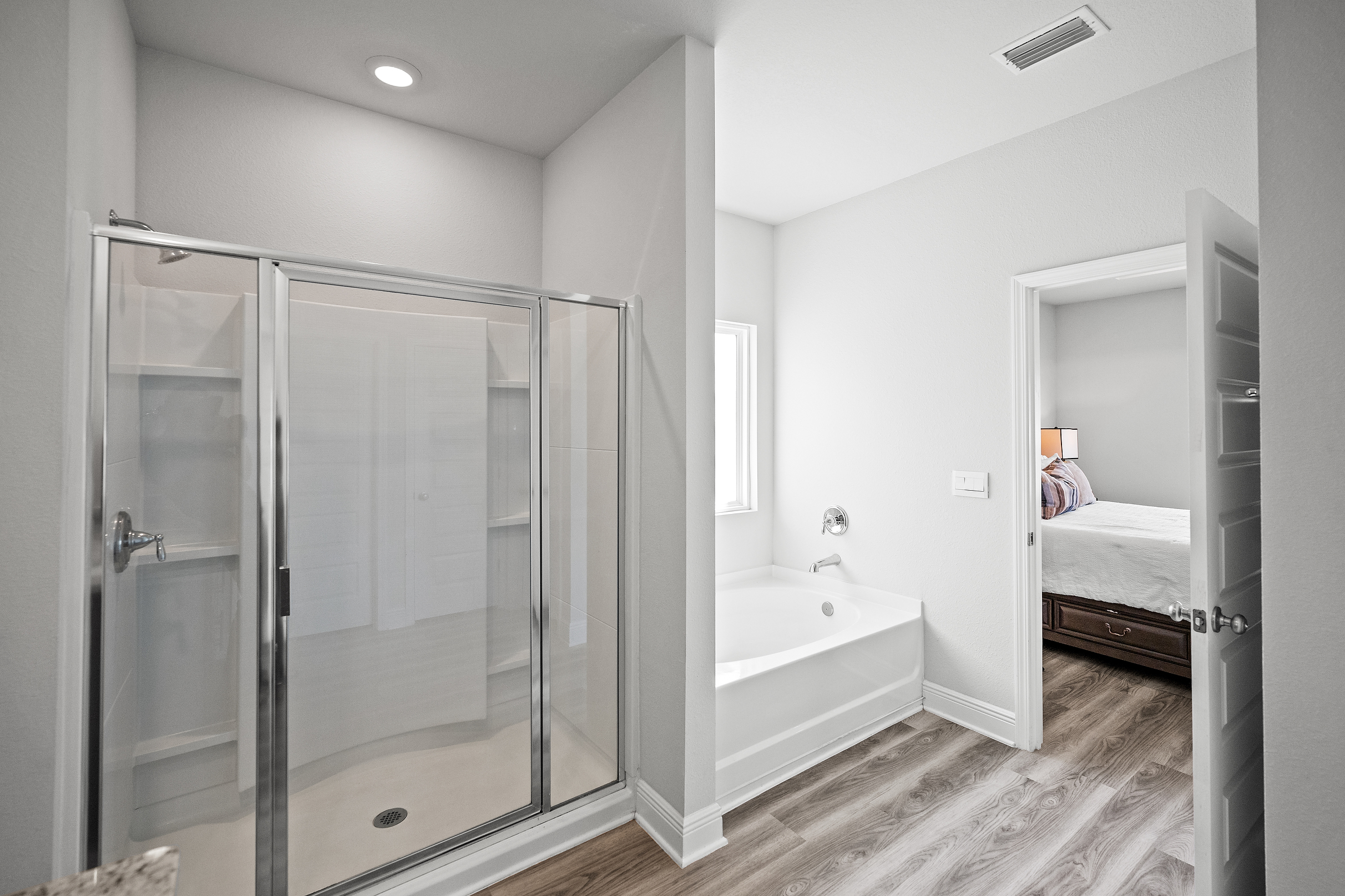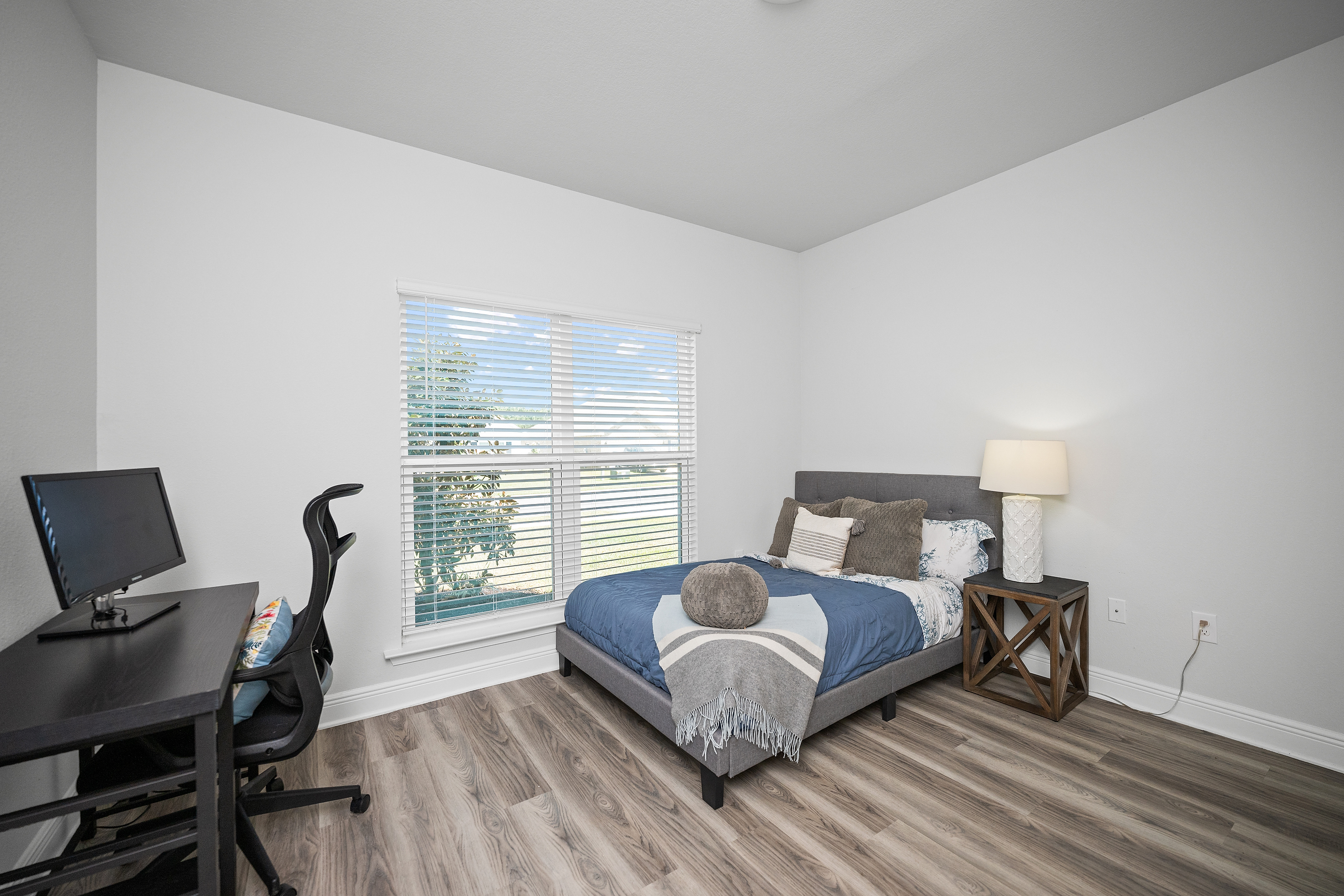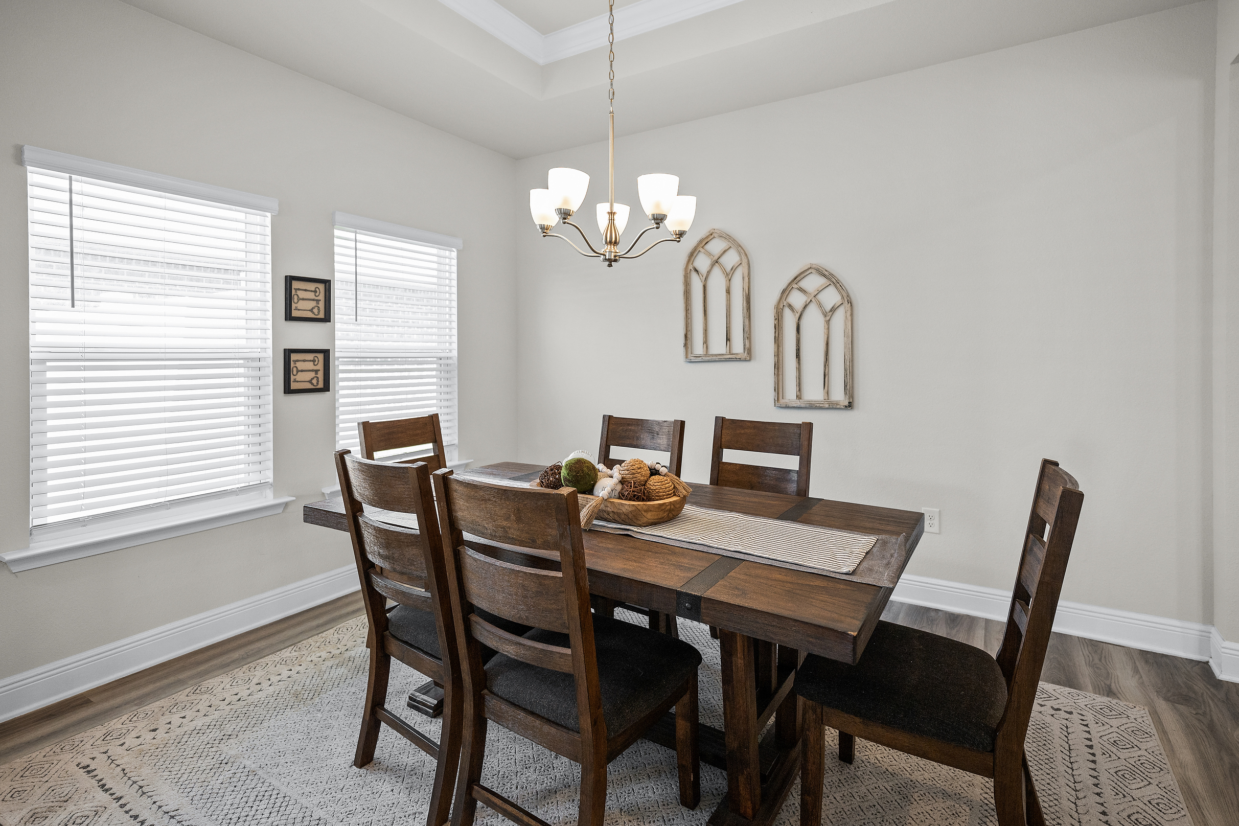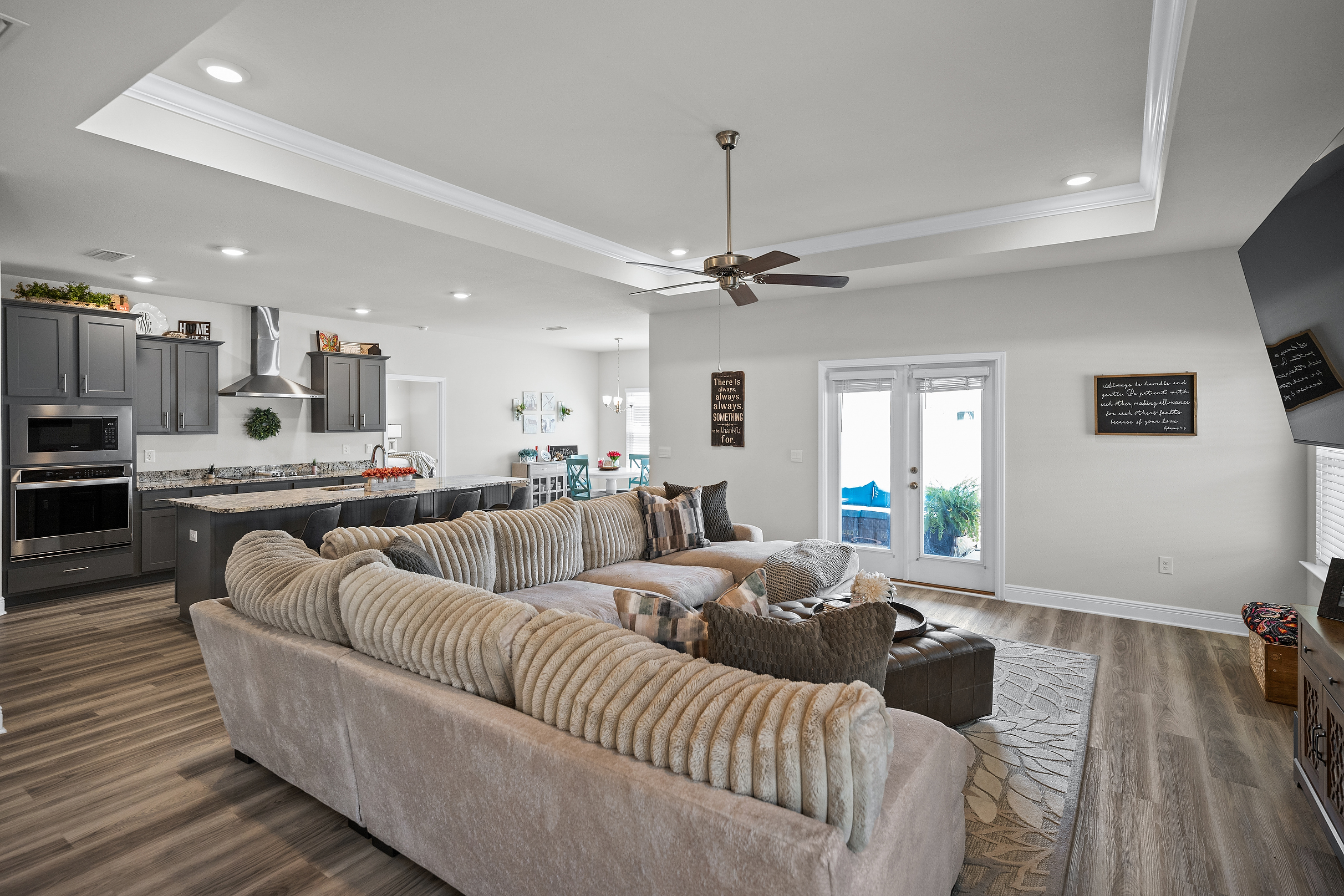 Discover this beautifully designed 5-bedroom “Matthew Floor Plan” single-level home, where thoughtful design meets effortless living. Every detail has been curated to deliver a blend of space, functionality, and lifestyle. A true standout is the private guest suite, complete with its own living room and wet bar, offering both comfort and privacy. The spacious primary ensuite serves as a relaxing retreat, featuring a walk-in closet, dual vanity, soaking garden tub, separate shower, and private water closet. At the heart of the home, the kitchen features granite countertops, a large pantry, a seamless built-in microwave & oven, and a refrigerator with a built-in beverage cooler, which adds a refined touch. An eat-at counter bar creates a casual gathering space, while both a formal dining area and a cozy breakfast nook provide versatile options for everyday meals and entertaining. Step outside to a fully fenced backyard with a covered patio designed for year-round enjoyment—perfect for grilling, outdoor TV viewing, entertaining guests, or simply relaxing in your own private space. Built to Gold Fortified standards, this home offers enhanced durability and insurance savings. An attached two-car garage adds everyday convenience, while the community offers resort-style amenities including a waterslide, two pools, a clubhouse, fitness center, playground, scenic walking trails, and peaceful lakes. Jubilee Farms offers a vibrant blend of comfort and community. Buyer to independently verify all information deemed pertinent. Buyer to verify all information during due diligence.