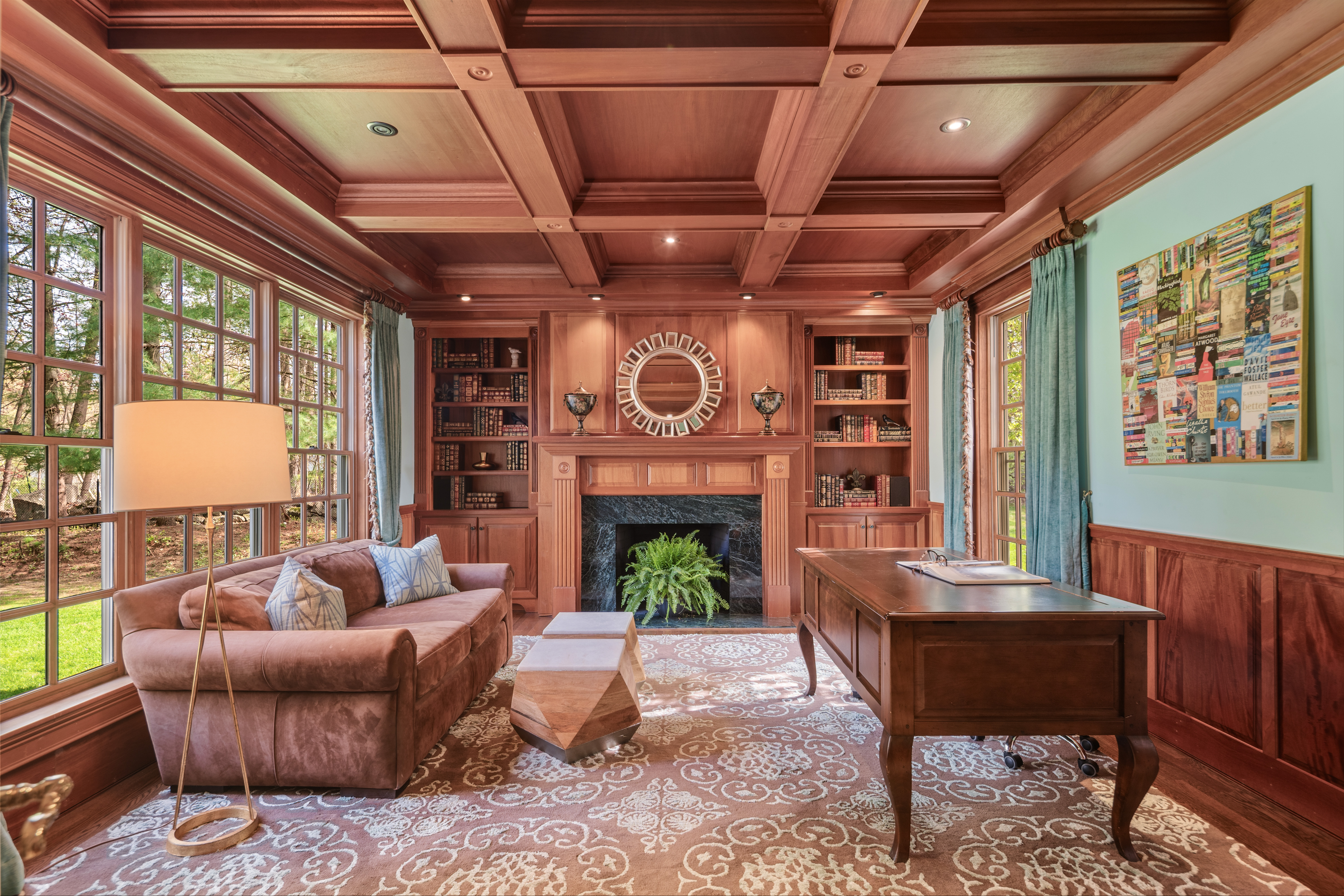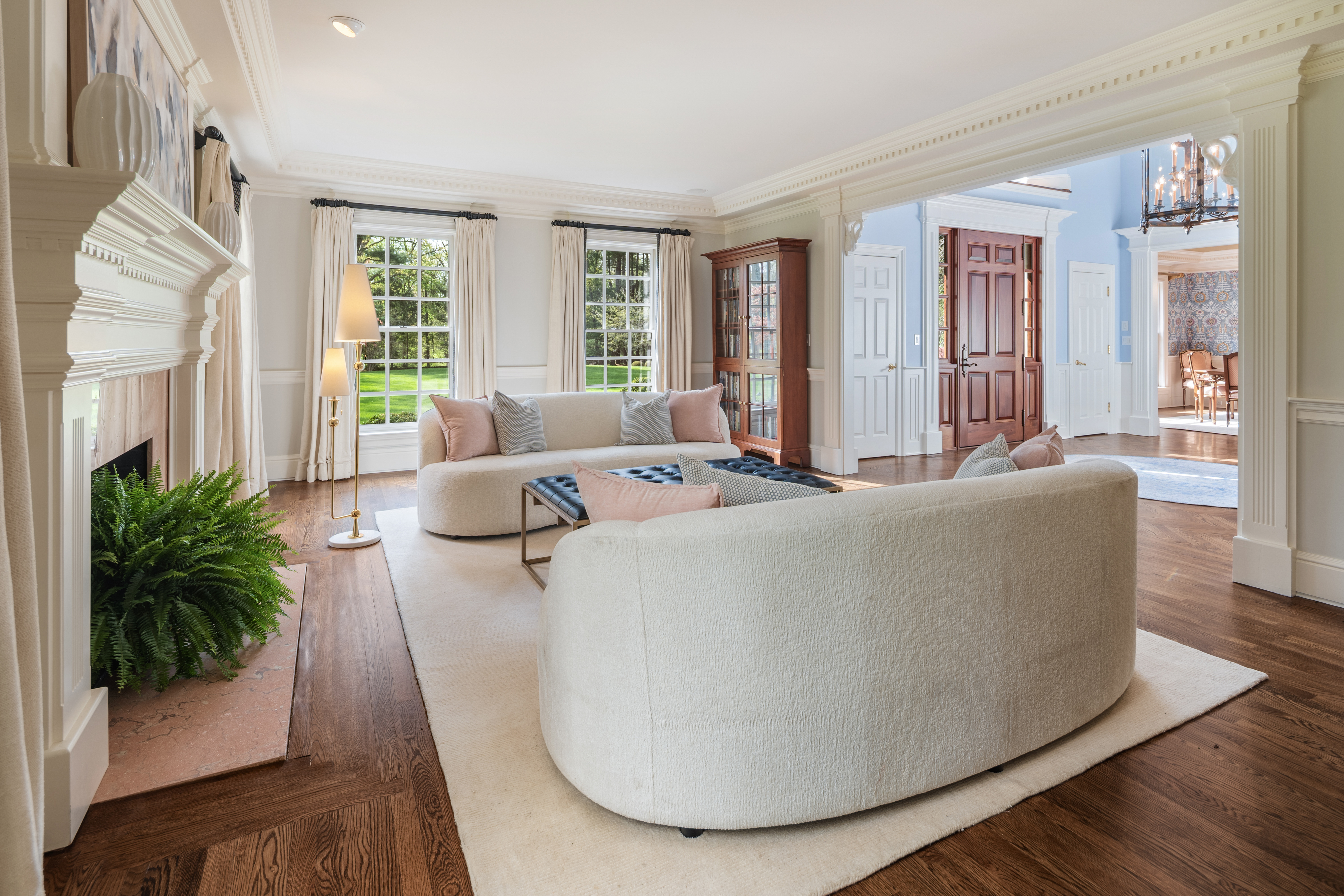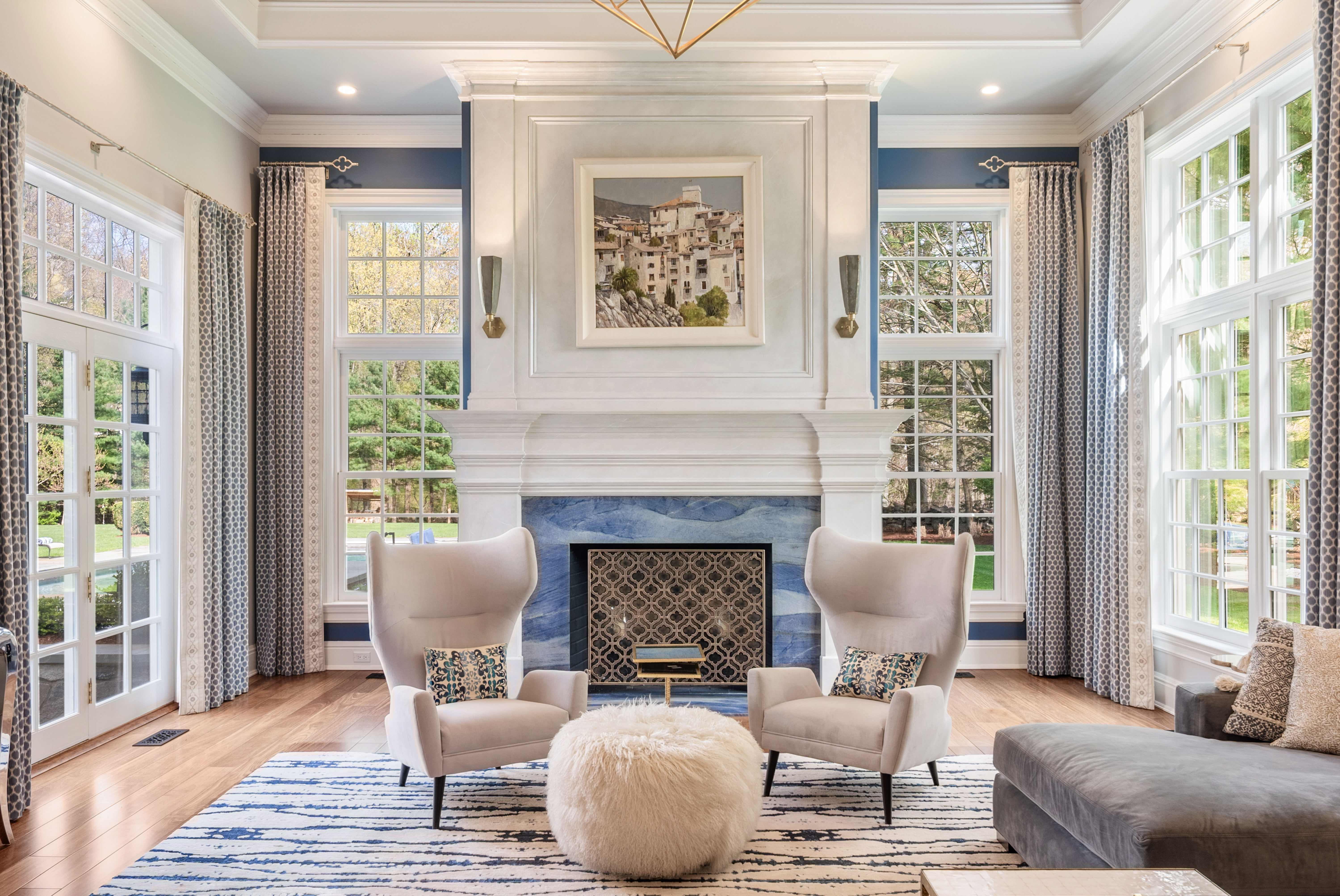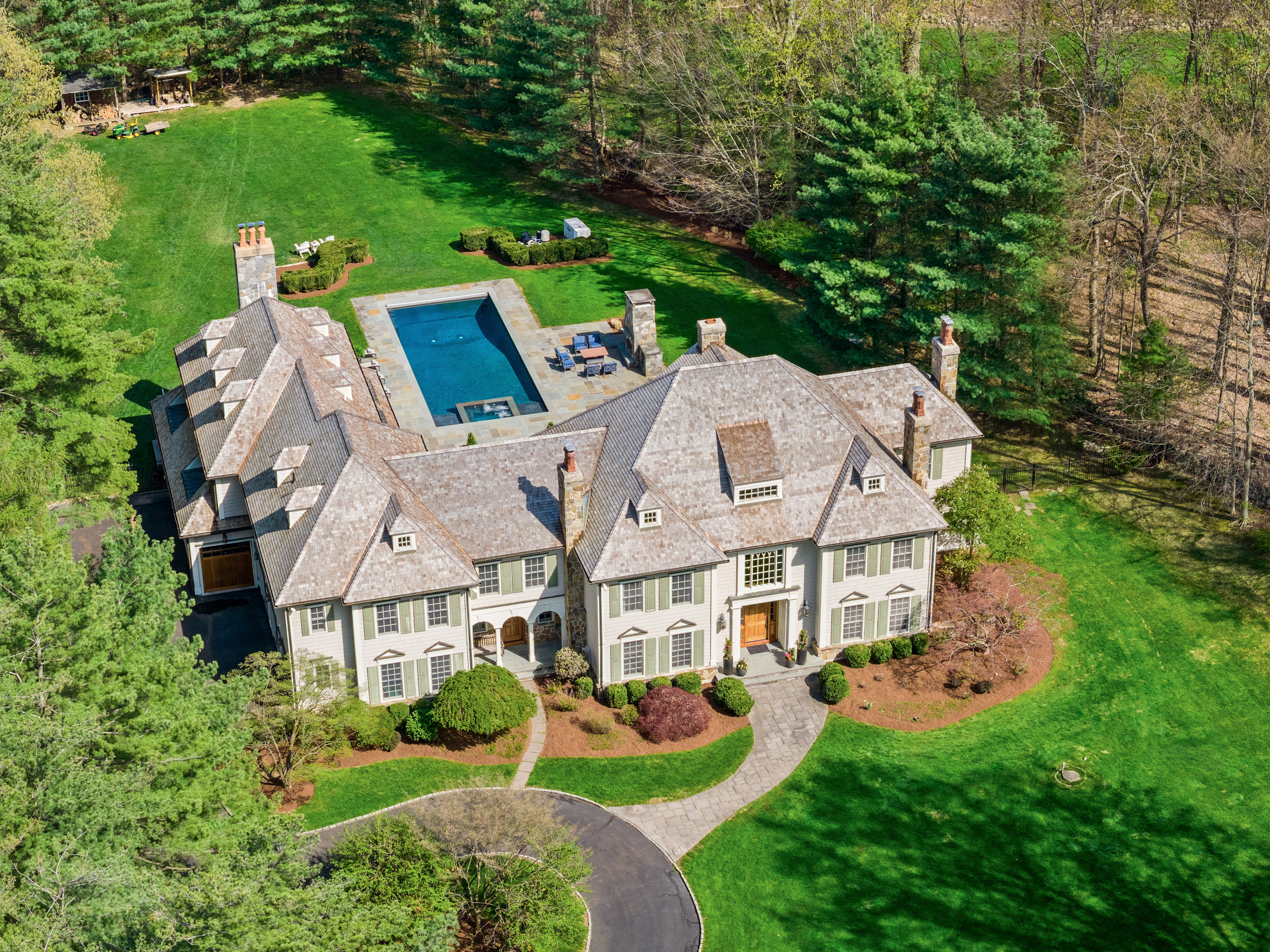 Discover the epitome of timeless luxury in this magnificent Colonial Chateau-style residence. Perfectly situated on two flat, meticulously landscaped acres in a coveted walking neighborhood, this home offers unparalleled privacy while remaining just moments from town and top-rated schools. This quiet, no-cut-through street is a haven for outdoor enthusiasts, offering exceptional bike riding and walking routes right from your door. The active neighborhood association fosters a true sense of community-think spirited trick-or-treating, seasonal gatherings, and friendly faces at every turn. Enjoy the best of both worlds: peaceful residential living with convenient access to prime roadways for an easy commute. The interior is a masterful blend of elegance and comfort, featuring six spacious en suite bedrooms and an astounding eight indoor fireplaces that create warmth and ambiance throughout. Designed for grand entertaining and modern family living, the home boasts multiple family rooms, ensuring ample space for every occasion. Indulge your passions in the dedicated wine cellar and the custom-designed sports den. The sophisticated primary level flows seamlessly to the breathtaking exterior amenities, which include a built-in pool for summer relaxation and a beautiful outdoor fireplace for year-round enjoyment. Completing this exceptional estate are four spacious garage bays, providing abundant storage and convenience.