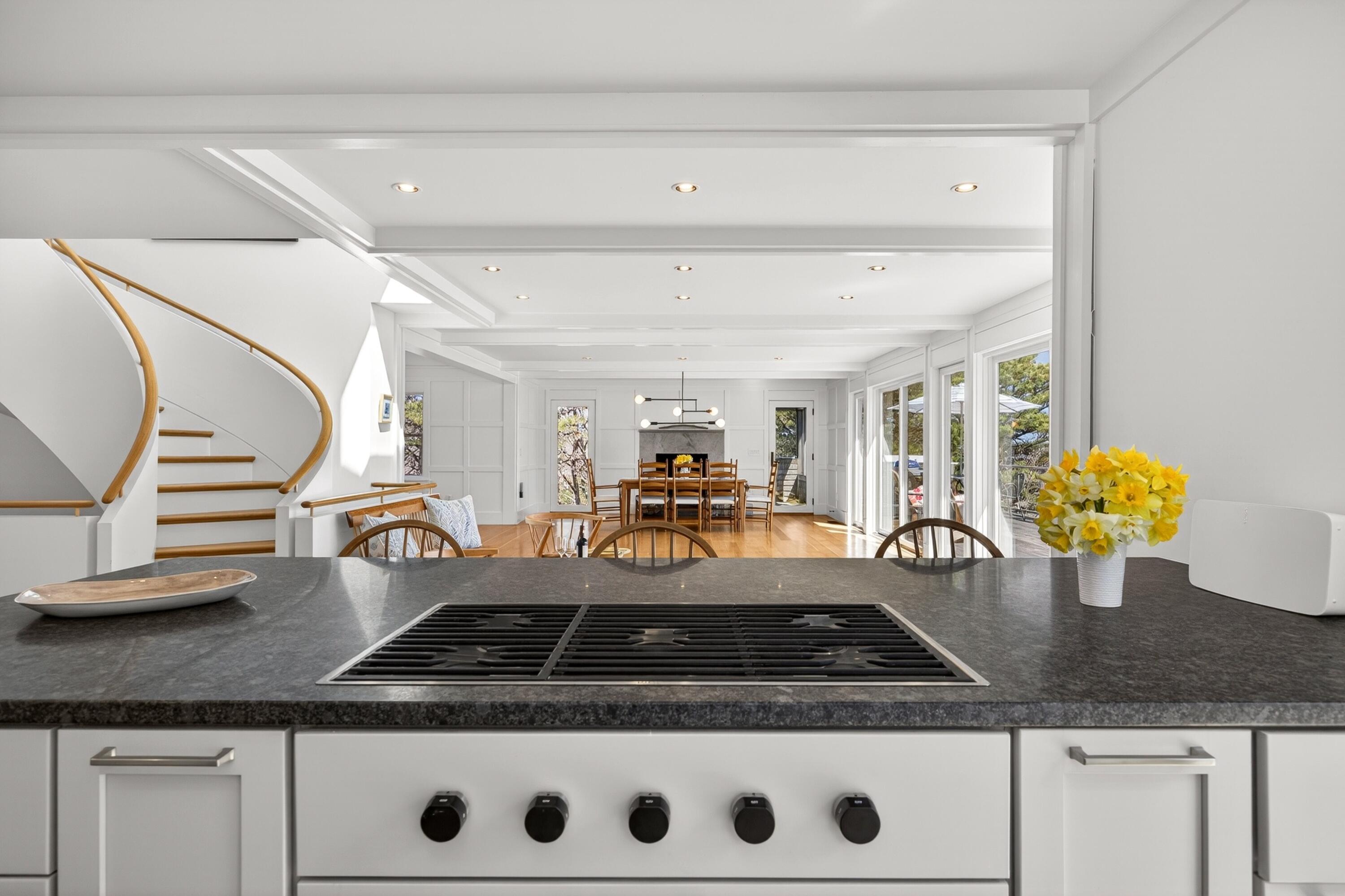 Set on a prime stretch of Wellfleet harbor this striking beachfront home distills the very best of Cape Cod living. Sweeping views carry across the harbor, into Cape Cod Bay, all the way to Orleans, a setting that shifts hour by hour as light moves across the water and closes each day with extraordinary sunsets. Inside, thoughtful updates meet standout design across multiple levels, anchored by a sculptural curved staircase that reads as much as art as architecture. An open living and dining area sits at the heart of the home. Multiple living areas and stunning water views extends from nearly every room. A screened porch invite easy indoor-outdoor living. Additional living quarters with a separate entrance and private bath offer flexible space, perfect for extended family, guests, or a home office. Private stairs lead directly to the beach below, while the marina, downtown Wellfleet, with its renowned restaurants and galleries are all just minutes away. It's a rare chance to own in one of Cape Cod's most coveted settings.