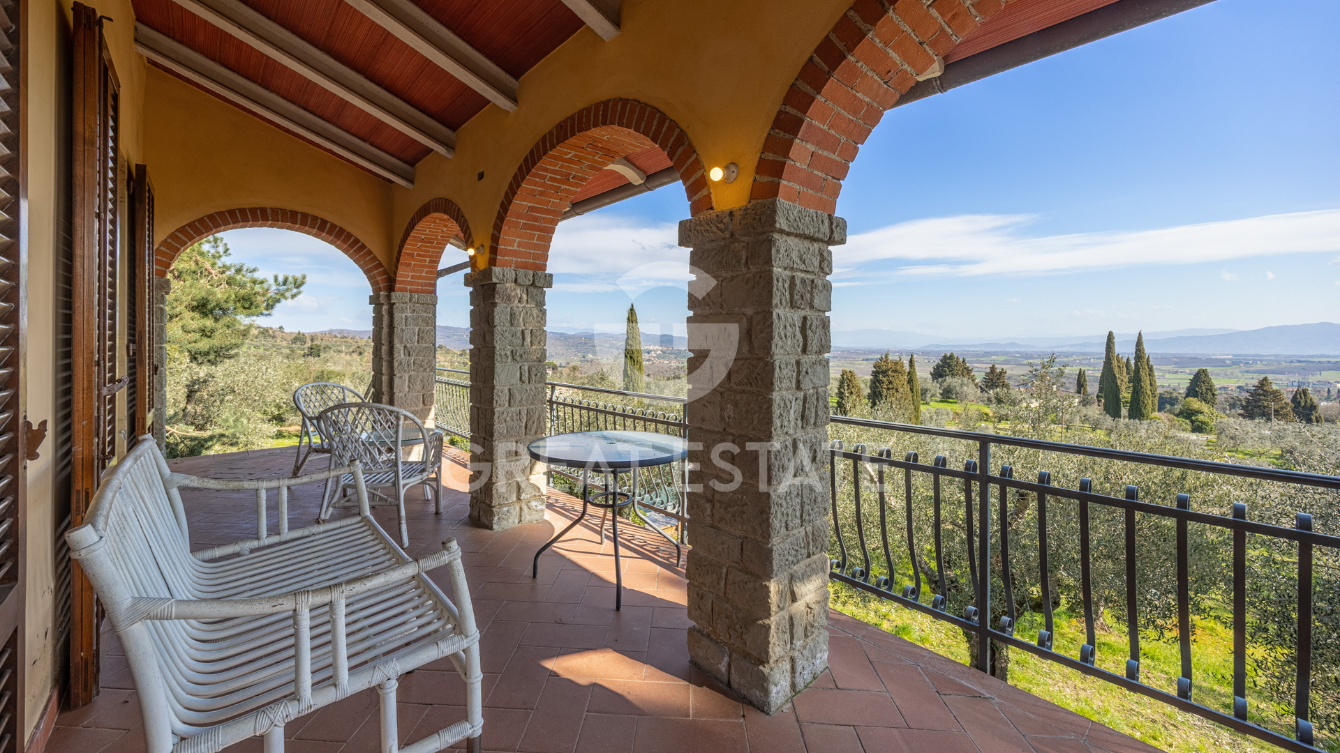 A few minutes from the charming village of Monte San Savino, in a private position with a stunning panoramic view, an enchanting villa surrounded by olive trees is offered for sale.The property, arranged over two levels, has a total surface area of 215 sqm and is composed as follows: On the ground floor there is a spacious tavern room, currently used as a kitchen and relaxation area, as well as a bathroom, technical room, and garage.The first floor, accessible both internally and via an external staircase, opens onto a bright living room overlooking a characteristic arched loggia, ideal for outdoor lunches and dinners with a view. On the same level, with direct access to the terrace, there is a first bedroom, easily convertible into a kitchen thanks to the existing connections. A few steps lead to the sleeping area, consisting of two spacious double bedrooms with terrace, a single bedroom, also perfect as a study, and two bathrooms.Externally, the land of approximately 9,150 sqm extends across a well-maintained garden of over 2,000 sqm and an olive grove with around 160 trees. At the heart of the green area lies the true highlight of the property: a 12 x 6 meter swimming pool, with salt system and sunbathing area, perfect for fully enjoying summer days in total relaxation.