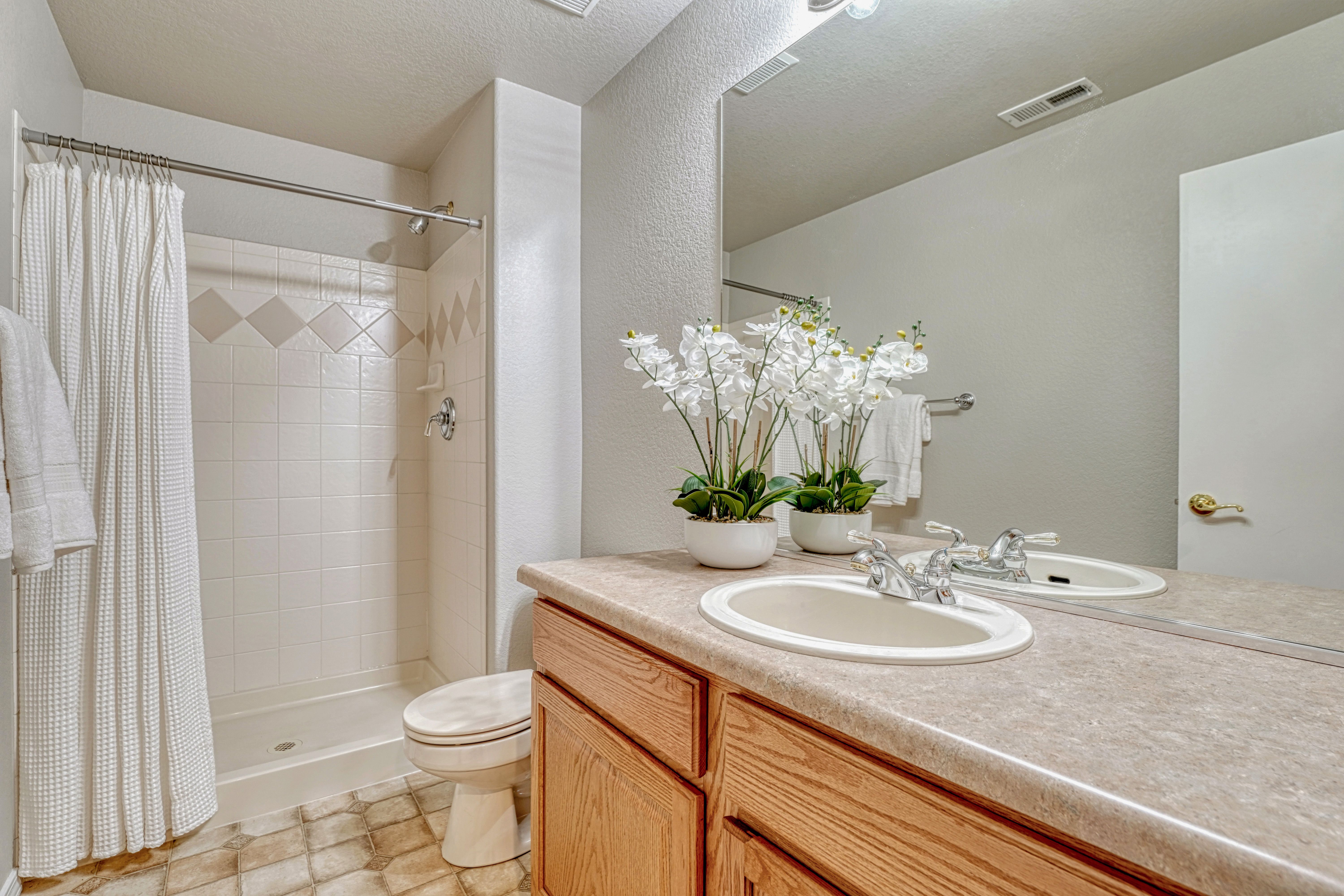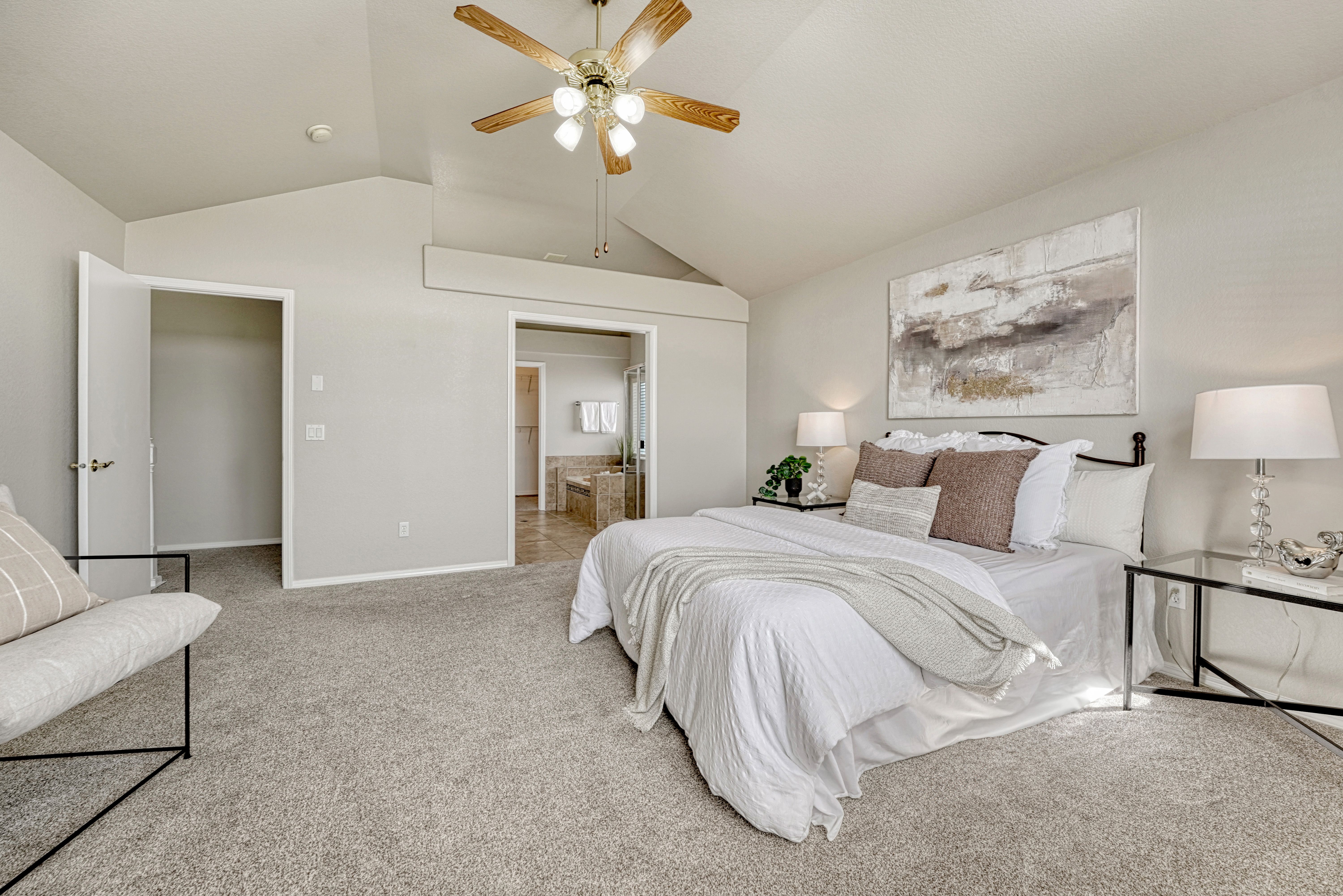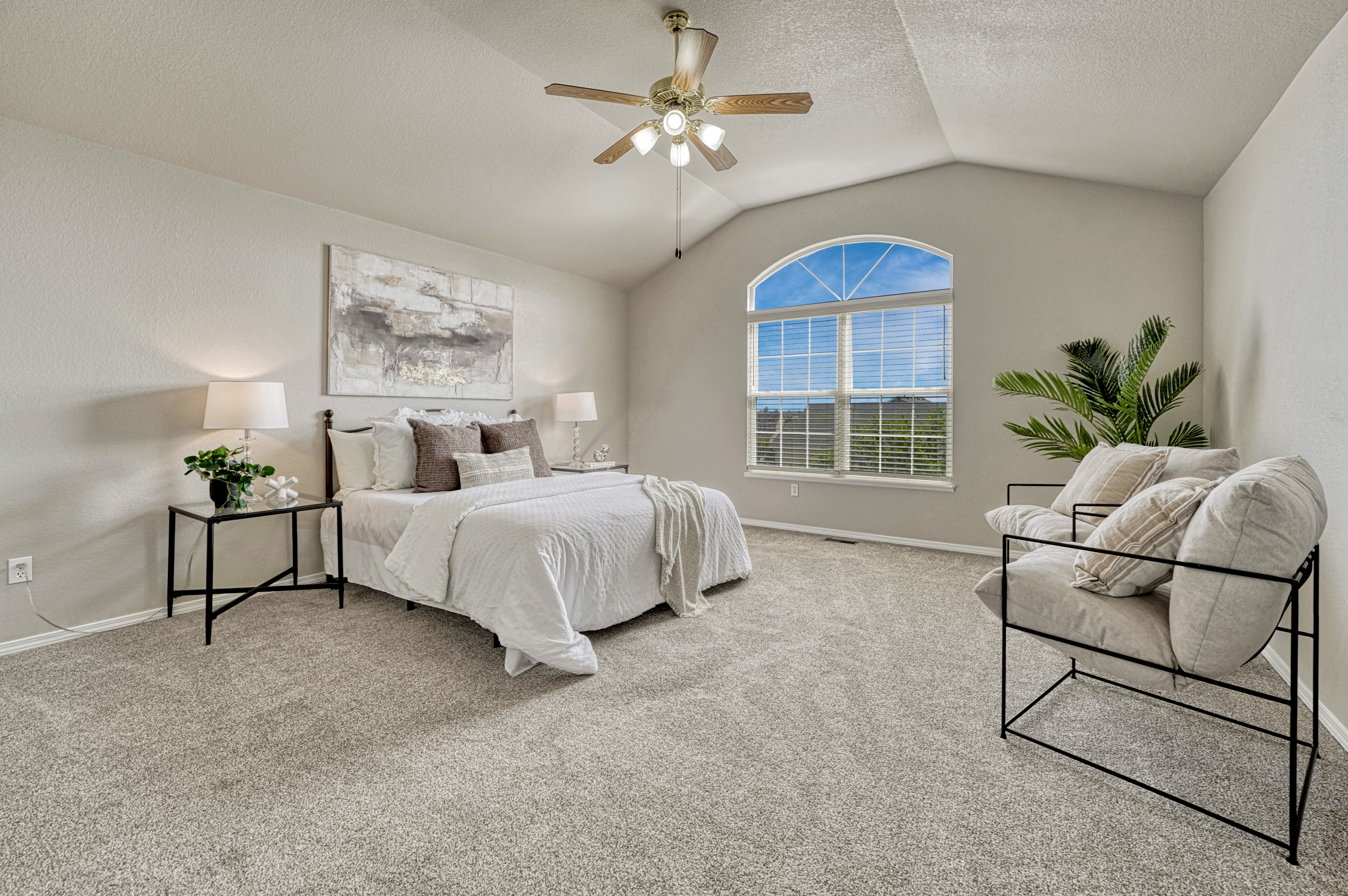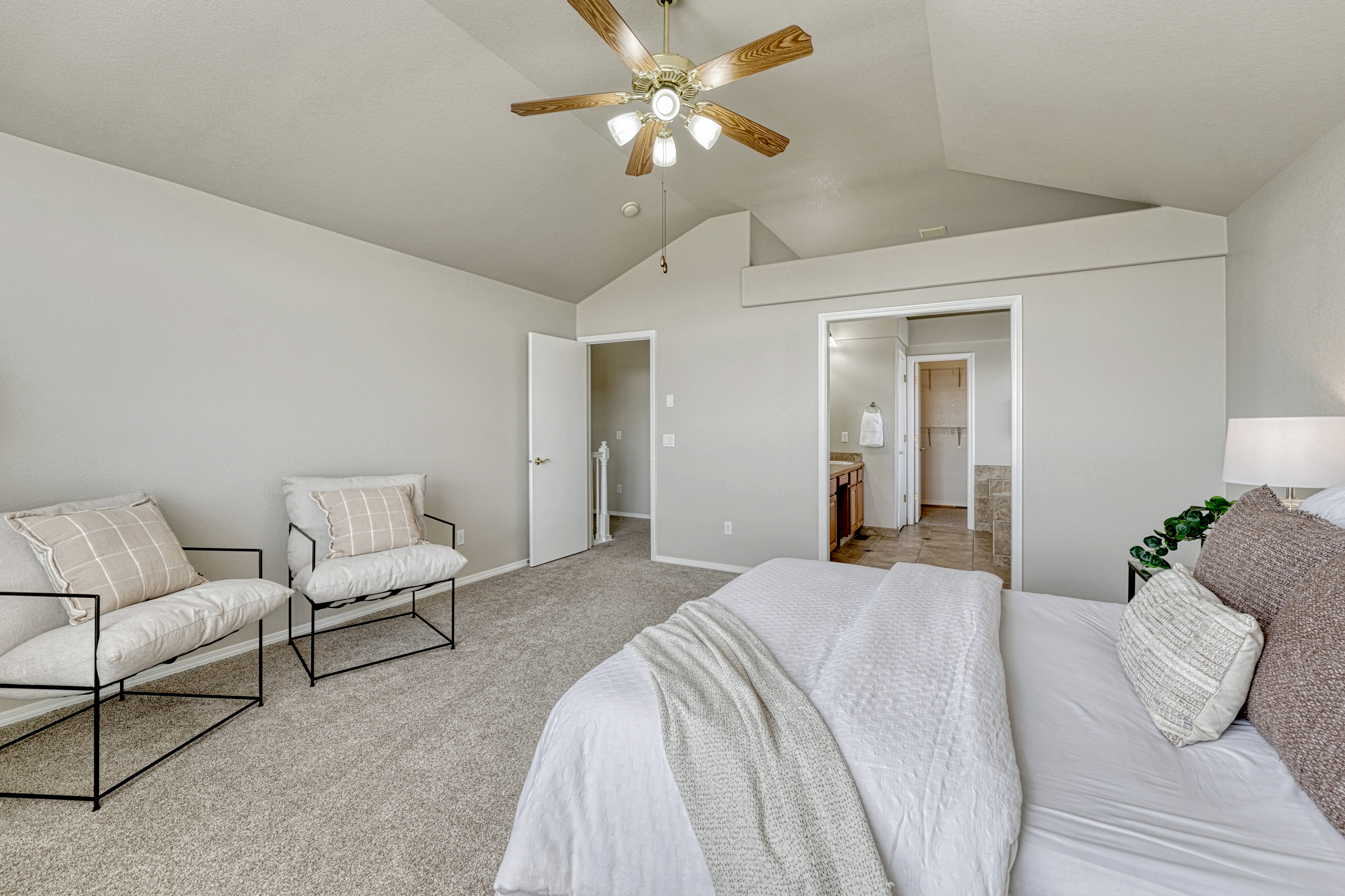 This move in ready home reflects thoughtful upgrades throughout. With five bedrooms, three and a half bathrooms, and a two car garage, the location offers convenient access to parks, schools, shopping, and both Peterson and Schriever Space Force Bases. Natural light fills the main level, highlighting hardwood floors, fresh interior paint, and updated fixtures with no carpet on the main. The kitchen features a newly added island, stainless steel appliances installed in 2023, and cabinetry that flows into the dining and living areas, creating a layout that works well for everyday living and gatherings. Upstairs offers newer carpet, three spacious bedrooms, and a private primary suite designed for comfort. The basement offers a large, ready for anything recreation space with a large bedroom and full bathroom. Outdoor living extends to a Trex deck added in 2024, overlooking a fenced yard with refreshed landscaping. A Class IV shingle roof installed in 2023 adds lasting durability.