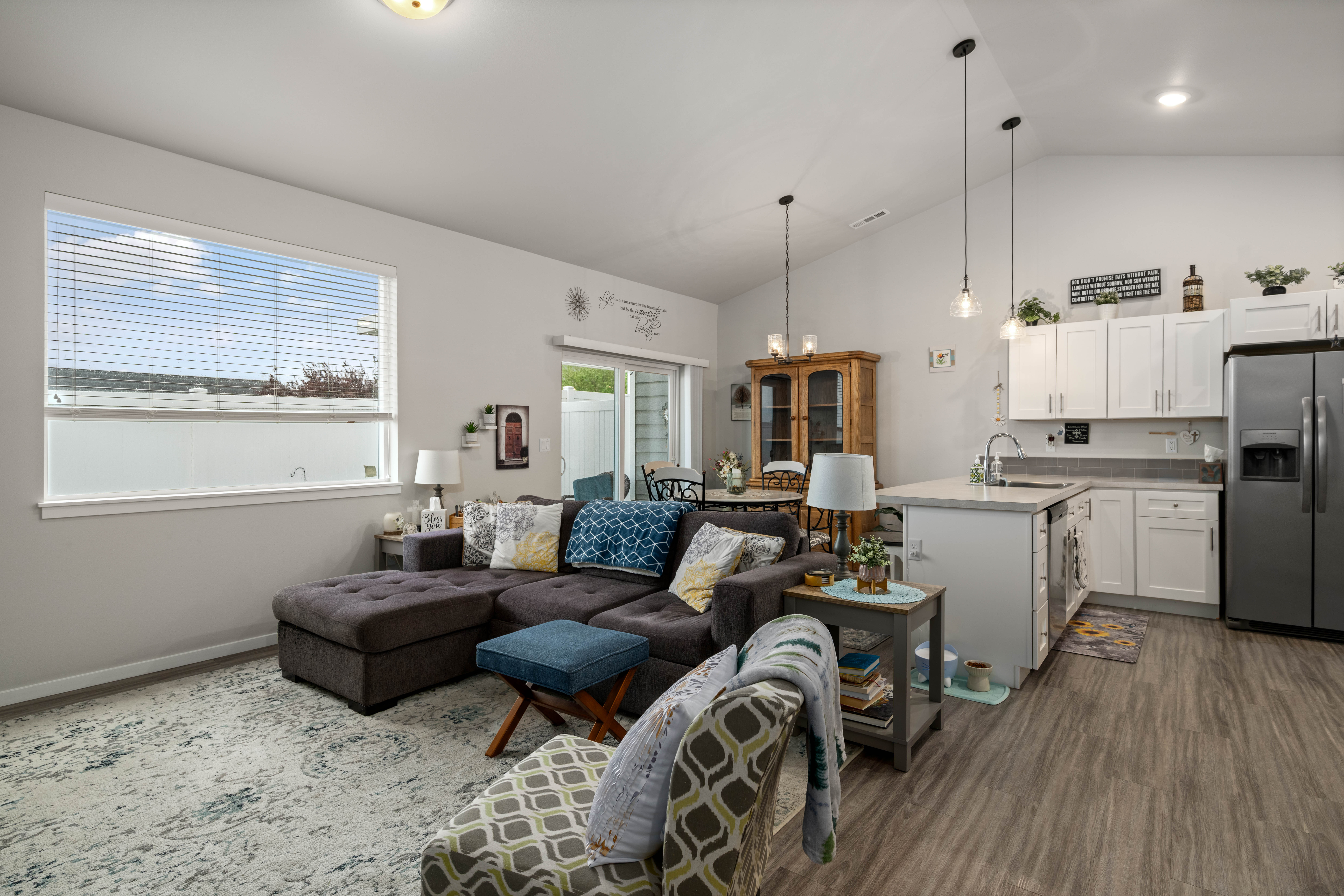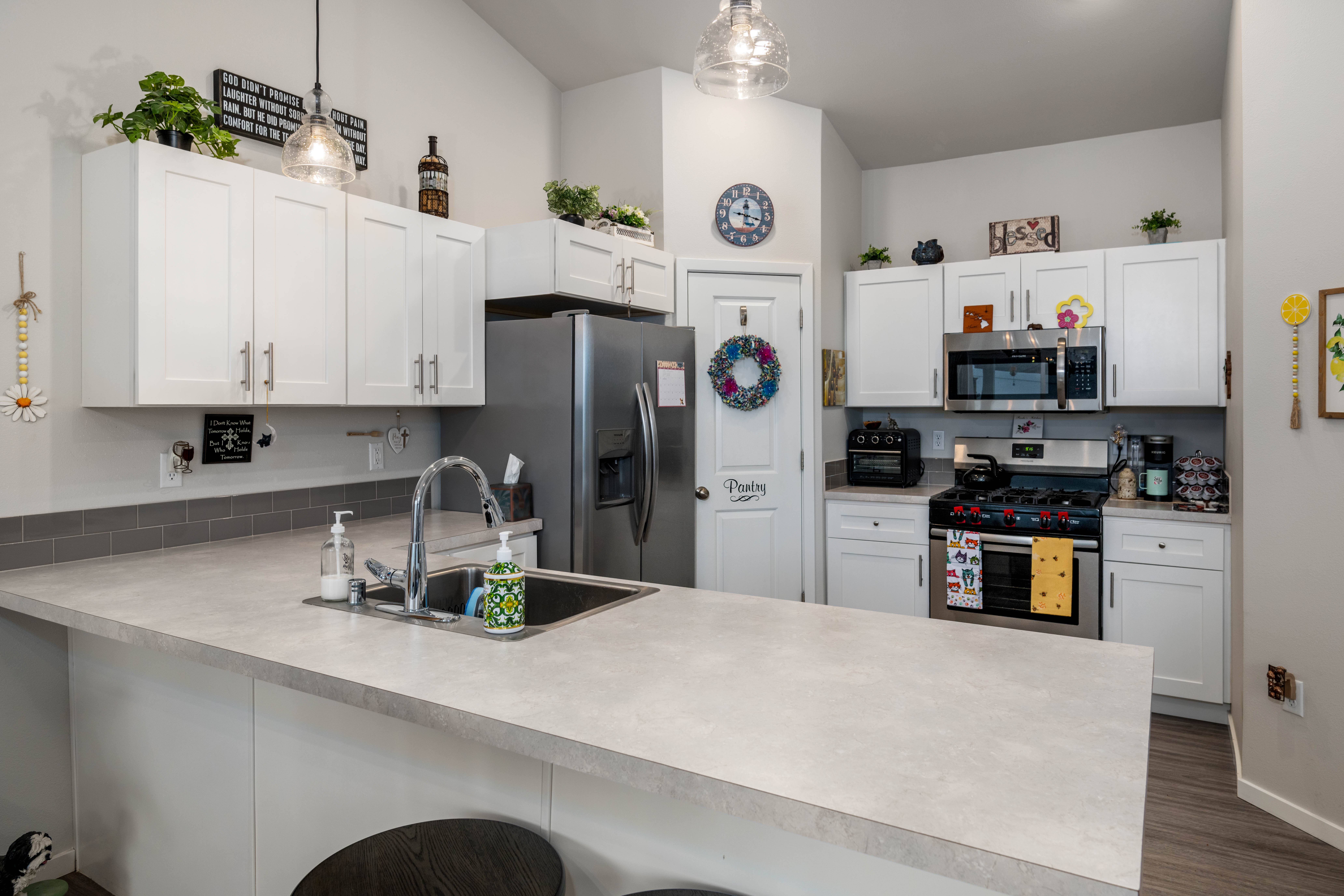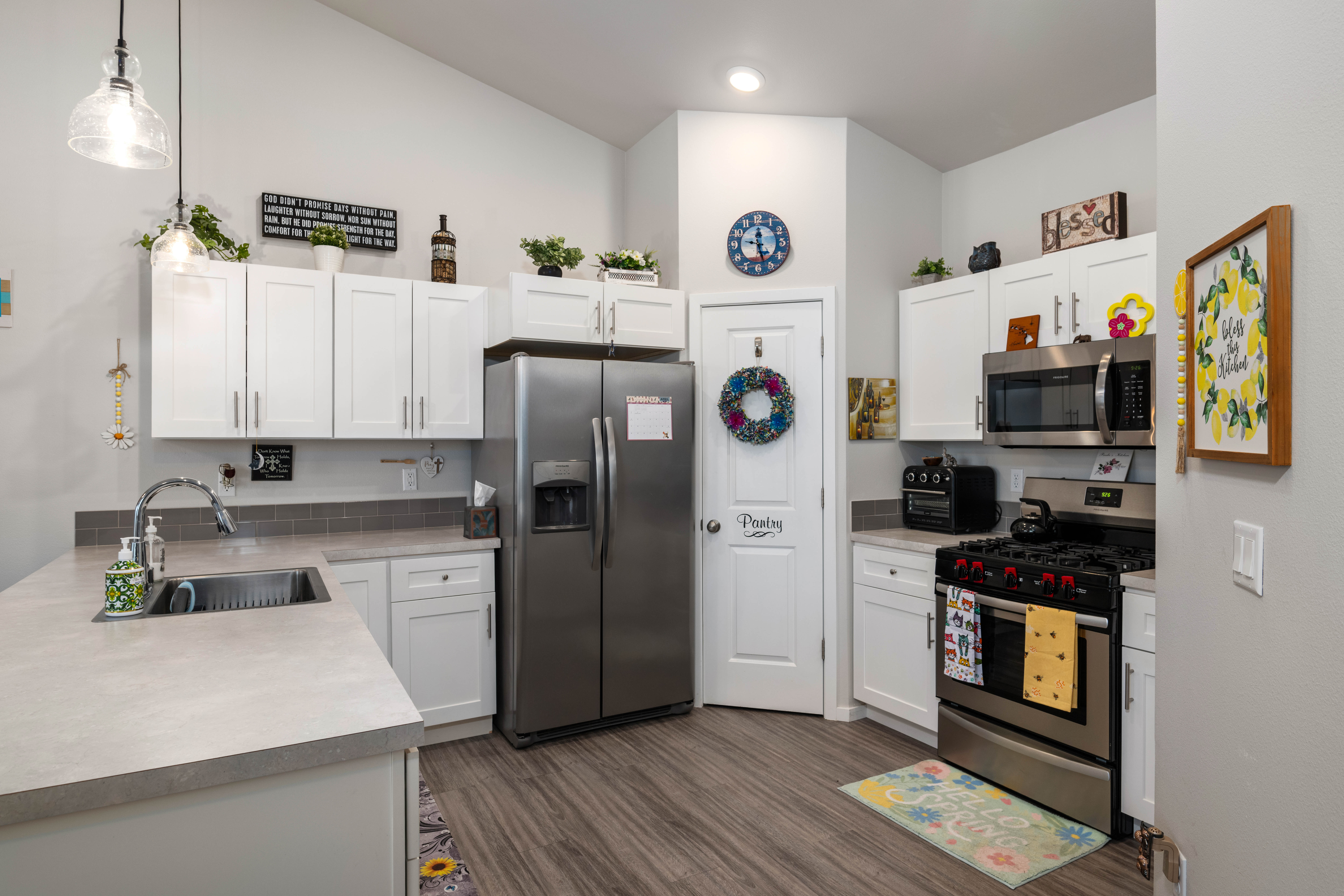 Welcome home to this affordable and beautifully maintained 3-bedroom, 2-bath, single-story townhome offering 1,289square feet of comfortable living space. Ideally located near a brand-new park, with easy highway access and close proximity to shopping, this home combines convenience with everyday comfort. Step inside to find durable and stylish LVP flooring throughout, complemented by spacious rooms and an open, inviting layout. The large primary suite is a true retreat, featuring a generous ensuite bathroom and a walk-in closet. The well-appointed kitchen includes ample cabinetry and a pantry for extra storage, and all appliances are included, making this home truly move-in ready. A separate laundry room adds functionality, while the finished garage provides additional flexibility. Enjoy outdoor living in the fully fenced backyard, complete with a covered porch, perfect for relaxing summer days or entertaining guests. Whether you're a first-time buyer, downsizing, or looking for a smart investment, this home offers comfort, convenience, and value in a fantastic location!