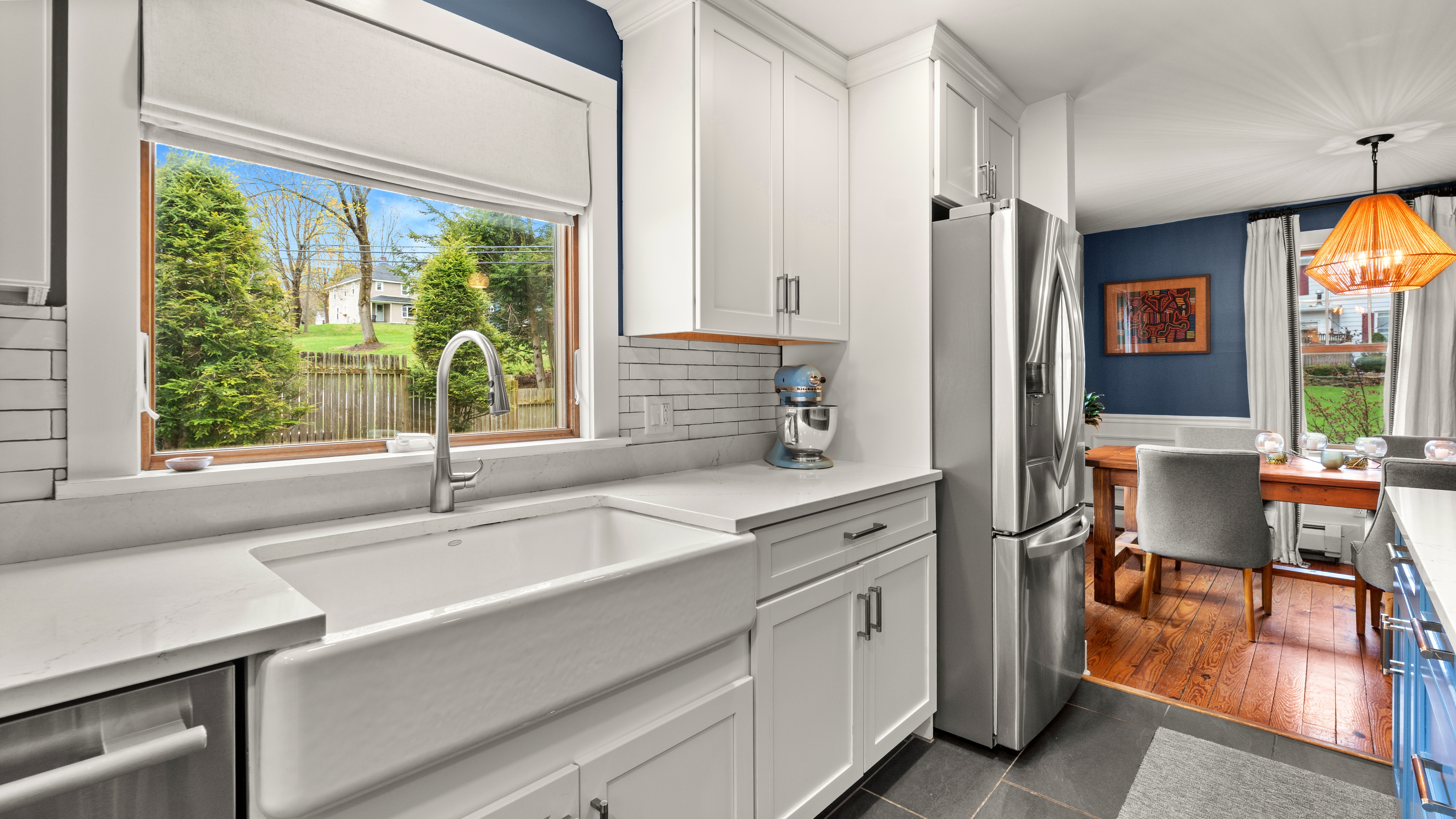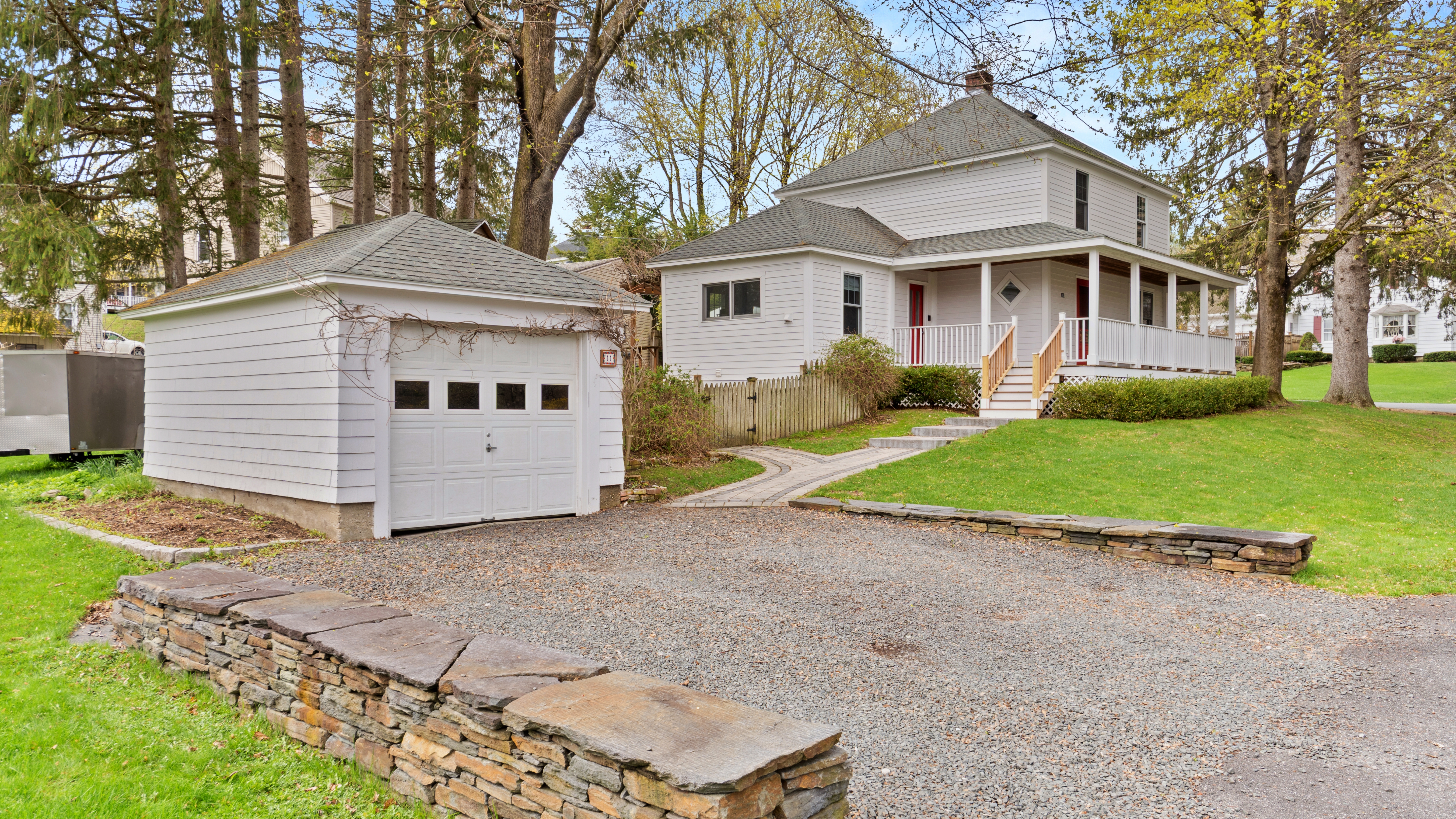 Set just moments from downtown Lenox, this charming New England farmhouse blends classic character with thoughtful modern updates. From the moment you arrive, the home's inviting presence and timeless appeal set the tone for what's inside. The recently renovated kitchen serves as the centerpiece of the home, beautifully designed with quartz countertops and all new appliances--perfectly opened to the dining area to create a seamless and functional space for everyday living and entertaining. A cozy living room is adjacent to the dining room. On the other side of the kitchen, a thoughtfully-designed mudroom and bonus space offers the ideal work-from-home office, complete with a half bathroom, laundry, and direct access to the backyard and patio. Upstairs, you'll find three comfortable bedrooms along with a full bathroom, offering a practical and well-balanced layout. Outside, the fully fenced yard provides a private retreat, enhanced by a newly-installed patio--perfect for gatherings or quiet evenings. A standout feature is the custom treehouse, complete with electricity, creating a truly special space for play or creativity. Additional highlights include a one-car detached garage and close proximity to Lenox's vibrant downtown, known for its shops, dining, and cultural attractions.