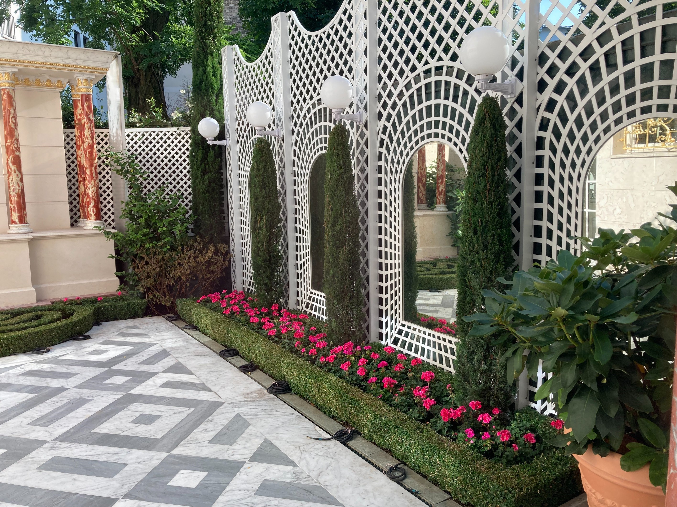 PARIS XVI – AUTEUIL MOLITOR : Rare and magnificent, this private mansion of nearly 500 sqm (5,400 sq ft) embodies the very essence of Parisian heritage and the French art of living. The result of a seamless union between two former townhouses, this exceptional property combines spectacular volumes, noble materials, and absolute refinement. From the moment you enter, a majestic gallery leads to a succession of grand reception rooms with rare proportions, adorned with finely carved wood paneling and ornamental details inspired by the most exquisite rooms of the Château de Versailles. The floors and fireplaces, crafted from precious marbles—Sarrancolin, Breccia Oniciata, and Portuguese marble—attest to the utmost care given to every detail. On the ground floor, an intimate sitting room opens into a grand reception salon featuring a monumental fireplace, a gracious dining room, a fully fitted and equipped gourmet kitchen, and a bright veranda leading to a peaceful inner courtyard, ideal for quiet relaxation or discreet parking. A monumental staircase, a true work of bespoke iron craftsmanship, rises to the first floor, which hosts two elegant master suites, each with its luxurious bathroom and private toilet, extending the property’s refined atmosphere. The second floor, designed for children or staff, offers two additional bedrooms, a shower room, a dressing area, and a utility room. The property benefits from dual circulation, with both a main and a service staircase, ensuring complete privacy for household staff. Meticulously restored to the highest standards after an extensive renovation, this hôtel particulier stands out for its impeccable condition, historical charm enhanced by modern comfort, and discreet address in one of Paris’s most sought-after neighborhoods. A truly exceptional residence for connoisseurs of art, history, and architectural perfection.