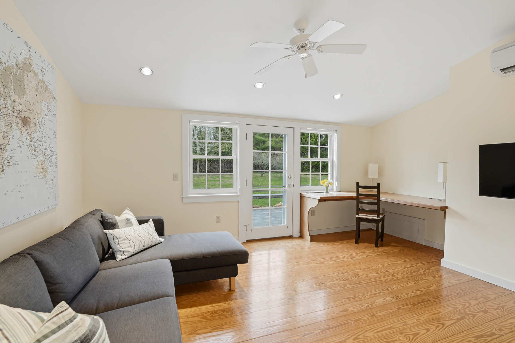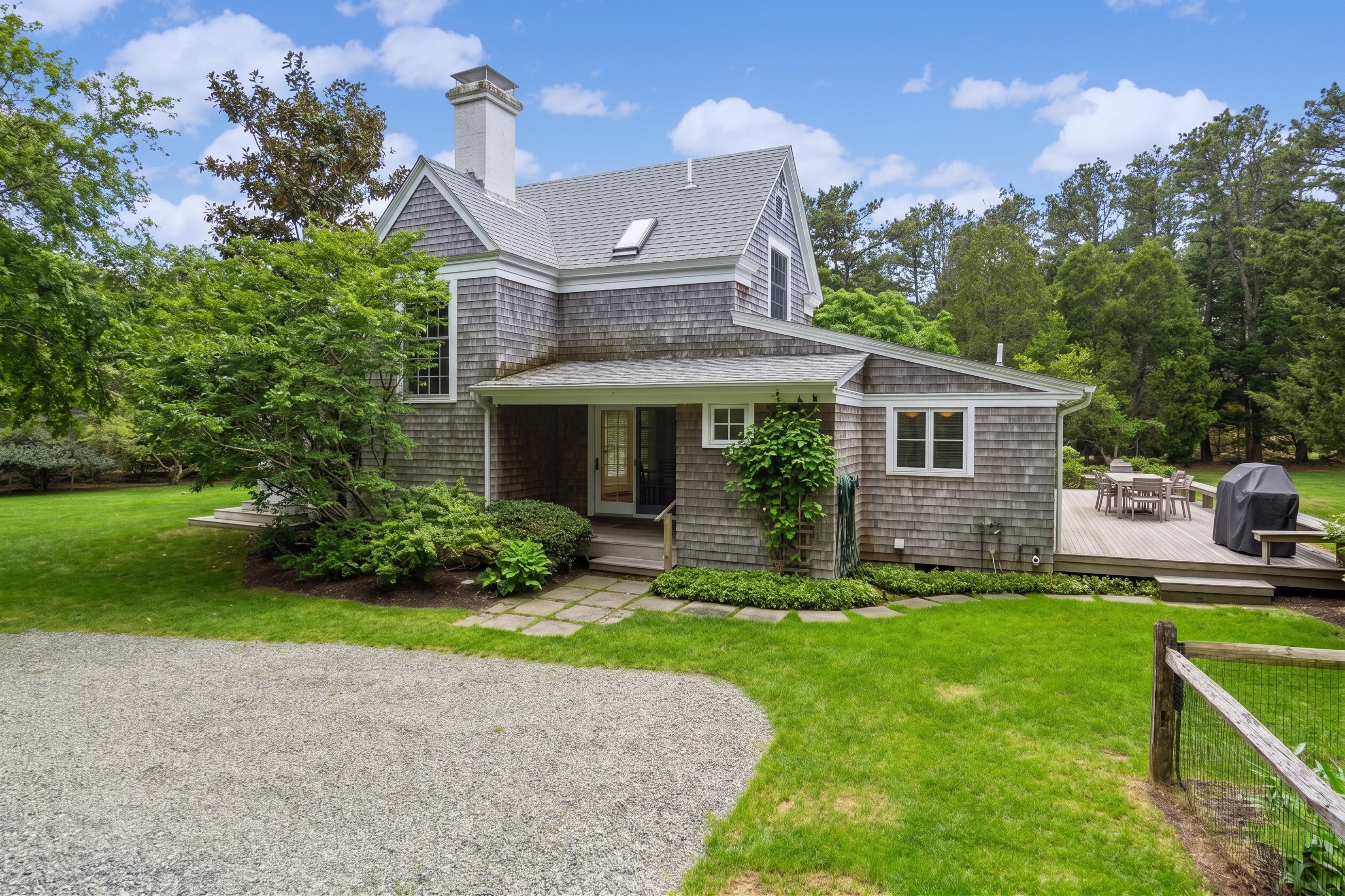 Nestled within the prestigious Nats Farm Association this beautifully crafted West Tisbury home offers a quintessential Martha’s Vineyard retreat. Designed for comfortable island living, the first floor features a bright, open floor plan with a well-appointed kitchen, dining area, and inviting living room, perfect for gathering with family and friends. The generously sized primary suite is thoughtfully positioned on the main level and includes a private office and a spa-like bath with soaking tub and separate shower. French doors open to a lovely stone patio surrounded by established perennial gardens, an ideal setting for morning coffee or summer evenings under the stars. Upstairs are two welcoming guest bedrooms, while a detached bedroom suite provides exceptional flexibility and privacy for visitors. Tucked quietly in the backyard, a charming cottage creates yet another cozy retreat space for guests, creative pursuits, or peaceful relaxation. Surrounded by mature trees and lush landscaping, the meticulously maintained grounds offer an inviting backdrop for outdoor entertaining and quiet enjoyment alike. As a West Tisbury resident, you’ll also enjoy access to the highly coveted Lamberts Cove Beach. Whether you’re seeking a year-round home or the perfect Vineyard getaway, this special property captures the very best of island living.