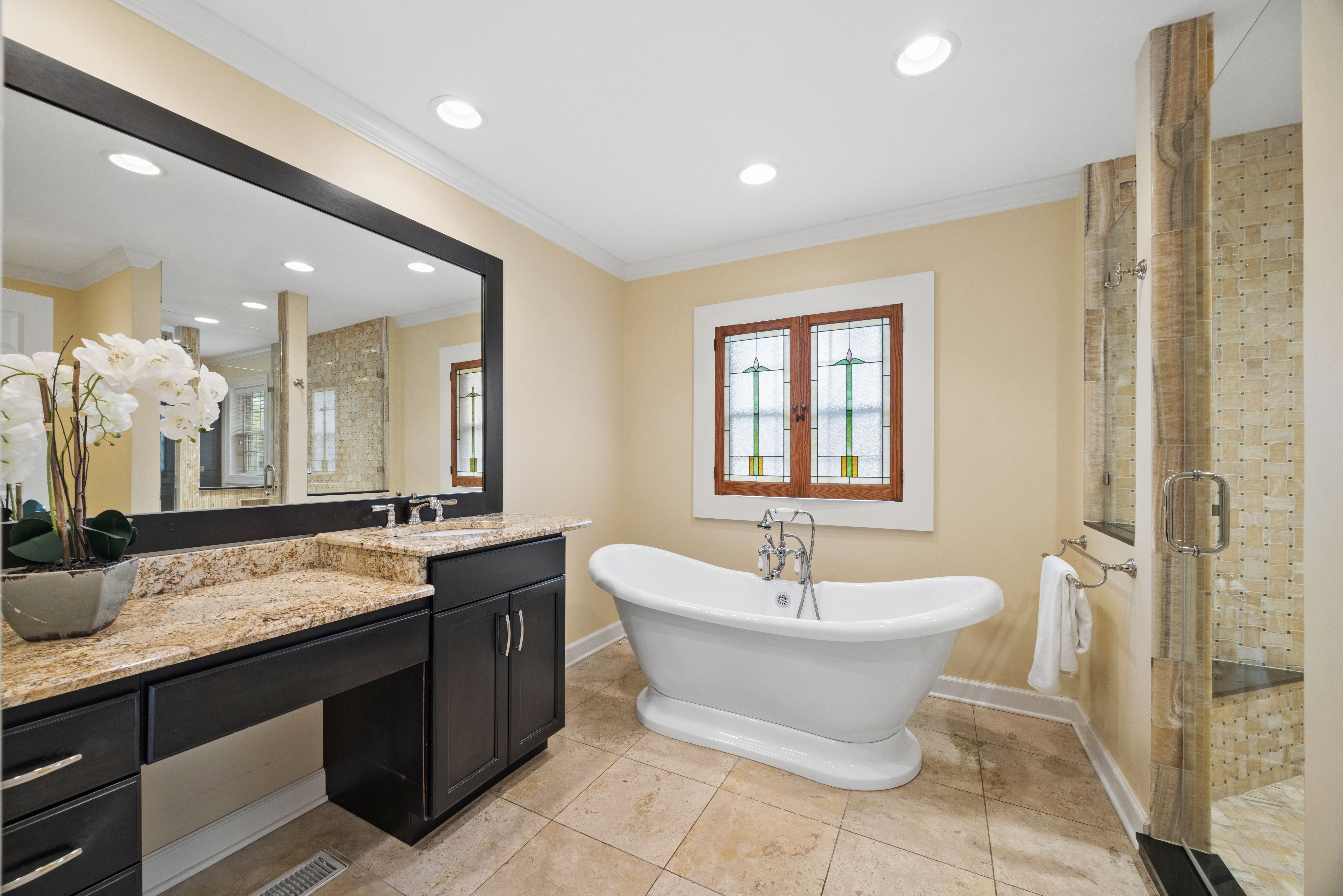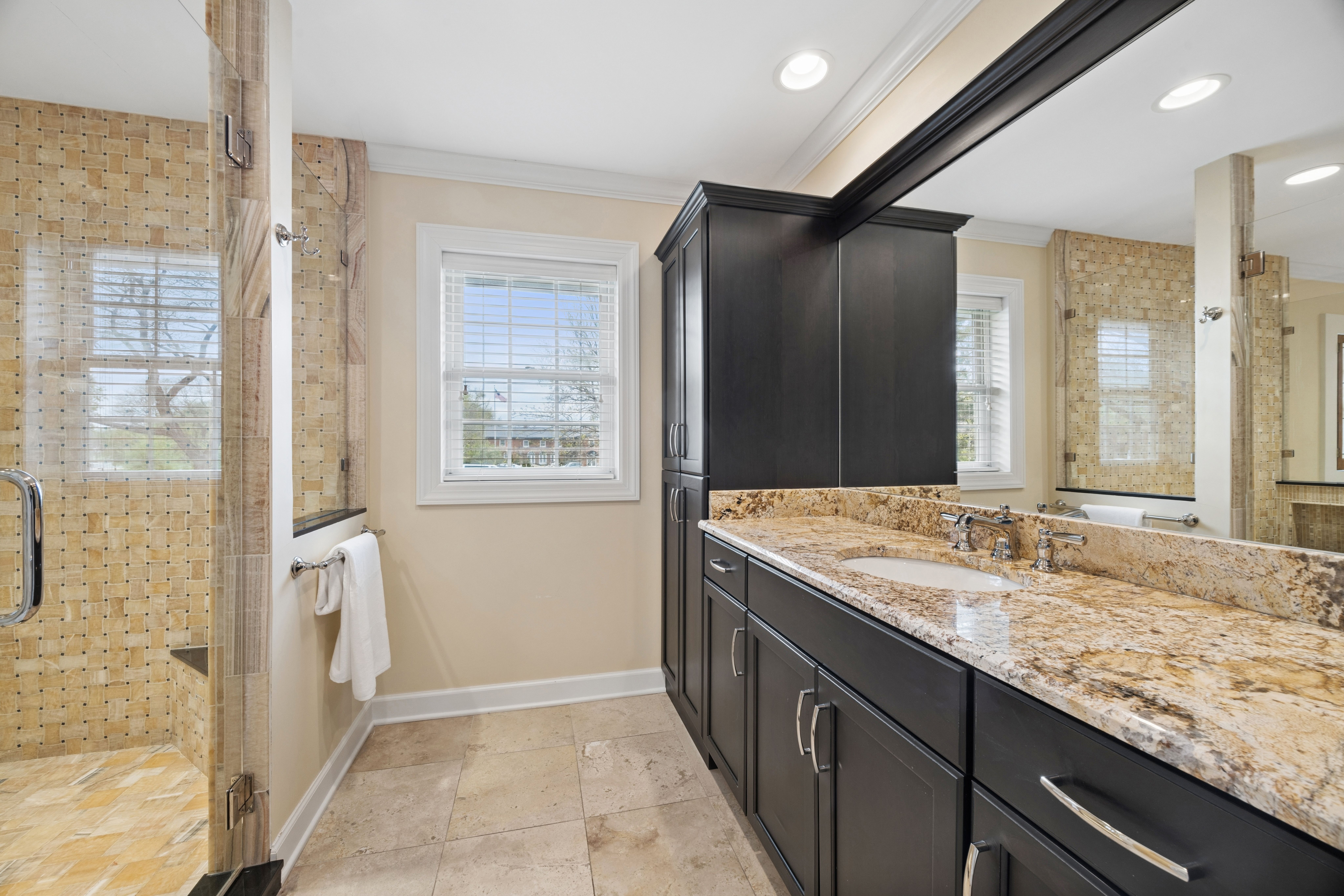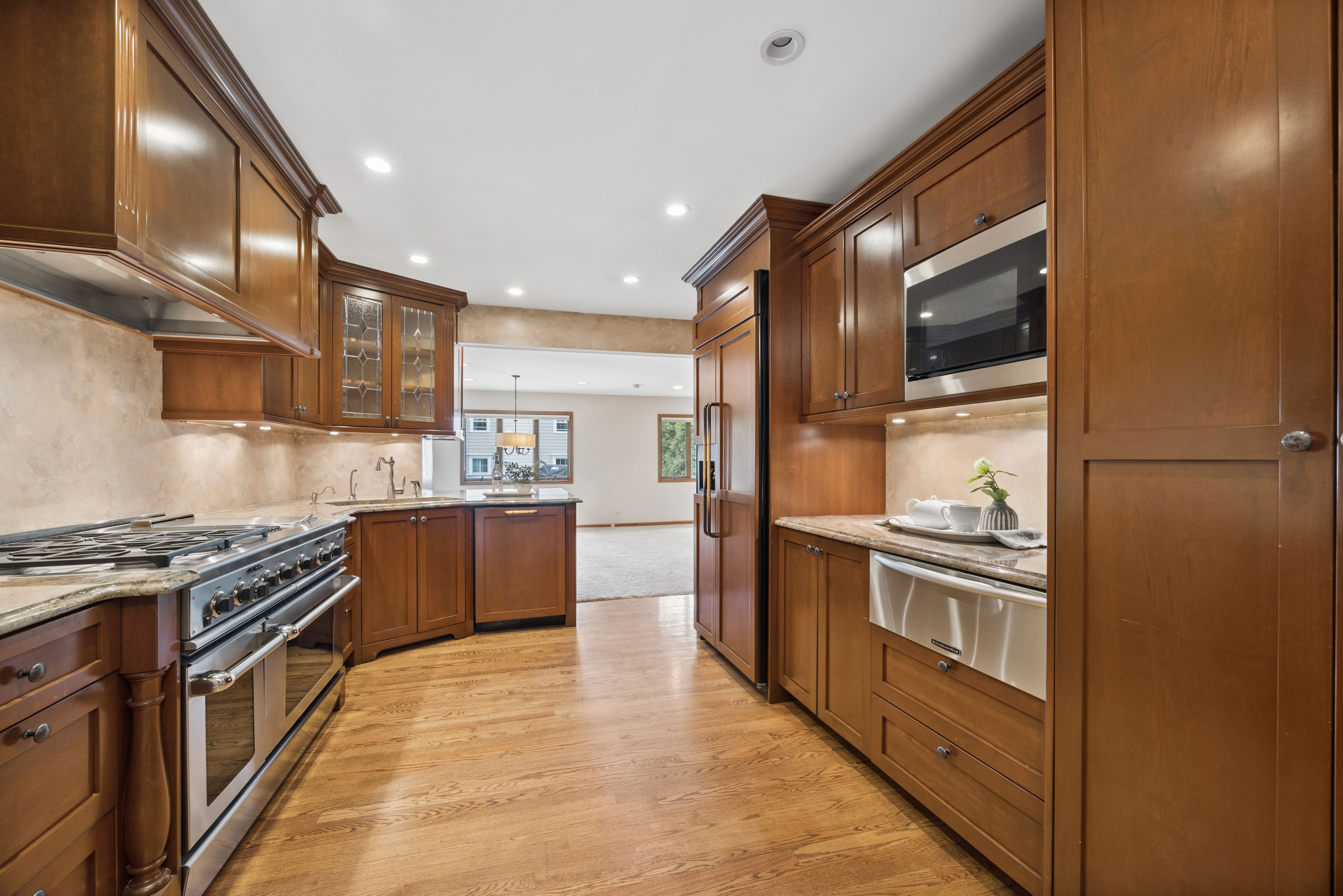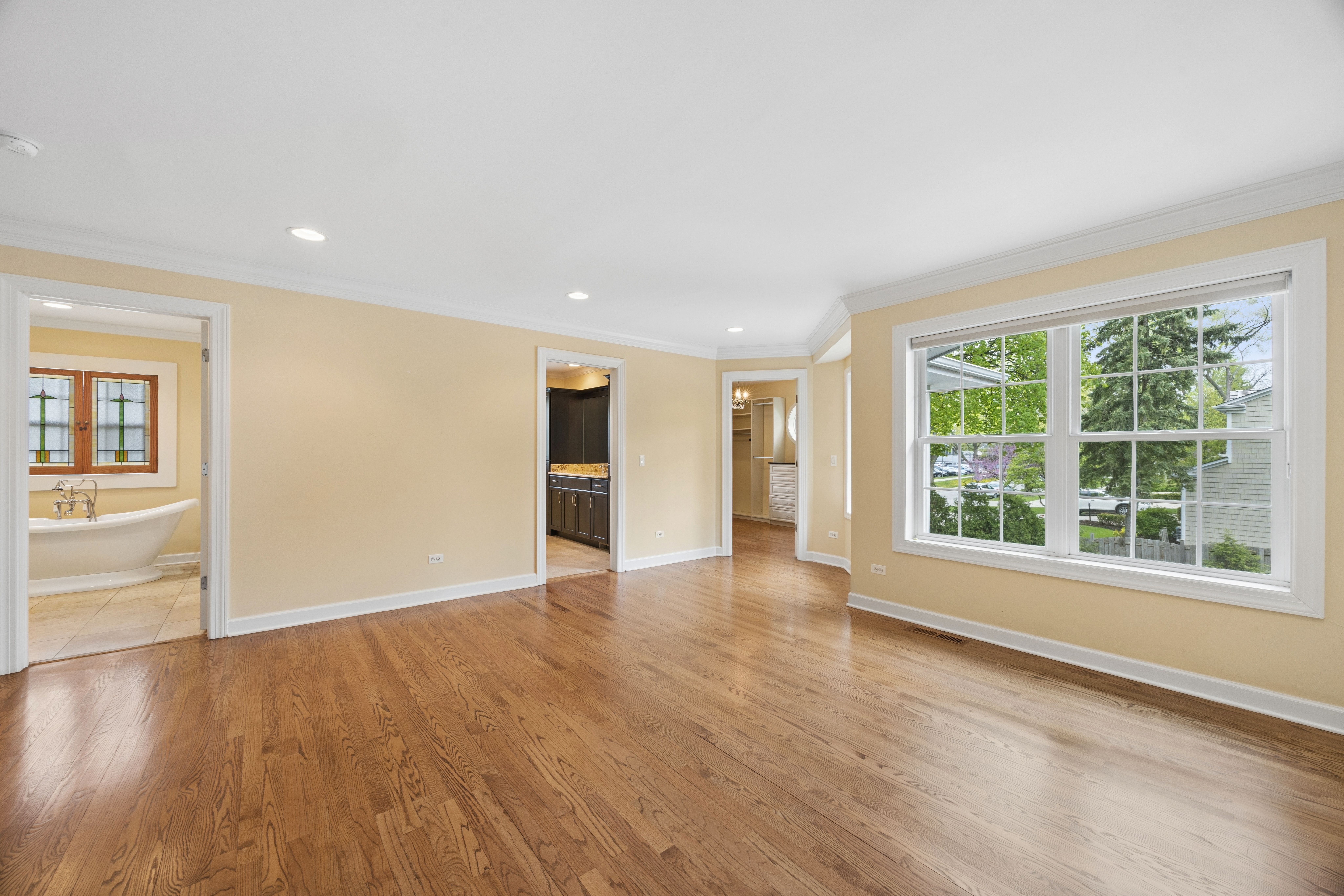 Lovely split-level home in a prime Madison school location on a generous 76 x 146 lot. The updated kitchen features top-of-the-line appliances, new cabinetry, granite countertops and seating space. A spacious family room with fireplace overlooks the large fenced yard with both a deck and stone terrace. The living room, with a large picture window, flows to the dining room.The second floor showcases a newly renovated and reconfigured primary suite with dual walk-in closets and a standout primary bath: separate vanities and commodes flanking a central glass-enclosed shower. Two additional bedrooms share the renovated hall bath. The lower level, with a newer full bath and sliding glass doors to the back terrace, works well as a home office, den or fourth bedroom. The basement offers a rec/workout room, laundry and storage. Attached 2-car garage. Exceptional location-just steps to Robbins Park, Madison School, the Community Center and Hinsdale Central. Move-in ready with thoughtful updates throughout.