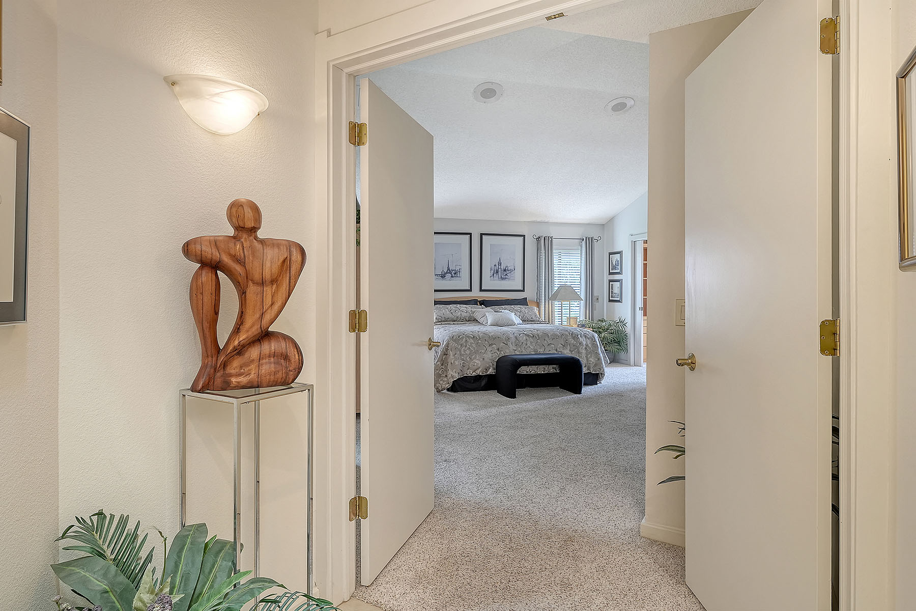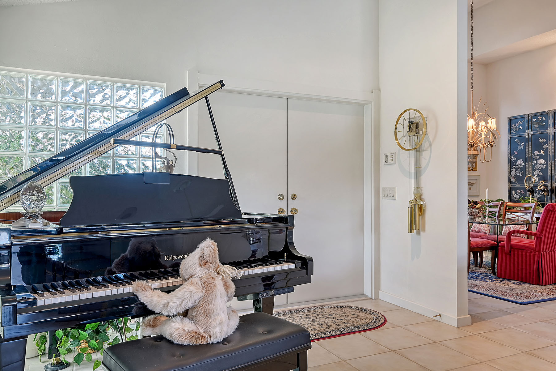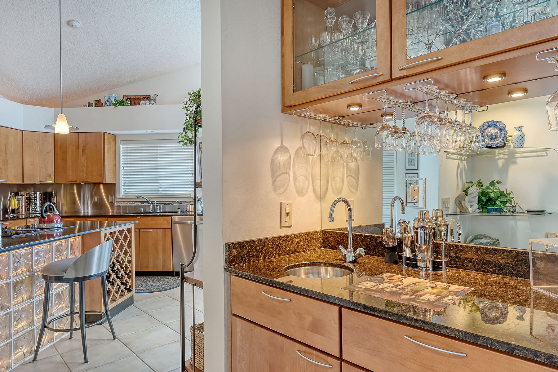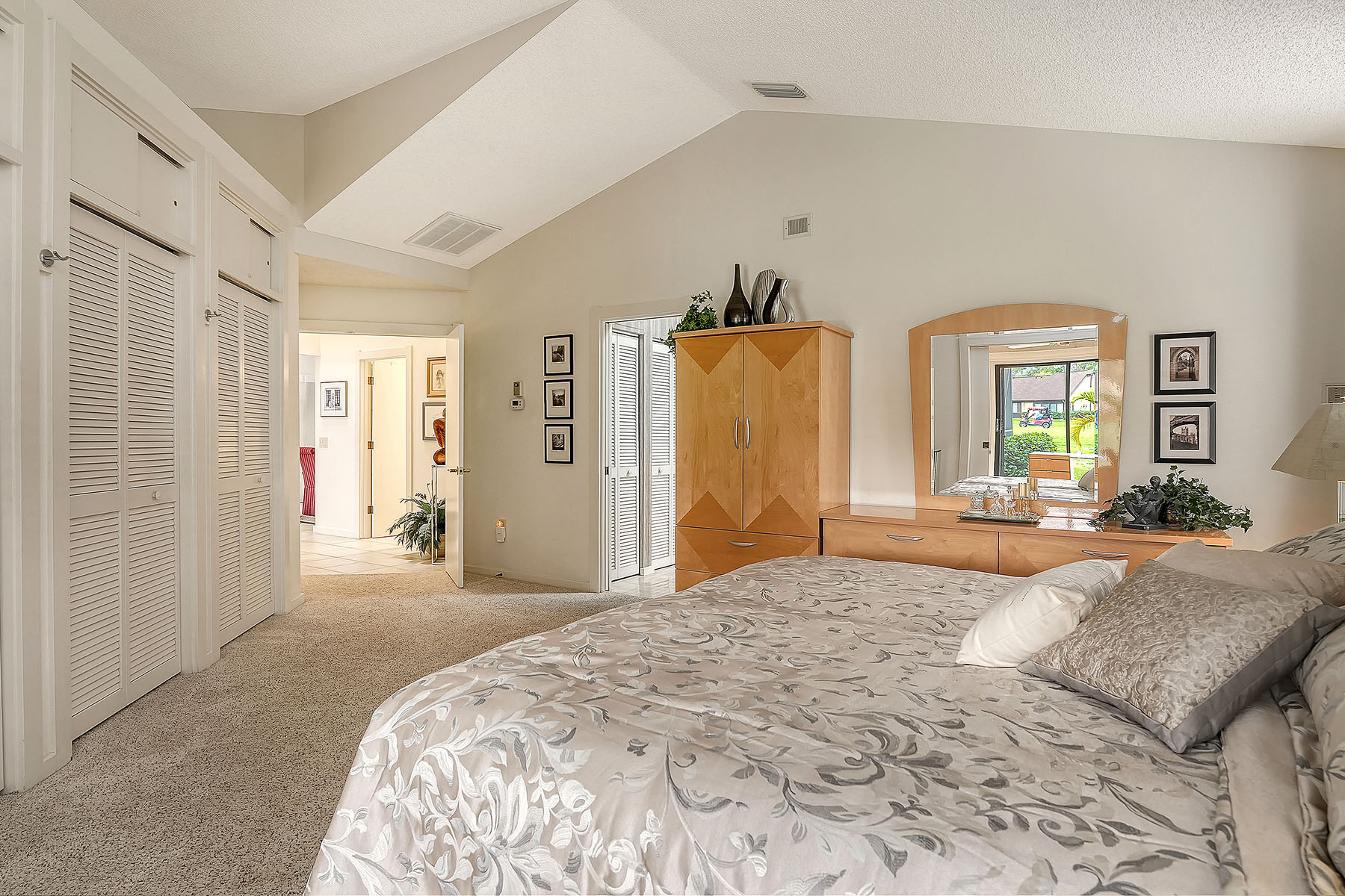 Tucked within the private enclave of Misty Oaks in Palm Air, this Don Traurig home with unique double entrance doors is a beautiful architectural creation. Set on a third of an acre with sweeping views of the 5th fairway on the redesigned lakes course of Palm Aire Country Club, this 2,656-square-foot, three-bedroom, two-bath with office/den home blends modern sophistication with serene, Florida resort-style living. This stunning home embodies Florida elegance, defined by earthy hues, layered textures and refined finishes. The thoughtful design is evident from the moment you arrive, beginning with the unique double entrance doors, 16-inch porcelain tile flooring throughout, and the 15-foot vaulted ceilings. The light-filled great room is anchored by a stunning contemporary fireplace and features sliding glass doors topped with transom windows, seamlessly connecting the indoors to the outdoors. Extra-large windows with upper transom windows in the dining area add to the room's sleek, sophisticated design. Across the room, the stylish custom wet bar with mounted shelving and wine glass rack are ideal for effortless entertaining. The kitchen is a showstopper with granite countertops, solid maple cabinets and stainless steel backsplashes, stainless steel appliances, a large pantry, custom kitchen island with down draft cooktop, hidden storage, wine rack, back-lit glass block design and plenty of windows looking over the pool and fairway. The kitchen dining area features sliding doors for full integration with the lanai and pool area. The primary suite is a luxurious private retreat, complete with walk-in closet, 12-foot lighted wall closet with storage above, and a separate office with contemporary desk and cabinetry. The custom built and a spa-inspired bath with travertine marble tile, granite countertops, solid maple cabinets, a frameless shower door and a sunken whirlpool tub is a relaxing oasis. Each of the two guest bedrooms includes large walk-in closets, offering privacy and comfort for family or guests. The beautifully designed second bath includes stunning custom marble countertop, vessel sink, with designer mirror. Go outside to your private resort, an expansive screened lanai featuring covered and open-air seating and dining areas, a freeform heated pool with waterfalls and fountain. A separate inground heated spa that seats six, all set against the tranquil backdrop of the 5th fairway. Additional highlights include a spacious laundry room with custom cabinetry, an oversized two-car garage with golf cart bay, new roof and skylights 2022, clear Lexan Hurricane panels for all windows, Hunter Douglas Luminettes window treatments, stereo ceiling speakers in great room, primary bedroom and lanai, extensive attic storage, built-in storage in garage, and an air-conditioned workroom. In Palm Aire Community, Misty Oaks is a residential subdivision of single-family homes in the southeast corner of Palm Aire, with two lakes and the 5th, 6th and 7th fairways of the Palm Aire Country Club's Lake Course forming most of the perimeter. Palm Aire Country Club is a full-service country club that is collectively owned by its members and offers a wide variety of membership opportunities. As a member, you have an equity stake in the club and can enjoy year-round golf, tennis, pickleball, padel, water aerobics, and various social activities. Membership is not required. Come and enjoy paradise.