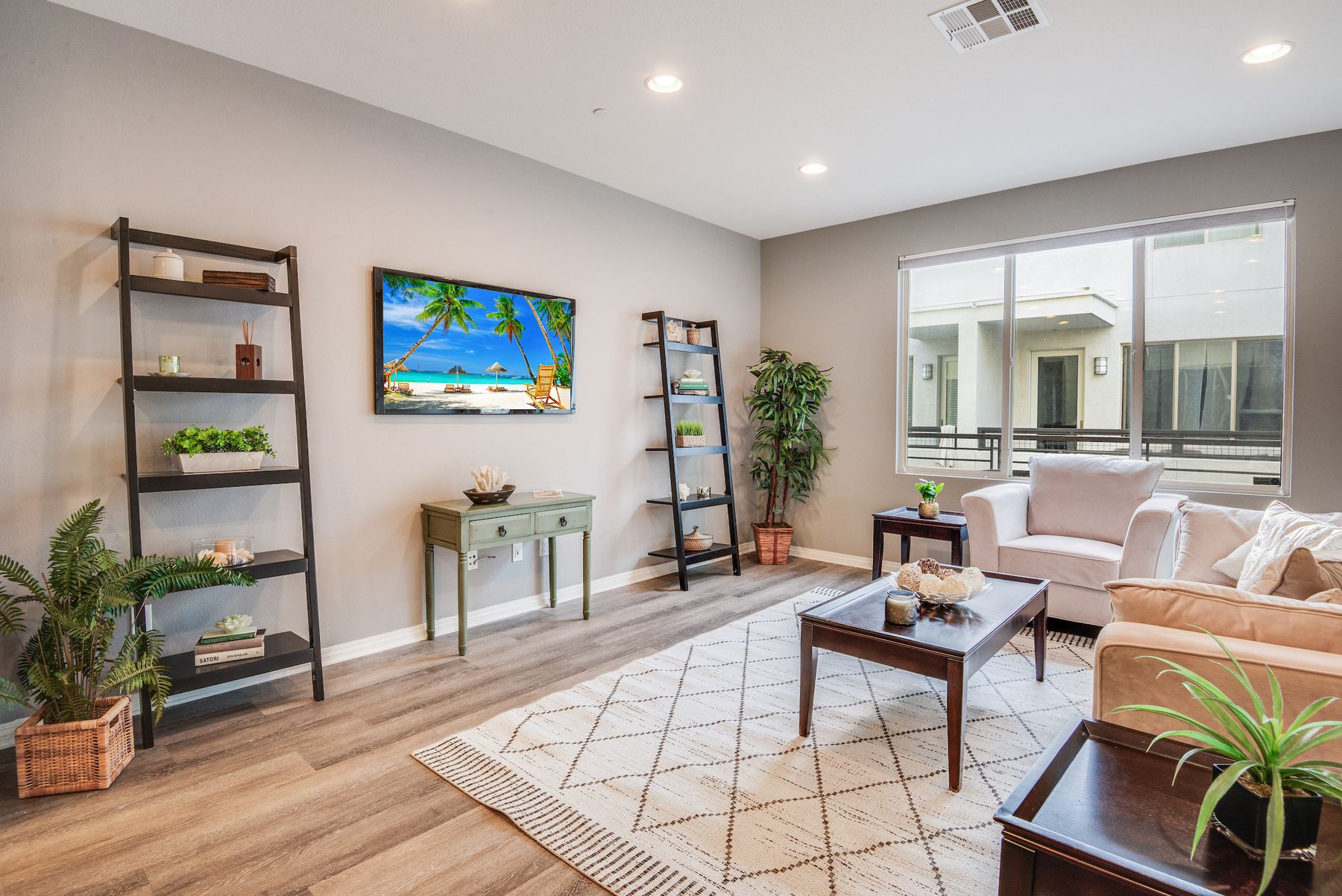 Welcome to the most adaptable floorplan in all of Three Sixty. The open layout not only offers 2 spacious, bright bedrooms but also features 2 den/office flex rooms to perfectly accommodate your needs and lifestyle. We've seen these 2 additional spaces used for everything from a playroom to a home office, a den, and even guest or kid spaces. All of this in the resort-like setting of Three Sixty, with amenities usually found in a luxury resort. 12921 Mission #102 is a turnkey retreat with a versatile floor plan and a quiet location, featuring central air and heat, a spacious balcony, and even a 3-car+ garage. Enter through the beautiful foyer with dramatic curved walls and staircase. The spacious front flex room offers oversized windows and can be used for anything from a formal dining area to an office/den to an additional guest space, and features wide-plank flooring, new paint, and dramatic lighting. Just beyond, you enter the open kitchen with high ceilings, dark cabinetry offering abundant storage, stainless steel appliances, quartz countertops, a pantry, and a spacious kitchen island with countertop seating that will be the center of daily living. The kitchen opens to the south-facing living room, capturing great natural light through picture windows. This beautiful room features high ceilings, recessed lighting, picture windows, wide-plank flooring, custom paint, and direct access to the outdoor patio, ideal for morning coffee and summer BBQs. Head upstairs to two beautiful suites, along with an additional office/den/family room, and the conveniently located laundry. The primary suite features a small balcony ideal for capturing the beach breezes, new carpet, paint, lighting, and ceiling fan, along with TWO walk-in closets, and a beautiful primary bathroom. The additional suite features an oversized window to let in the light and offers a walk-in closet and a luxurious bath with dark cabinetry, quartz counters, a tub/shower, and a separate water closet. Three Sixty offers a true community feel, where it’s hard not to say hi and wave to the neighbors. Amenities are simply incredible, highlighted by the incredible pool deck of the "center", with multiple pools, jacuzzi, luxury cabanas, dramatic firepit, outdoor seating, BBQ areas, numerous luxury lounges, 2 dog parks, playground, grassy parks, basketball and pickleball court, and the state-of-the-art fitness center. The active and diverse residents give this a true neighborhood feel.