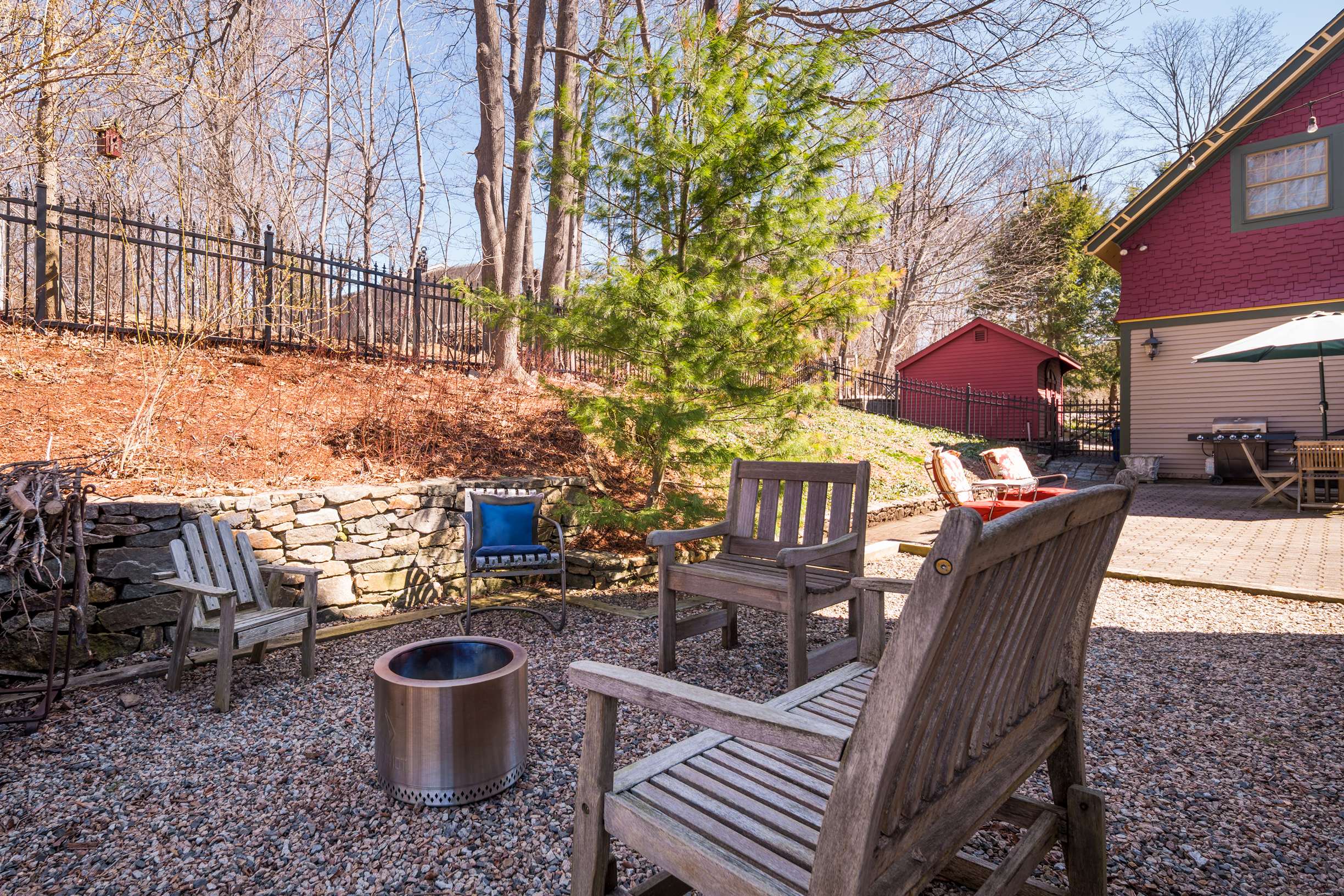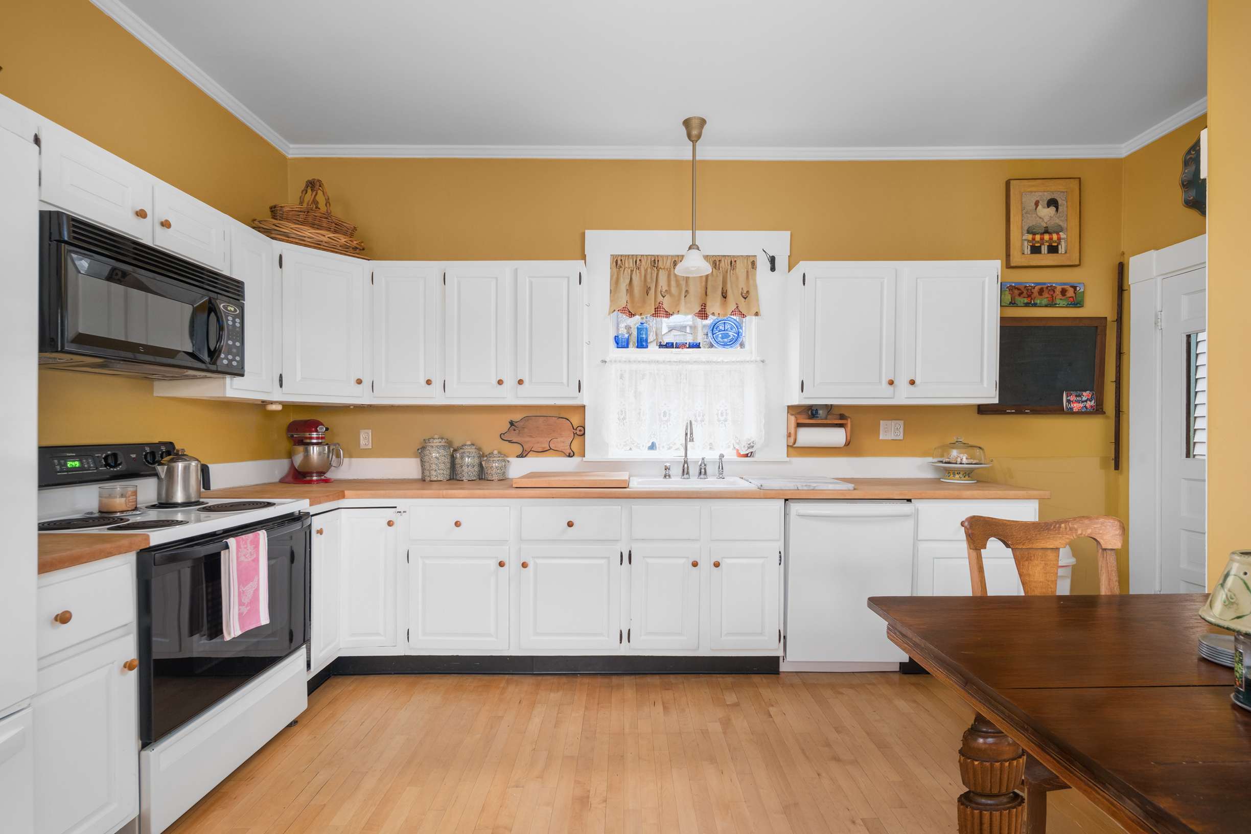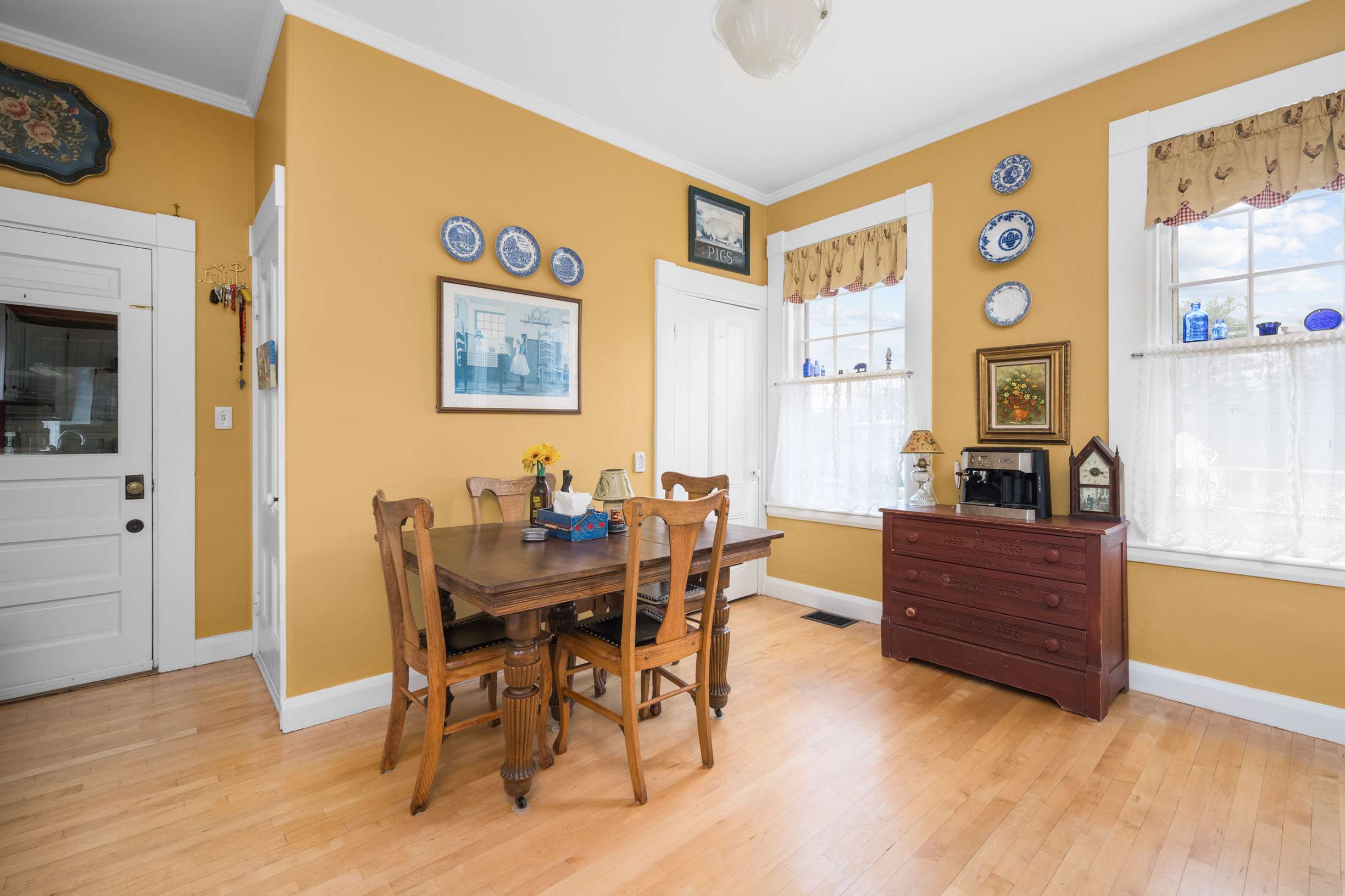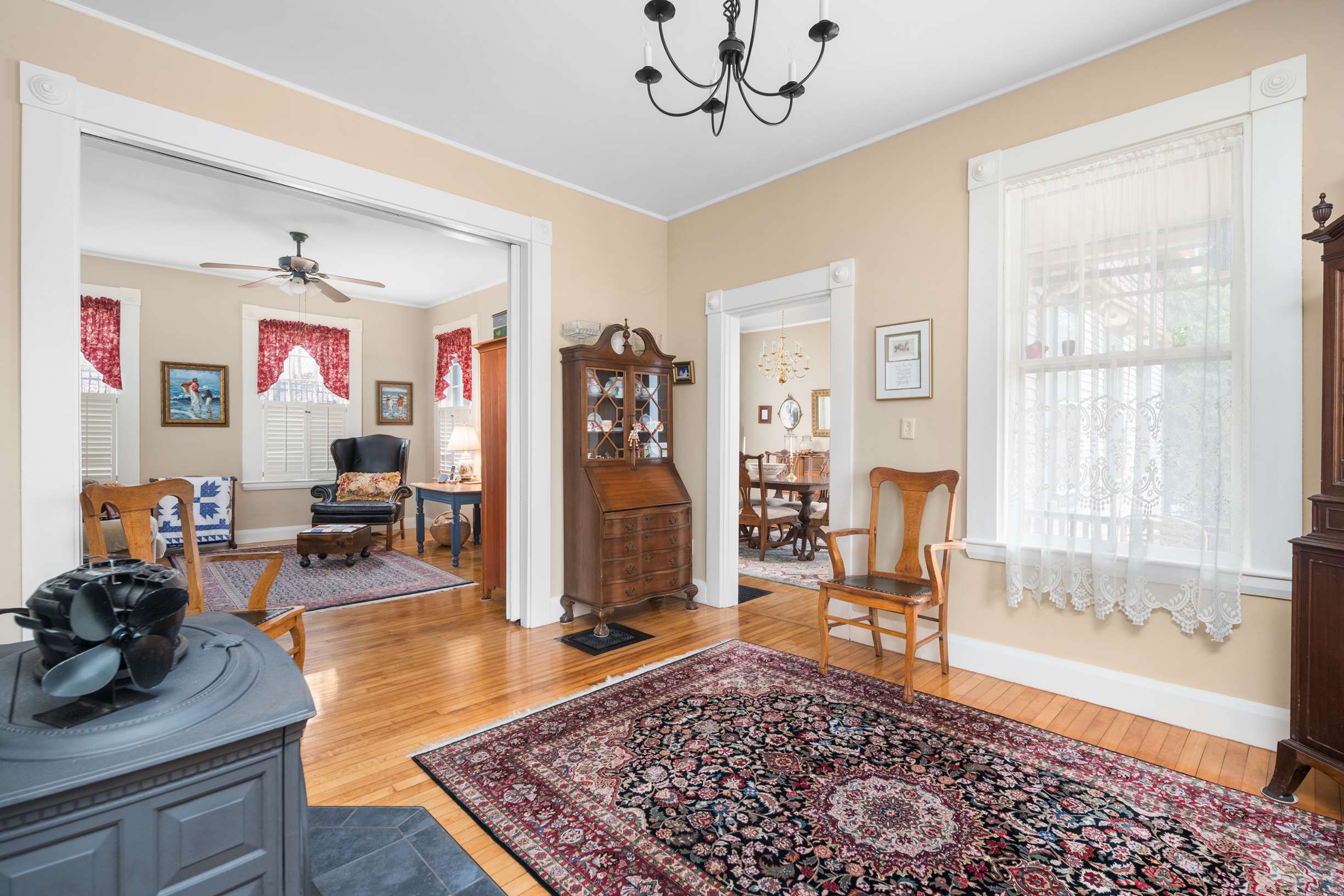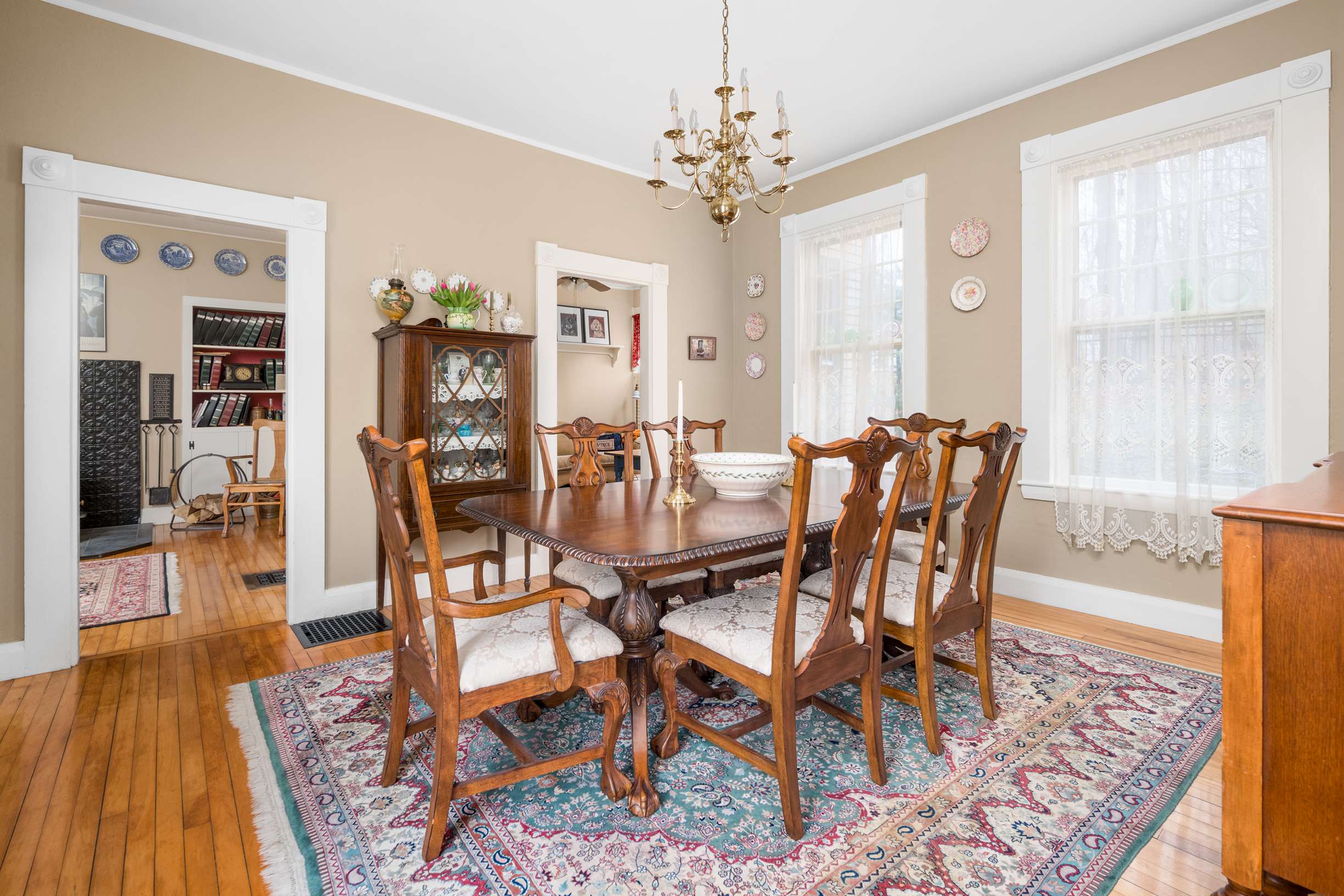 Nestled in the heart of York Village sits one of its most architecturally distinct homes. Built in 1880, this 3-bedroom, 4-bath residence with an attached 2-bedroom, 1-bath apartment seamlessly blends historic charm with modern conveniences. The inviting wraparound porch leads into the grand foyer, bespoke with a masterfully crafted wood staircase, an intricately detailed newel post, gleaming hardwood floors, period trim, plastered walls, soaring ceilings, and timeless grandeur. The main level features a living room with built-in cabinetry, tall windows, a cozy woodstove, and original pocket doors leading to the den, a formal dining room, laundry/bath, and a sunny eat-in kitchen that flows out to the private backyard oasis. Host large gatherings in the fenced-in yard, replete with a custom paver patio, intricate stone walls, lushly landscaped grounds, blueberry bushes, a pea-stone fire pit area, and a custom Reeds Ferry shed. The second floor consists of a primary bedroom, two guest rooms flanking a shared flex room, and an elegantly updated bath with custom cabinetry, marble floors, and Tuscan brass fixtures. The third-floor family room features a Jotul gas stove, kitchenette with fine cabinetry, farmhouse sink, refrigerator, cooktop, and built-in peninsula seating, plus a built-in office area with an elliptical window that frames the tree-top views. There is enough room to host overflow guests in this space with access to a full bath with a clawfoot tub. The home benefits from a newly updated heating system offering central air. The heated, attached 2-car garage features ample storage and a bath. Plenty of space for guests in the brick-paver driveway. The 2-bedroom apartment is ideal for a live-in nanny/caregiver, separate studio, or income generation. An exciting opportunity to own an exquisite property with undeniable charm in a prime York Village location within walking distance of schools, hospital, library, golf, beaches, restaurants, and charming shops.