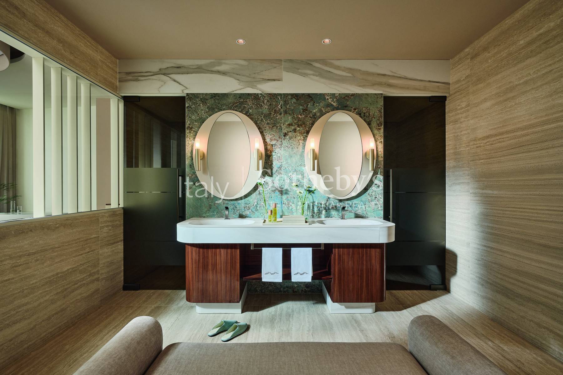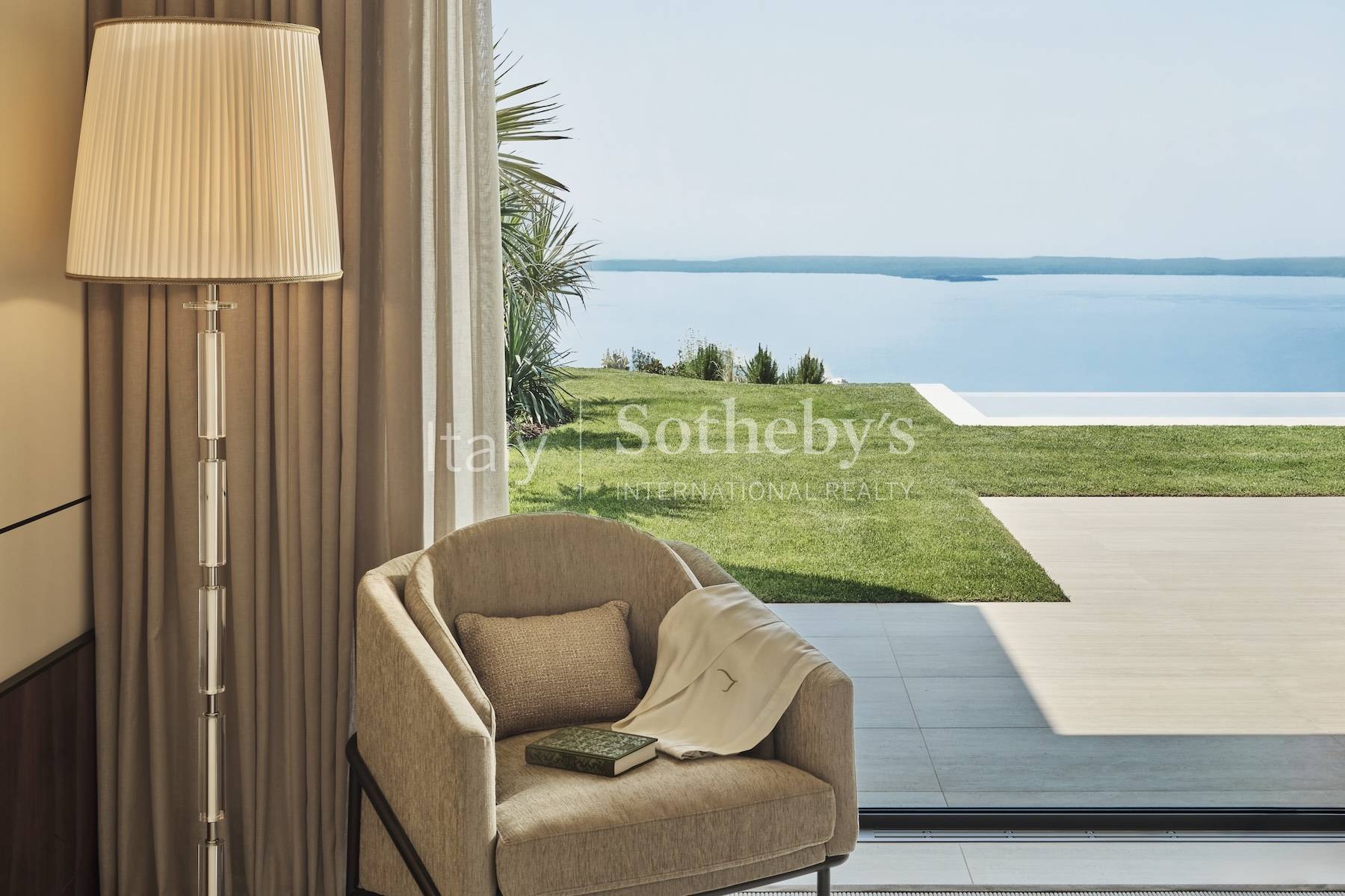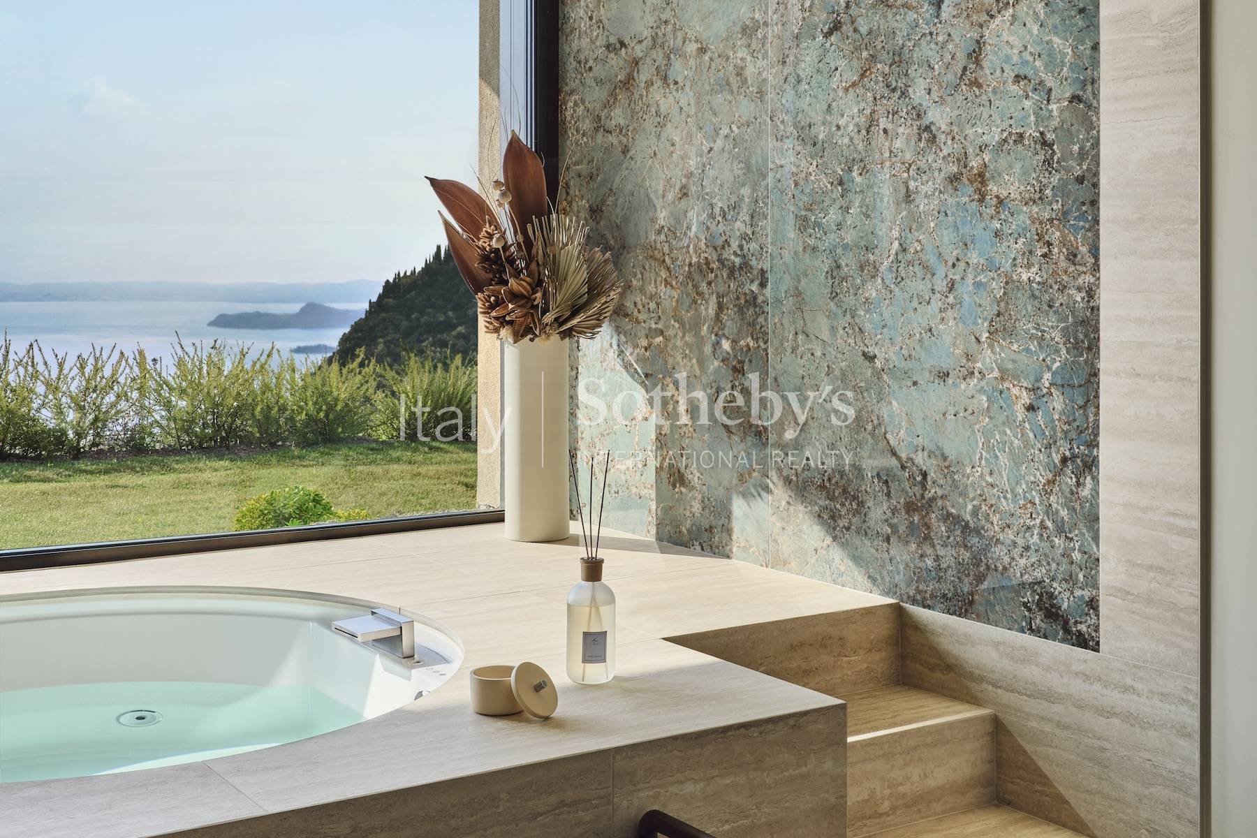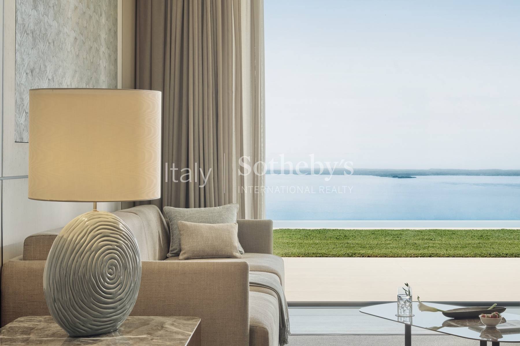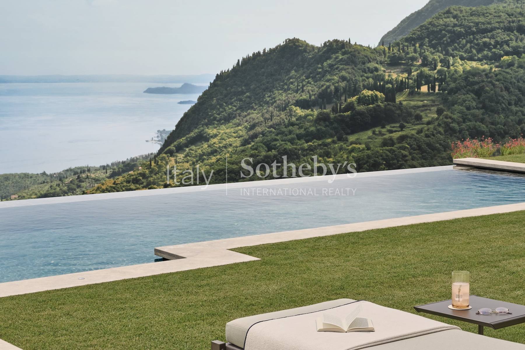 Exclusive residence with infinity pool and private Spa, set in a commanding position within the prestigious 5-star resort Lefay on Lake Garda, offering a high level of privacy and distinction.The property, approximately 550 sqm, unfolds across grand living spaces, featuring an elegant open-plan living area with lounge, dining area, and kitchen with central island, overlooking the private lake-view garden. The master bedroom is directly connected to the private Spa, complete with panoramic bio-sauna, Jacuzzi, and treatment area, creating a dedicated wellness retreat.The sleeping quarters are complemented by additional bedrooms with en suite bathrooms.Outdoors, a heated infinity pool of approximately 40 sqm, a solarium, and landscaped areas are designed to ensure privacy and seamless integration with the surrounding landscape. The property is further enhanced by a private garage with direct access.Residents enjoy privileged access to the resort's amenities, including a 4,300 sqm Spa, fine dining venues, dedicated concierge services, and full property management, with the opportunity to join a rental program designed to enhance the long-term value of the investment.