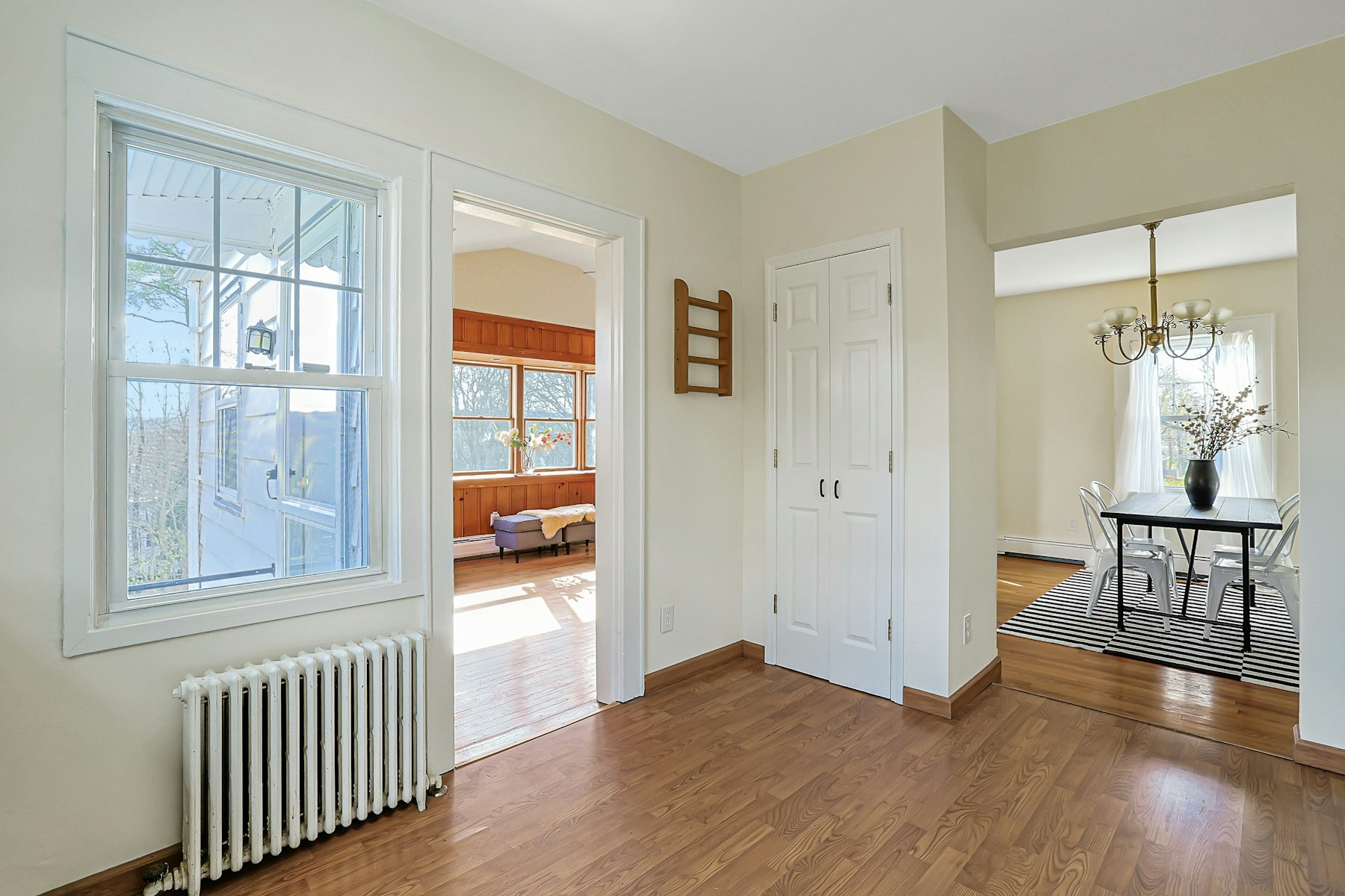 Introducing this three bedroom Cape on a tranquil tree-lined street in the coveted Clarkstown school district- only a short walk around the corner to the West Nyack Elementary School. Steeped in tradition, this Cape Cod home offers iconic features with steep pitched roof, colonial blue trim highlighting dormered windows and two front doors for functionality and symmetry. Inside the floor plan offers convenience with one bedroom/office and full bath on the main level, along with light filled living spaces including a wood paneled family room with bay window seat and built in book cases. A formal dining room joins the kitchen and hallway leading to a charming living room with three large windows, and staircase to the second floor.