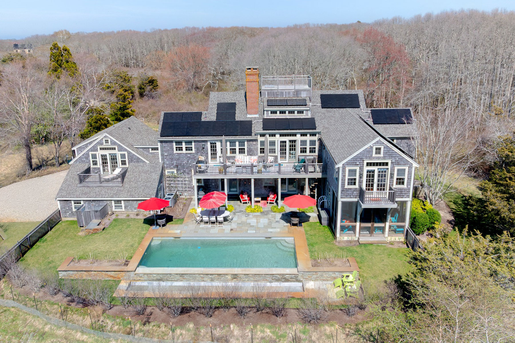 Set on 5.30 acres of exceptionally private, elevated and maturely wooded land, this remarkable estate captures sweeping views over Polpis Harbor and Nantucket Harbor. Thoughtfully designed and impeccably executed, the residence showcases the finest materials, finishes, and appliances throughout. Refined interiors are complemented by five fireplaces, a custom Rutt kitchen, granite countertops, central air conditioning, and cast iron baseboard heat. Nearly every room is enhanced by French doors that open seamlessly to bluestone patios, terraces, porches, a screened-in porch, and beautifully curated gardens—creating an effortless indoor-outdoor living experience. Outdoor living is equally exceptional, featuring extensive bluestone patios, walkways, and stacked stone walls, anchored by a gunite infinity pool in a tranquil, natural setting. Additional amenities include an elevator servicing 3 floors, a garage-level luggage lift, solar panels that supply entire house, a whole-house generator, wine room, fitness room, and a newly installed roof—offering both luxury and peace of mind.