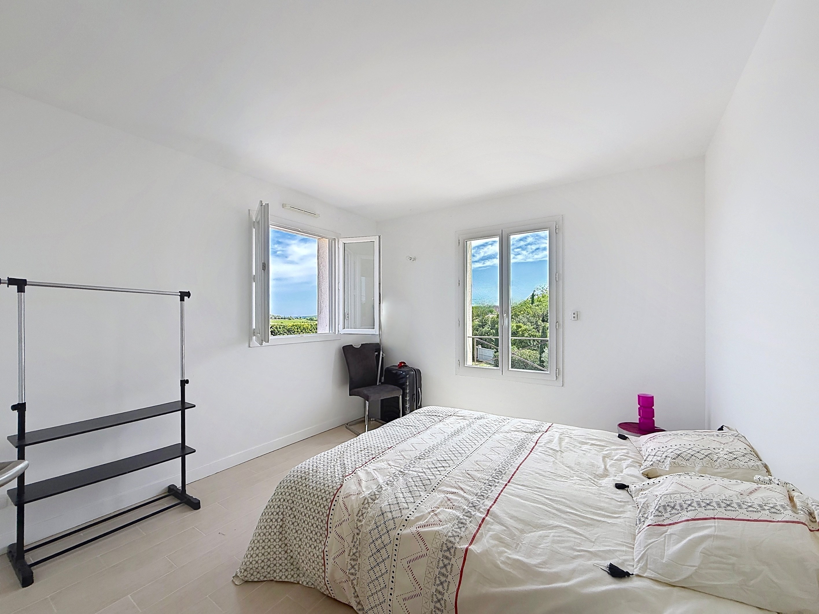 Located just a few minutes from Uzès, in the heart of a village with all amenities, this contemporary villa of approximately 150 sqm offers an elegant and functional living environment. Upon entering, the ground floor reveals a spacious, light-filled living area with open volumes, seamlessly extended by a fully fitted and equipped modern kitchen. A utility room completes this space, while a master suite with shower room and dressing ensures highly sought-after single-level living. Upstairs, two bright bedrooms share a bathroom, providing an ideal night area for family or guests. This level also enjoys pleasant open views over the surrounding countryside. All ground-floor rooms open onto a beautifully landscaped and fully enclosed outdoor space, where olive trees and Mediterranean plants frame a superb heated 8 x 4 meter swimming pool. A double garage, carport, underfloor heating, reversible air conditioning and home automation system complete this property. Combining contemporary design, modern comfort and a privileged setting, this property represents a rare opportunity in close proximity to Uzès.