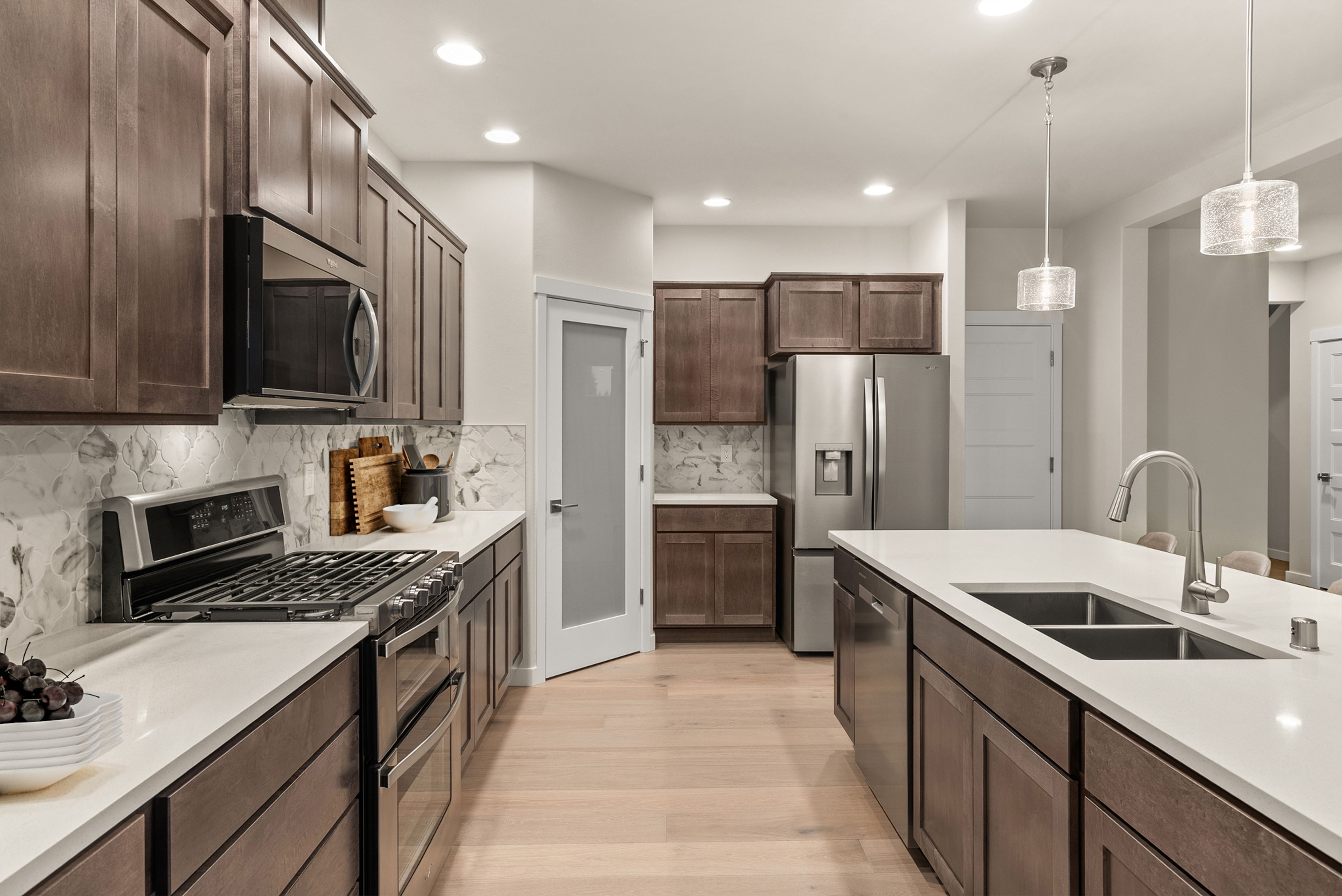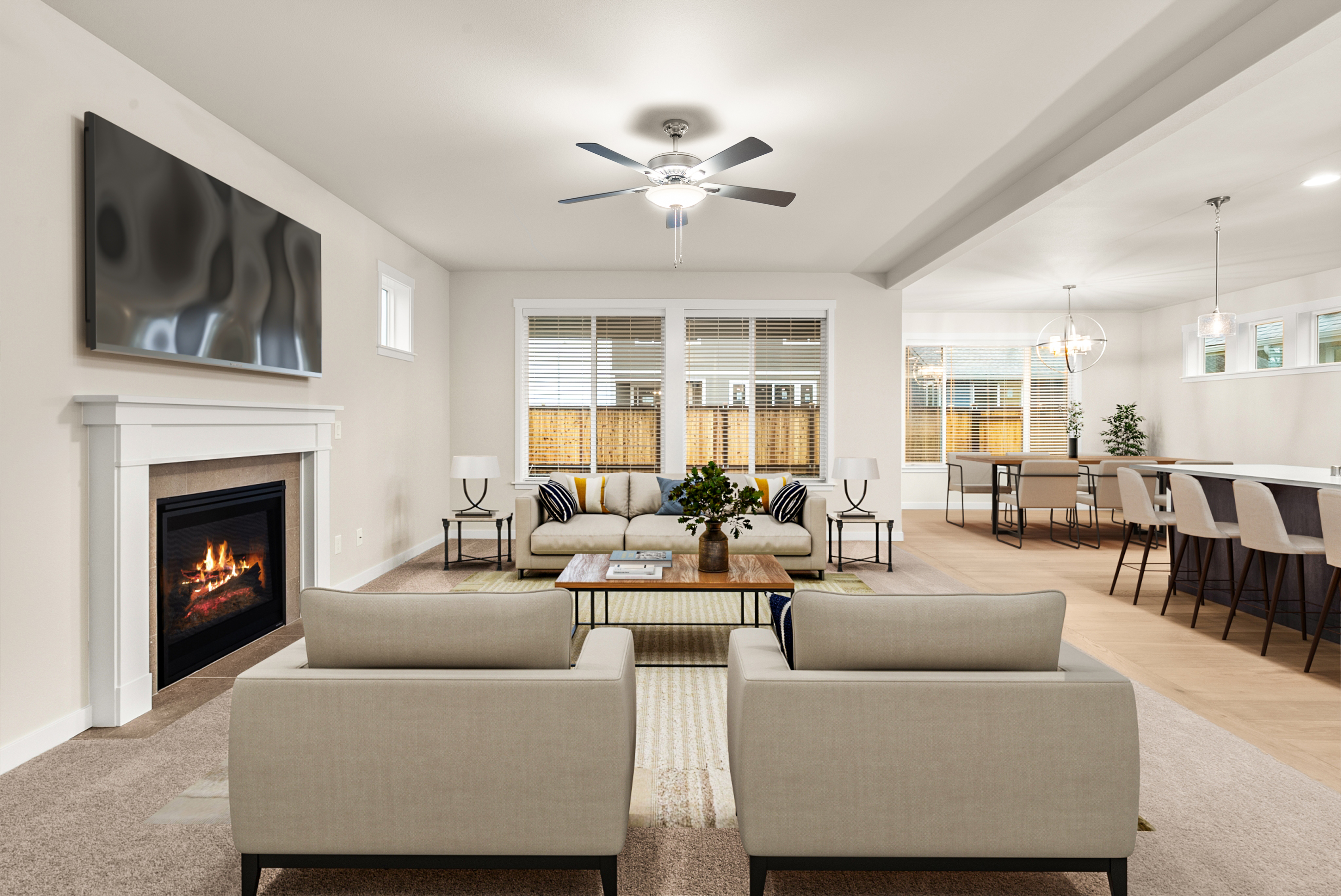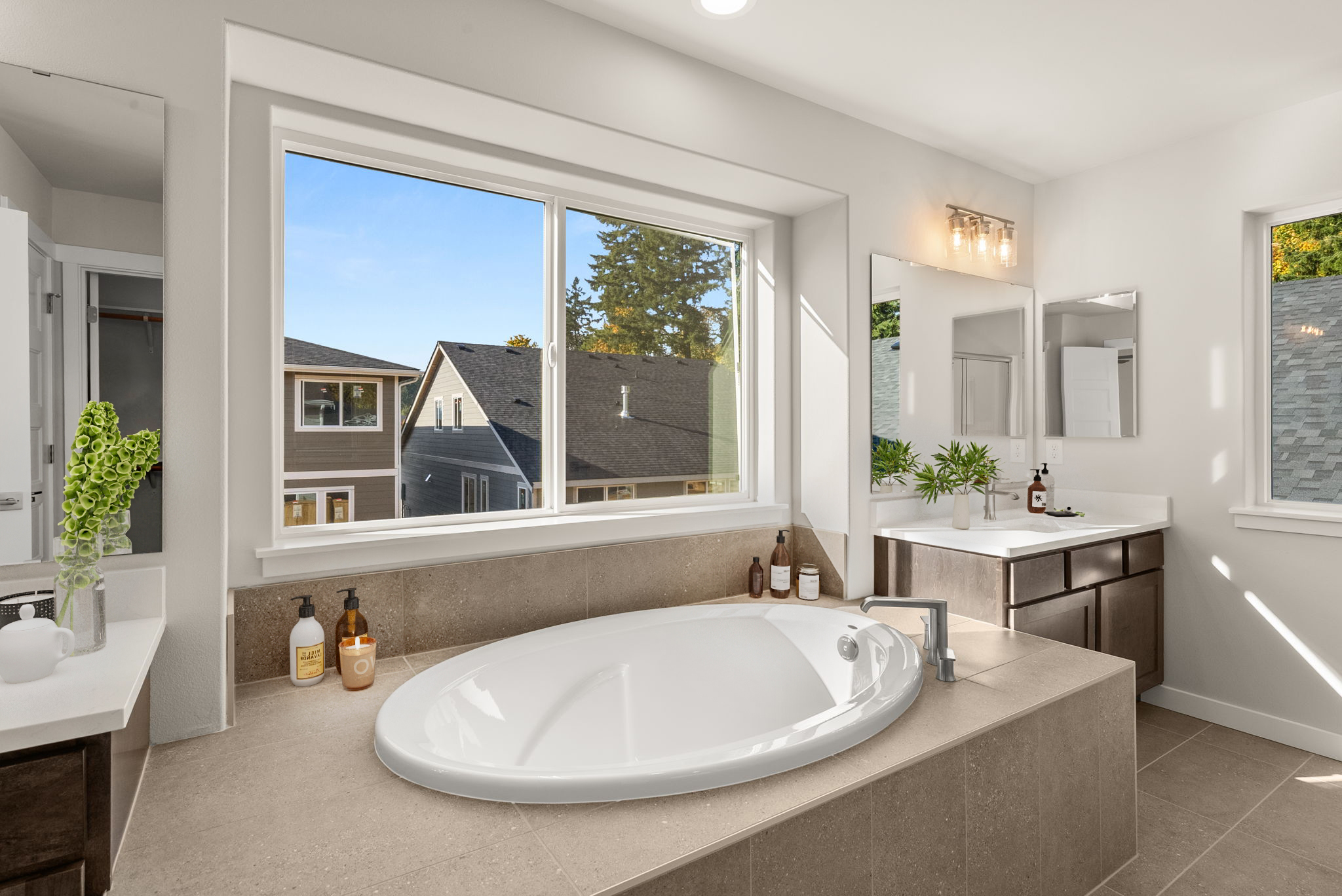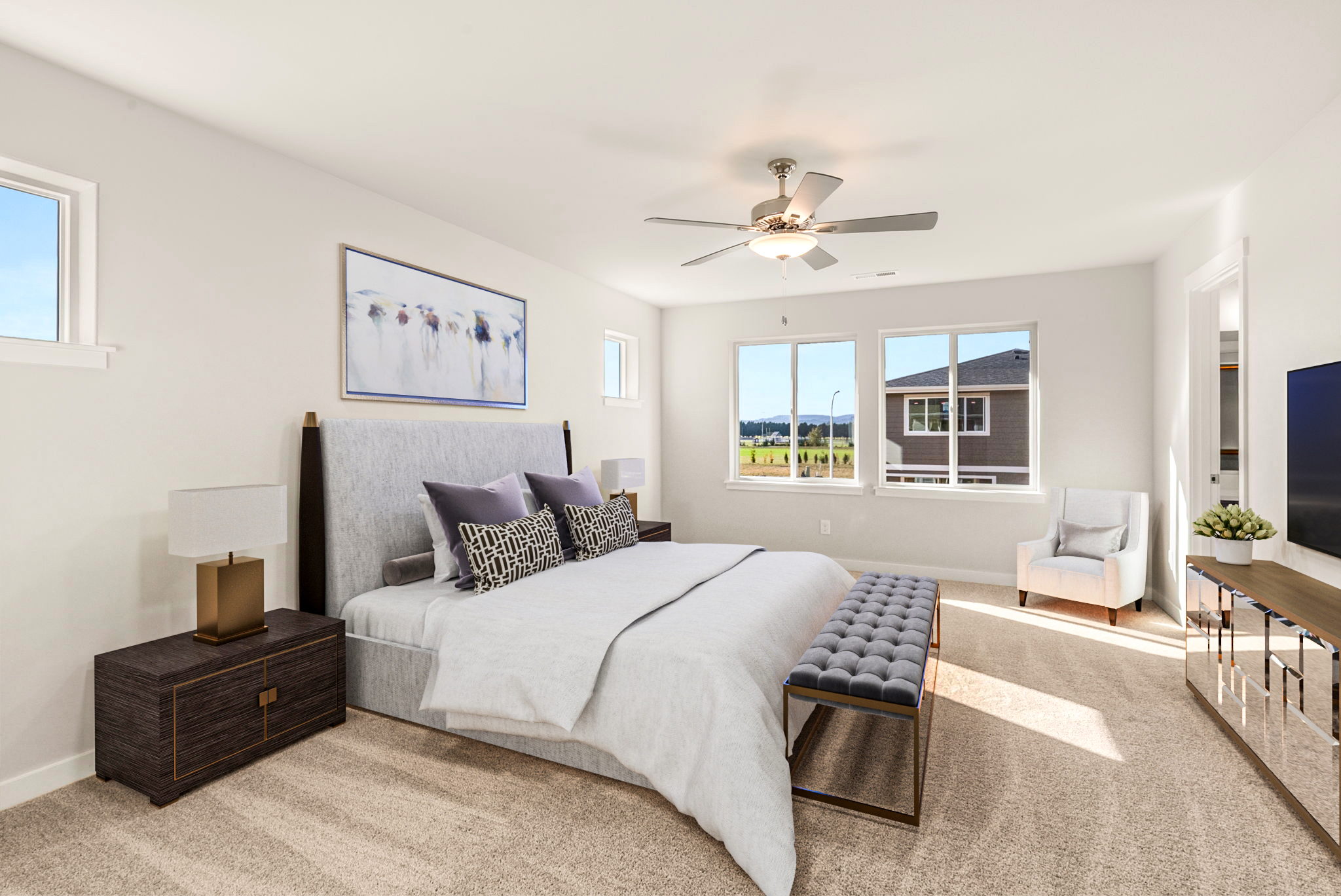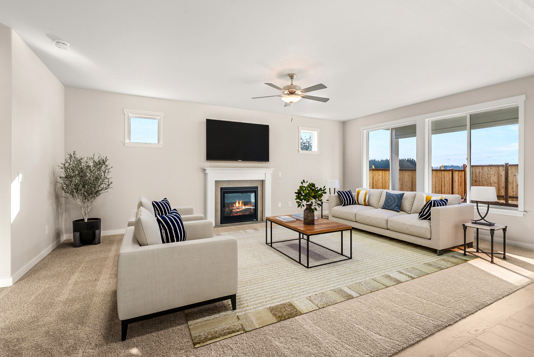 Skyview Estates, featuring the highly respected work of Rob Rice Homes. Offering a distinct main floor primary, the Birch plan encompasses 2432 +/- square feet with 4 bedrooms and 2.5 baths. The main level showcases a beautifully designed kitchen with quartz countertops, cocoa stained maple cabinetry throughout, a gas range, and a spacious walk-in pantry, opening gracefully to the dining area for both everyday living and effortless entertaining. The upper level is equipped with all bedrooms including one oversized room that is versatile as a bonus room, office or guest retreat. Engineered hardwood flooring flows through the entry, kitchen, and dining spaces, with elevated finishes and more quartz surfaces throughout. Step outside to a covered patio overlooking a fully landscaped and fenced yard, creating a private and inviting extension of the home. Highly efficient with solar panels, heat pump, and a hybrid water tank. Crafted with quality, this home is positioned near the freeway, Costco, shopping, eateries and Tumwater Schools. Estimated completion date is 06.15.2026. Photos used are either virtually staged and/or of a similar model previously built.